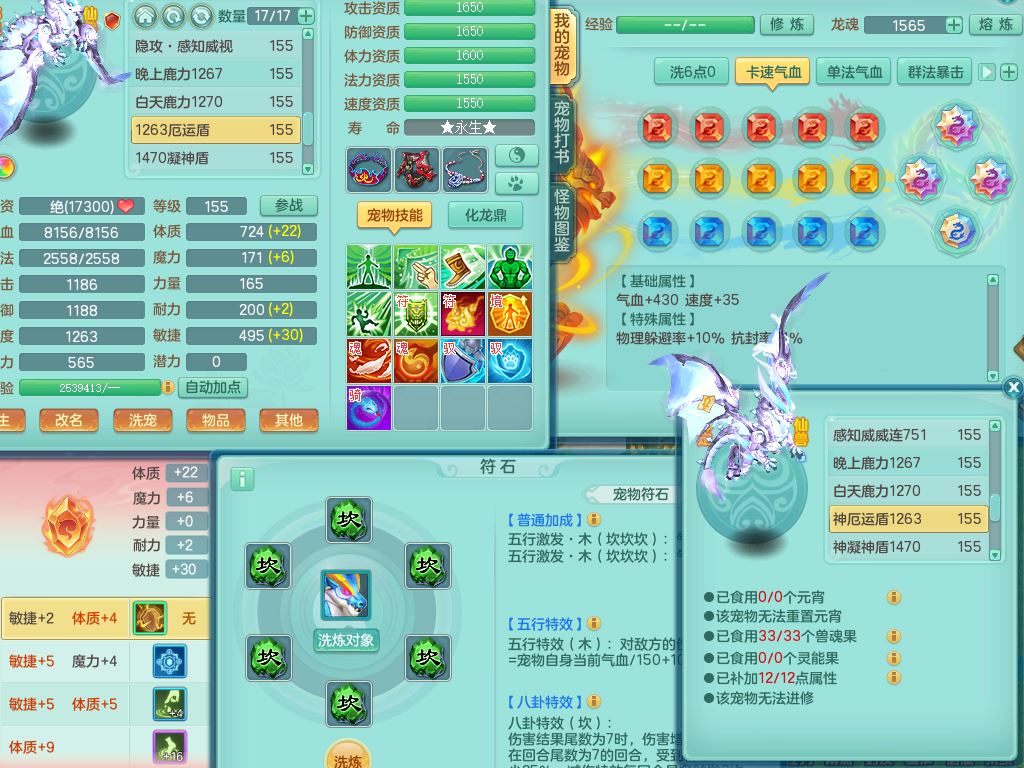 24348花好月圆159男方寸【潜龙号+暴龙泰坦+神驹心想事成+火焰之力、西瓜冰】精灵舞,4字靓号,7龙(换)5内丹神(2蛇3马)6破境7皮,3特殊(登云/月光/飞花)3镜花1龙姬,17格子30只满果子21觉醒17个纯6字,全身单加愤怒6特,物理8红,单加狂暴破血武器,破甲鞋,2套鼎5.5+70+280,165天月卡,庭院149房屋162,永久外观精灵皮肤,72内丹碎片,宠排在榜,5坐骑(3只双人)