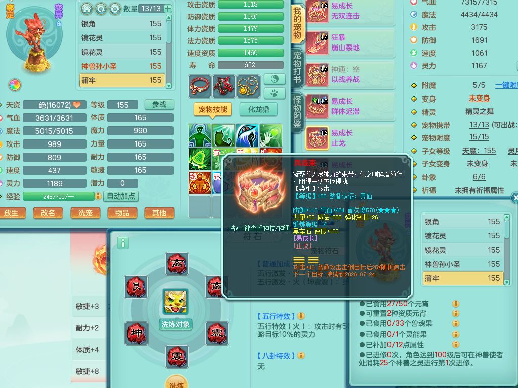 24346三生万物159男无名精灵舞,1内(蛇影)1望归2镜花,3觉醒4四字综合7只满果子,11红装备,Y破血帽子,狂暴崩山武器,Y群体迟滞项链,Y止戈腰带,Y晶清鞋子,鼎4.5,永久外观饰物、精灵皮肤,1飞行双人坐骑