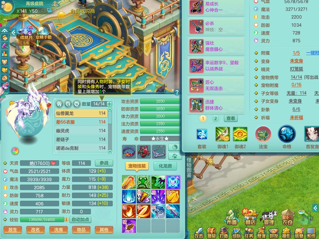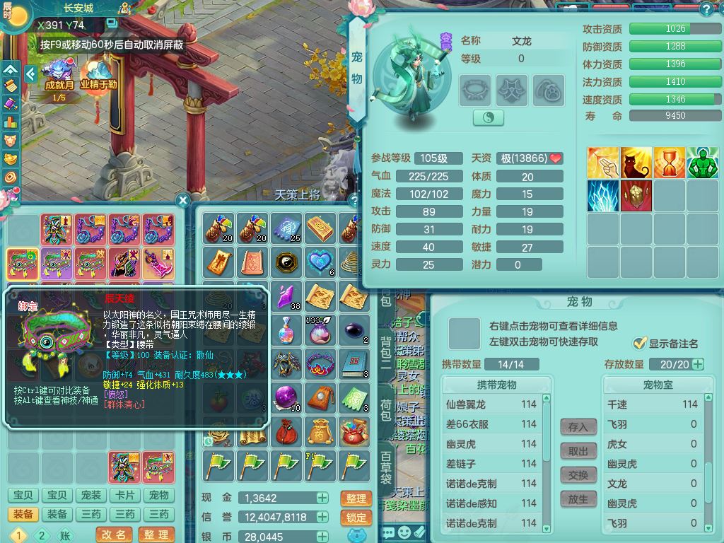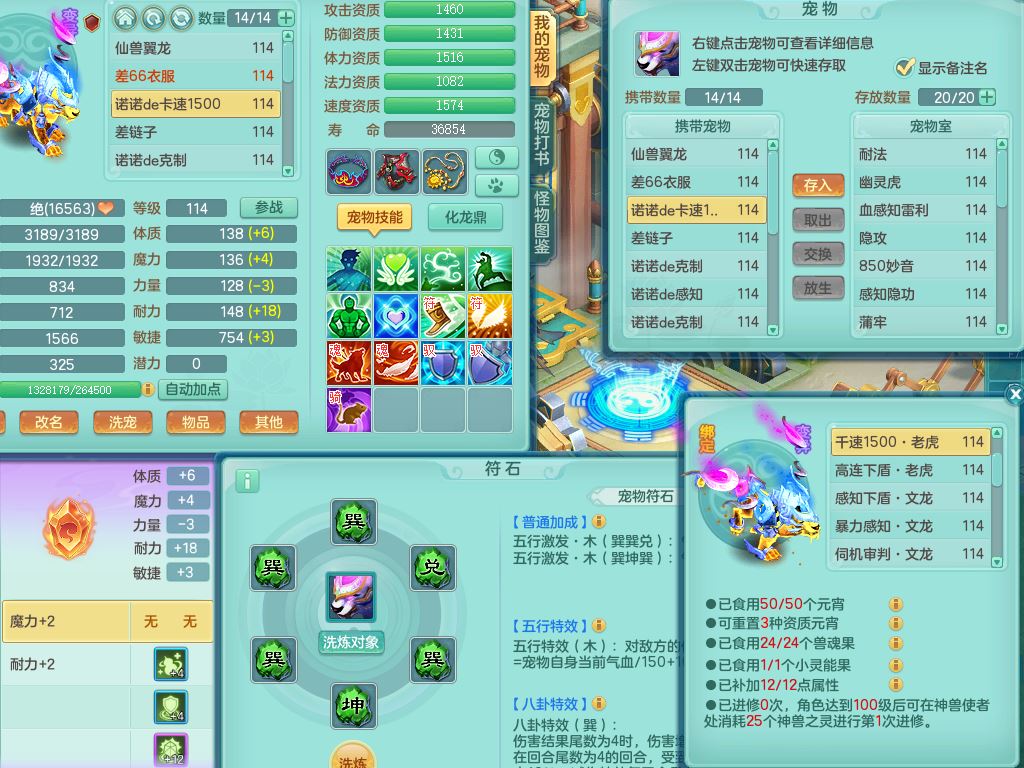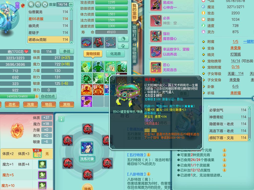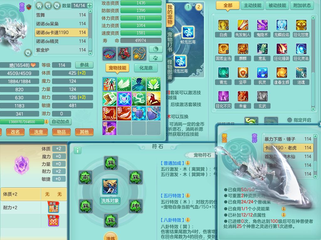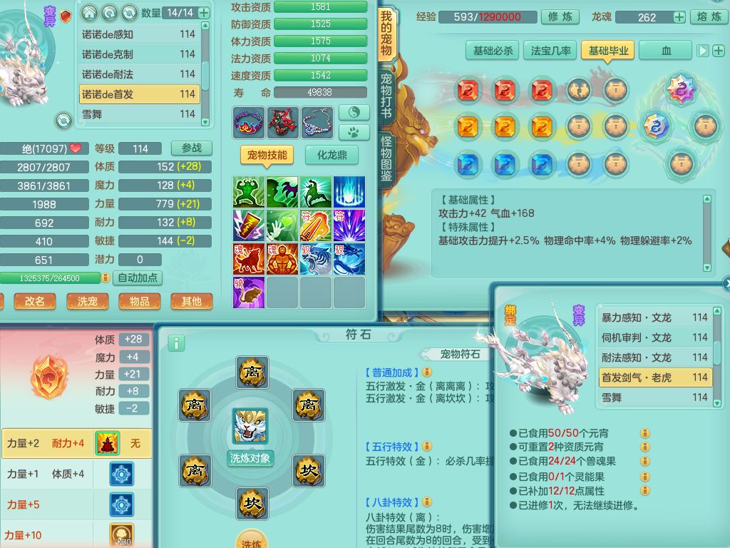 24344风驰电掣109男天宫【潜龙过半】准精灵怒,1龙(换,破境)1内(青蛇)1飞羽1炉子4宠皮,9觉醒3六字1五字11四字16只满果子,12红装备,Y心神帽子,必杀武器,强壮魔音衣服,幸运9坚毅以战项链,匠心破血腰带,迅捷玉清鞋子,鼎2.5+42+168,2套符石,60天月卡,庭院155,永久头饰、背饰、精灵皮肤,38个内丹碎片,2双人坐骑(1飞行)