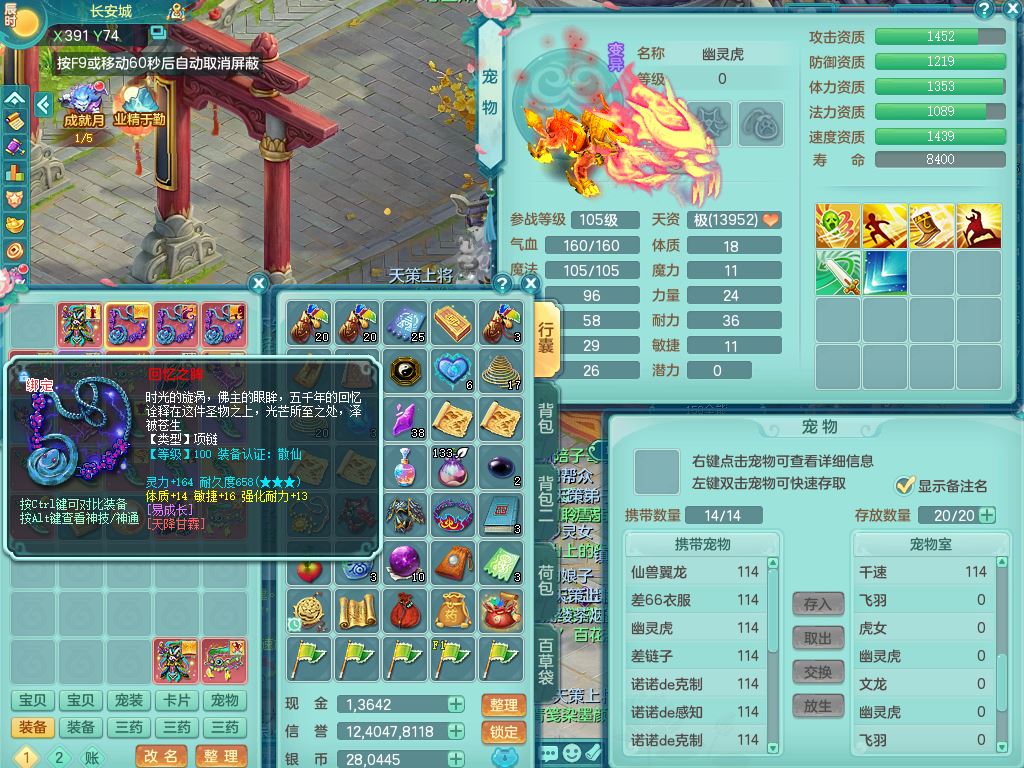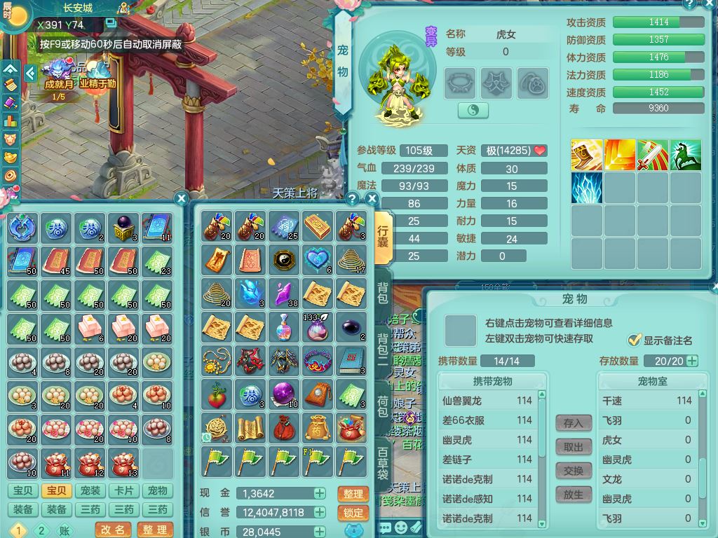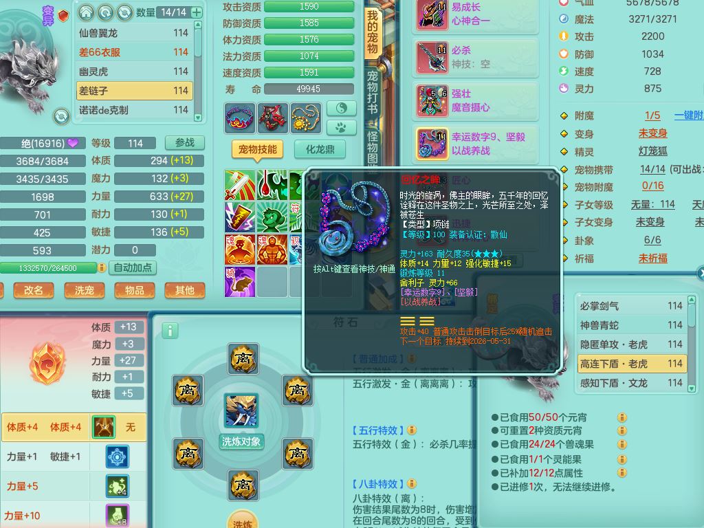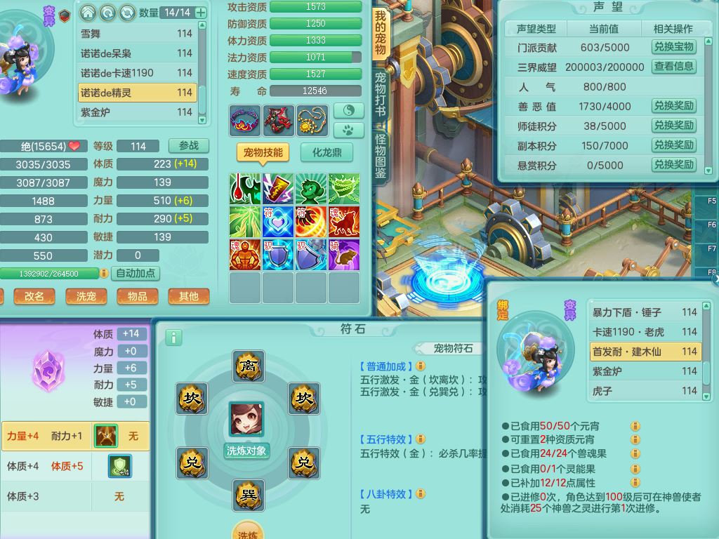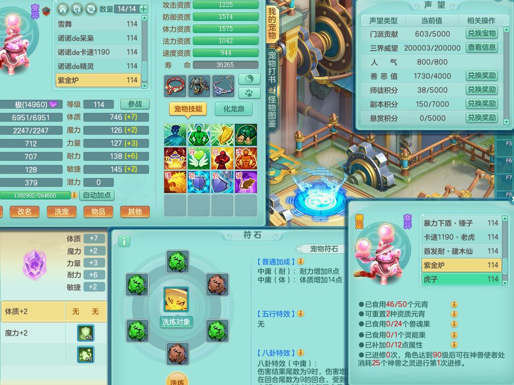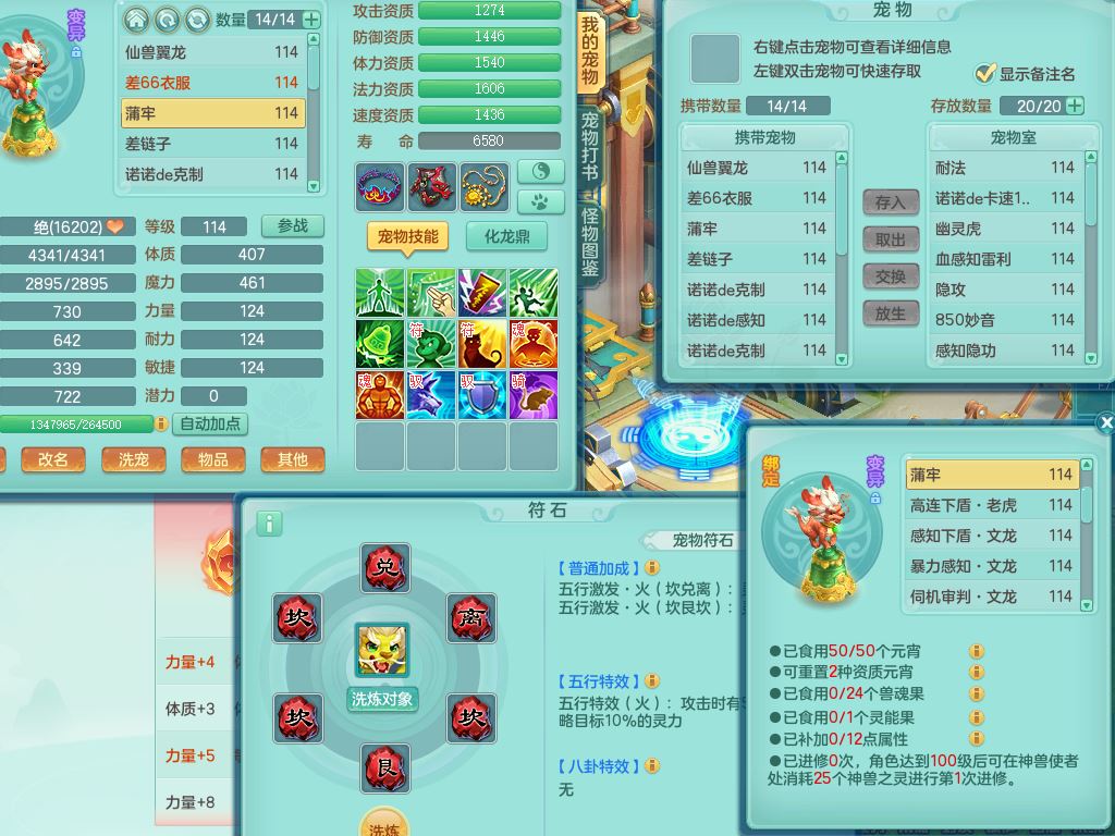 24344风驰电掣109男天宫【潜龙过半】准精灵怒,1龙(换,破境)1内(青蛇)1飞羽1炉子4宠皮,9觉醒3六字1五字11四字16只满果子,12红装备,Y心神帽子,必杀武器,强壮魔音衣服,幸运9坚毅以战项链,匠心破血腰带,迅捷玉清鞋子,鼎2.5+42+168,2套符石,60天月卡,庭院155,永久头饰、背饰、精灵皮肤,38个内丹碎片,2双人坐骑(1飞行)