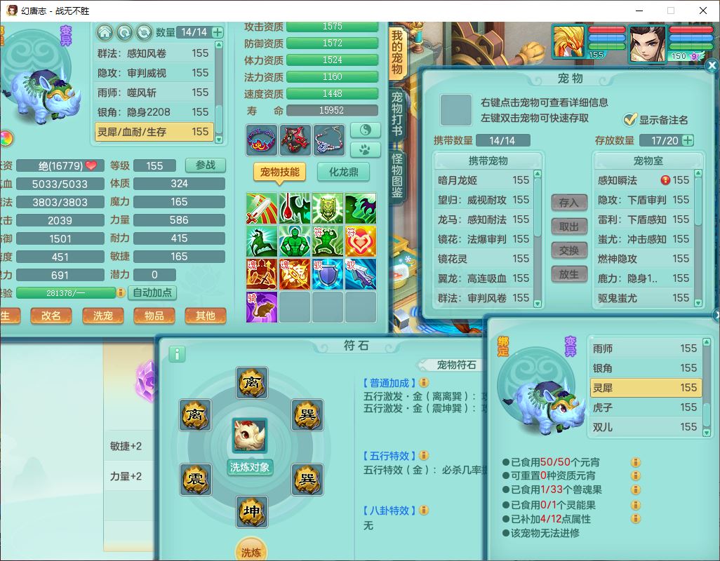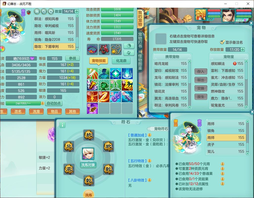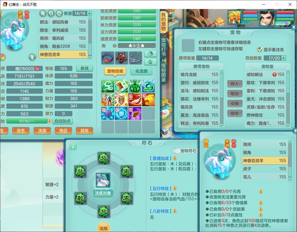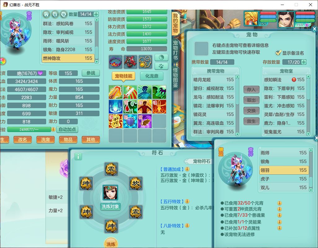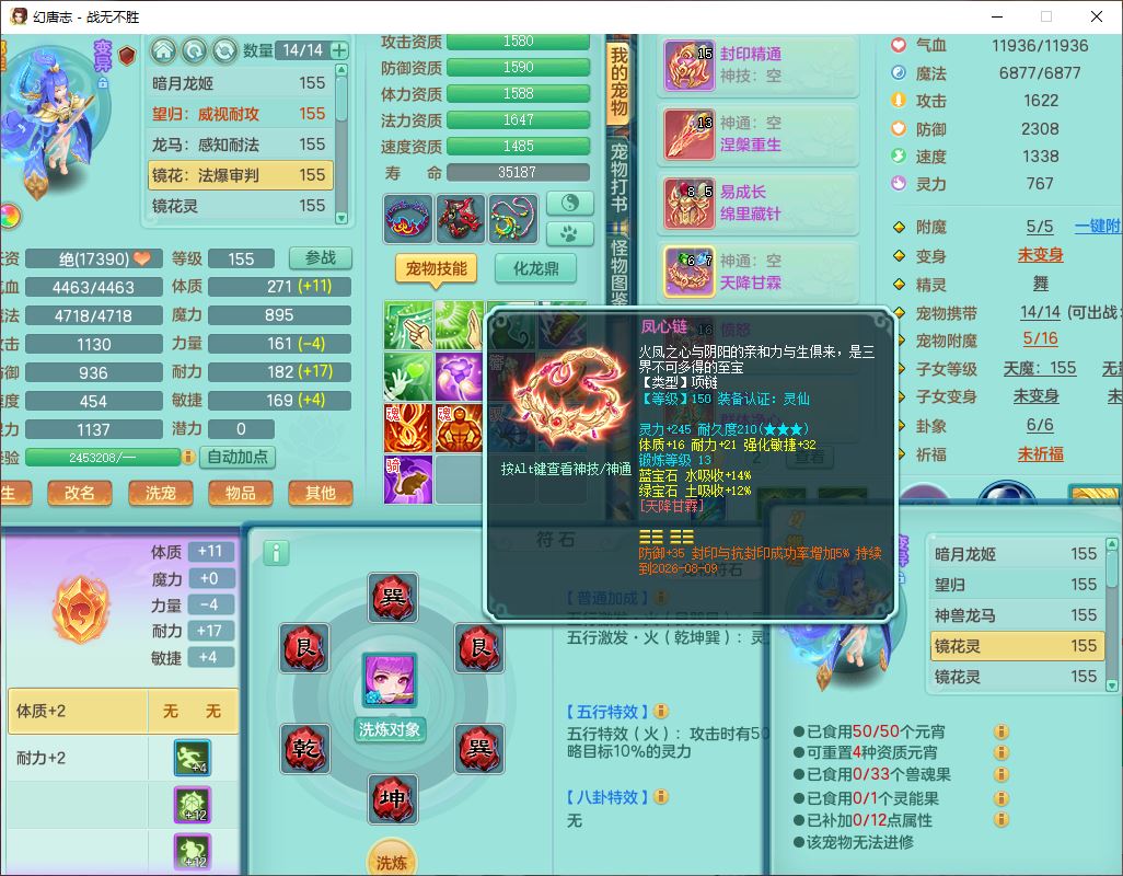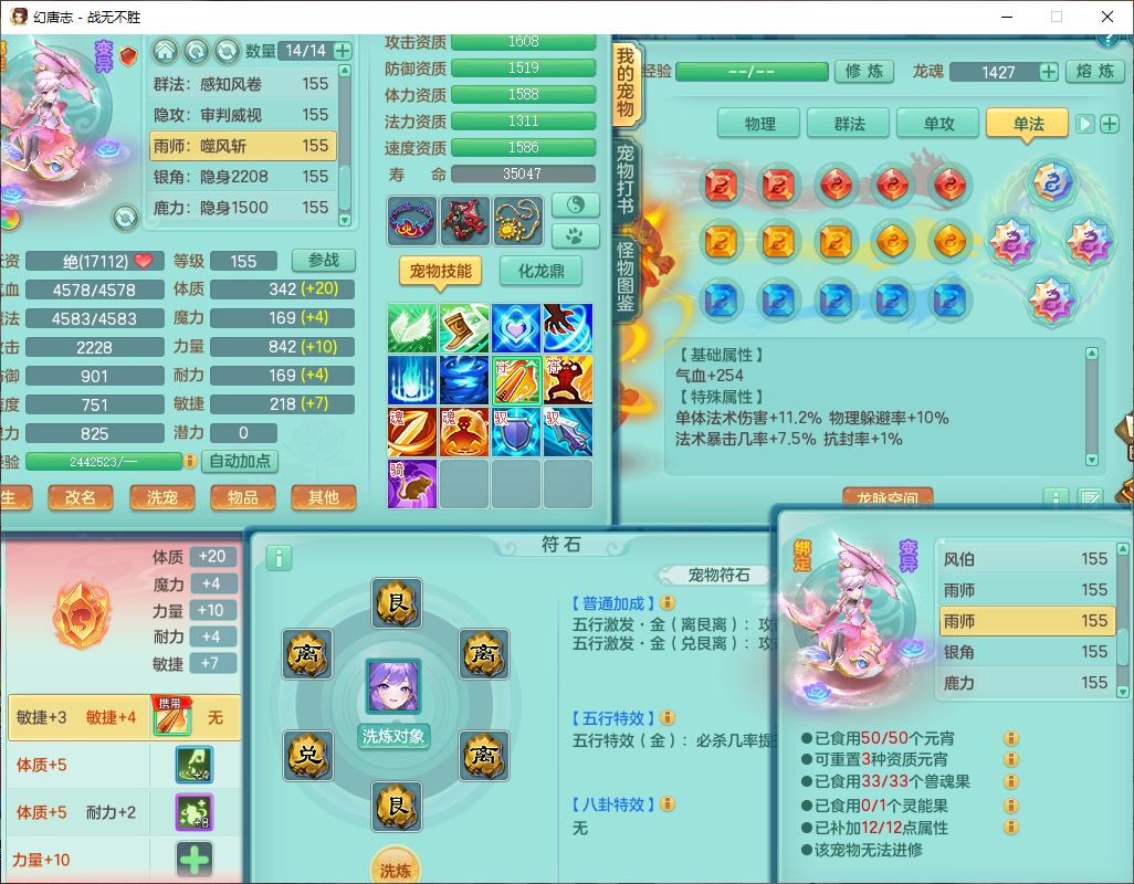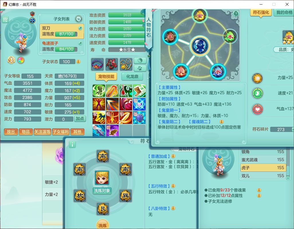 24338战无不胜159男天魔【暴龙逍客+西瓜冰】精灵舞,2龙(1换、无内)1望归1内丹龙马1龙姬2镜花2特殊(焚心、噬风),2觉醒3宠皮1六字1五字3四字,8红装备,封印精通帽子,Y笑里衣服,迅捷晶清鞋子,Y罗汉帽子,鼎5.0+70,永久外观、精灵皮肤,3双人坐骑