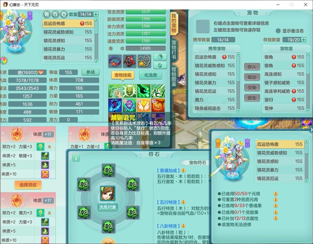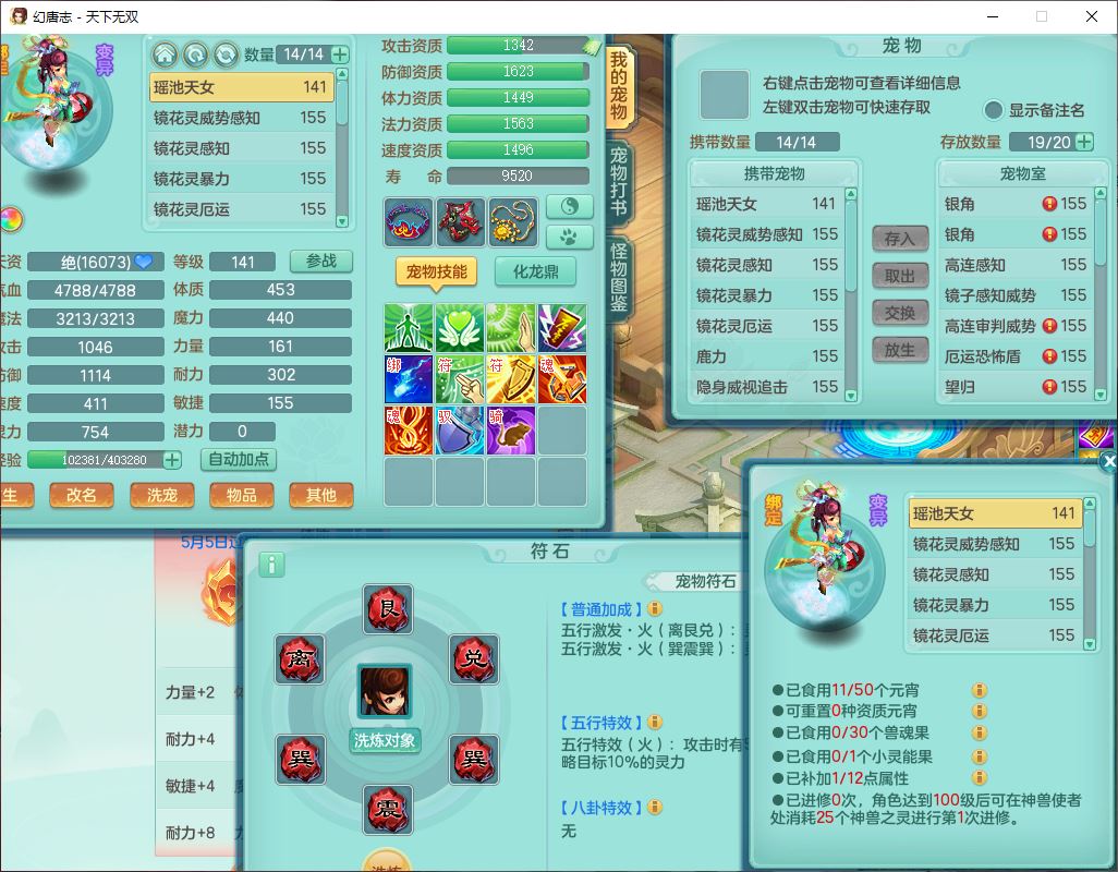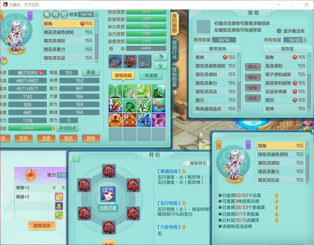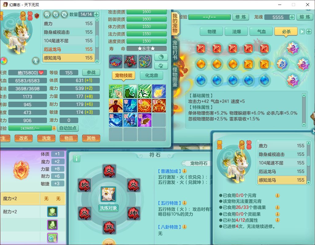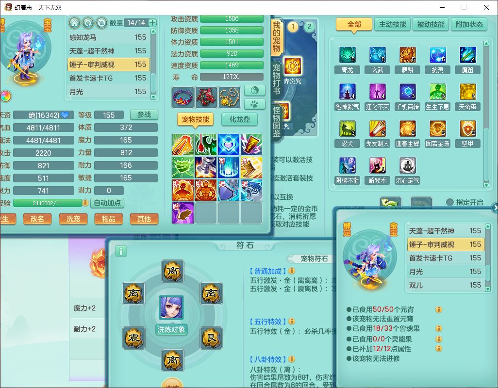 tx10460天下无双159男方寸精灵舞,1龙(无内)1内丹神(龙马)1龙马(无内)5镜花1望归1龙姬1建木2特殊(禁锢,兽决登云),5觉醒5六字1五字4四字综合7只满果子,11红星辰之拥装备,封印精通慈航帽子,封锁魔音武器,Y激励衣服,愤怒四海腰带,迅捷群体守备鞋子,鼎5.5+70,167天月卡,54内丹碎片,半页还童丹,172W神武币,1双人飞行坐骑