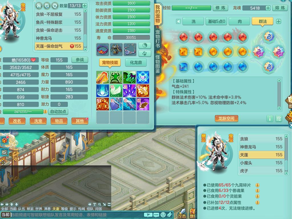 tx10462天下无双159男万兽精灵歌,满级共鸣,1内丹青蛇1龙马无内,1特殊(冲锋)3只满果子2觉醒,9红,916单加必杀武器,Y崩山衣服,Y笑里腰带,坚毅项链,Y守护鞋,仓库回春武器,封锁武器,鼎5.0,法爆7.5,43天月卡,庭院150,永久外观精灵皮肤,25仙兽灵22内丹碎片,飞行双人坐骑