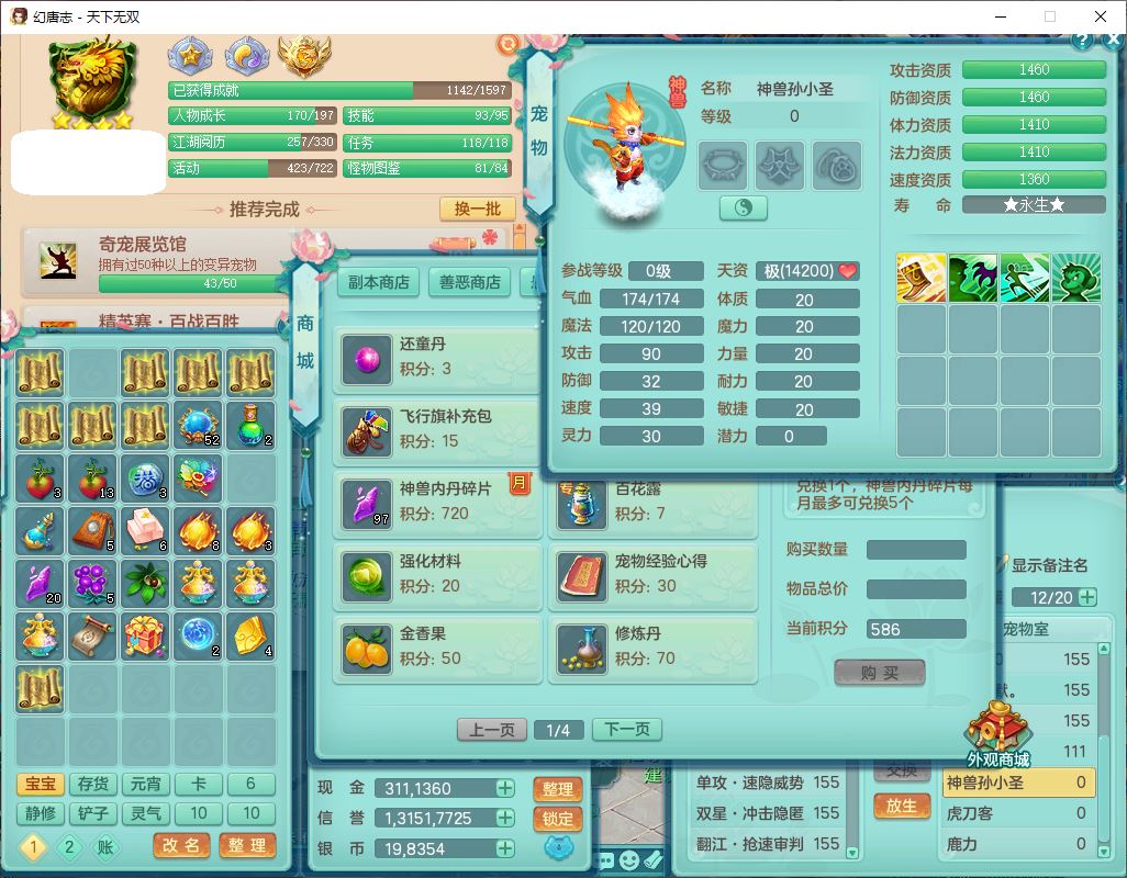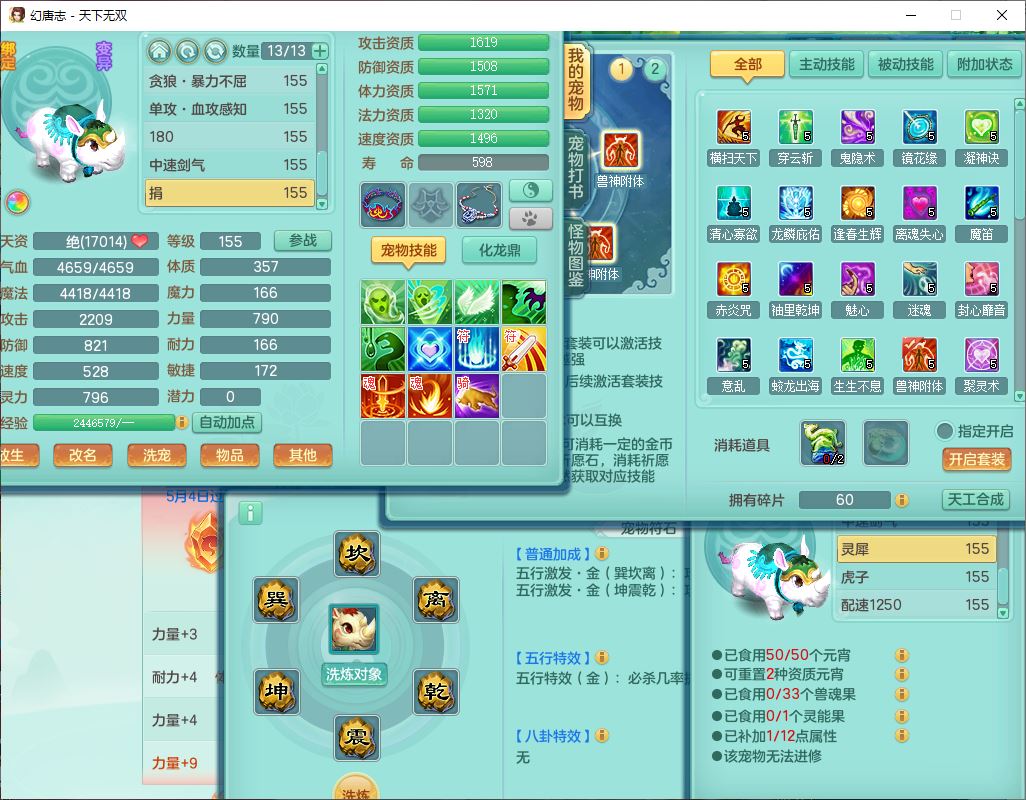 tx10471天下无双159男万兽【潜龙号+西瓜冰】精灵悟,1内丹青蛇2镜花1望归4特殊(双星、翻江、墨守,兽决焚心)1龙姬1金炉,9觉醒8六字2四字综合6只满果子,7红双破甲装备,破甲止戈帽子,928单加Y武器,崩山衣服,坚毅项链,破甲鞋子,鼎5.5+70+280,68天月卡,庭院157房屋166,永久背饰、精灵皮肤,52个仙兽灵,20个内丹碎片,1双人飞行坐骑,qq不给可改密