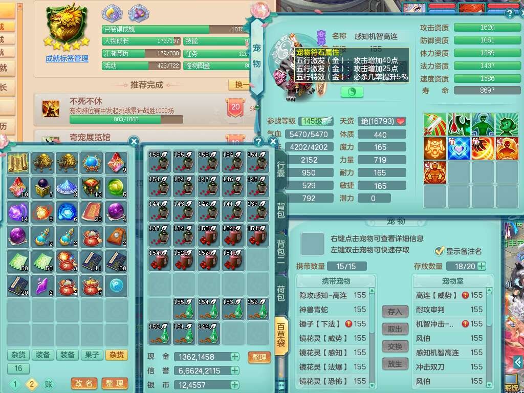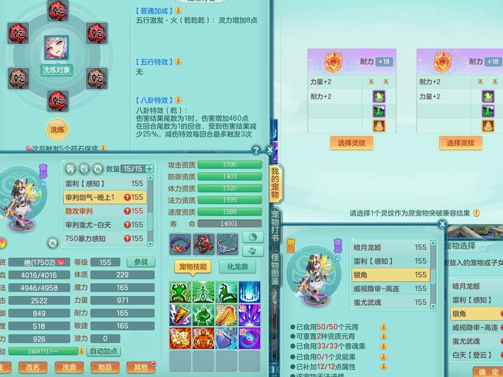 K22407阳春白雪159男无量,精灵舞,1龙2神兽(1蛇),5觉醒,2宠皮,3特殊(雷厉,登云,荒古),4只六技能镜花灵,1只六技能龙姬,三红愤怒易成长野兽单加腰带,易成长晶清单加57鞋子,六特,有三红躲避奇珍笑里衣服,物理有破甲单加56头,911狂暴单加武器,崩山衣服,神佑链子,易成长单加55鞋子,迅捷破血鞋子,4.5基础鼎,差309积分换14个永久格子,2个纯六字,3个五字,10只满果子,经验修炼在榜,双人坐骑。