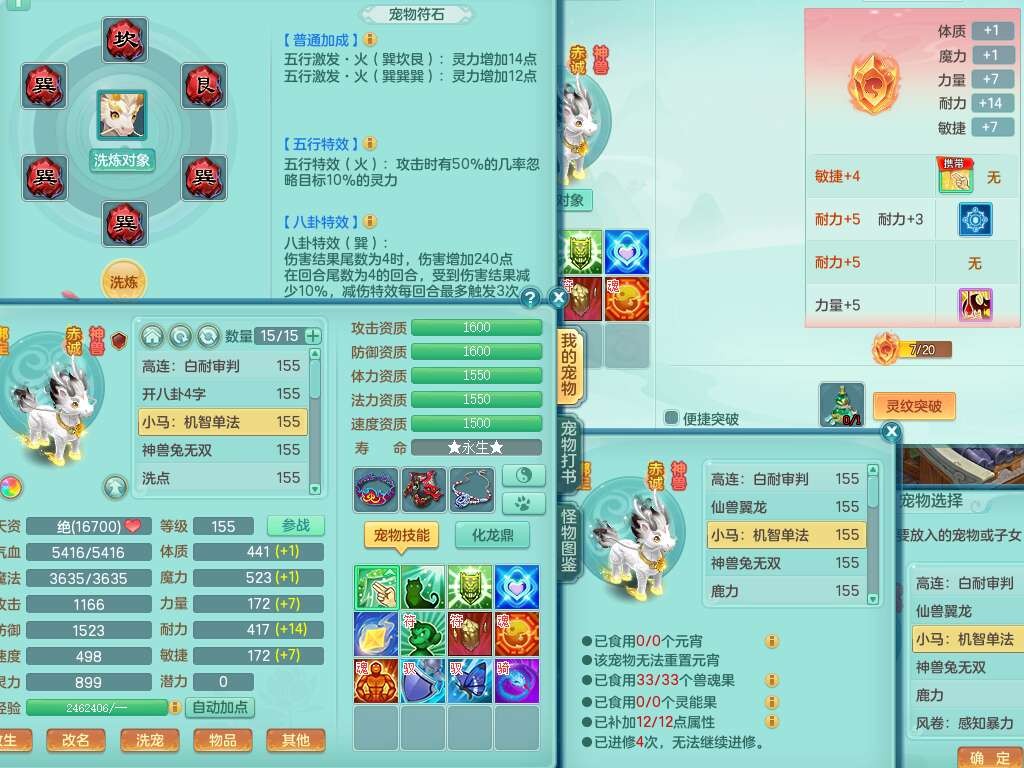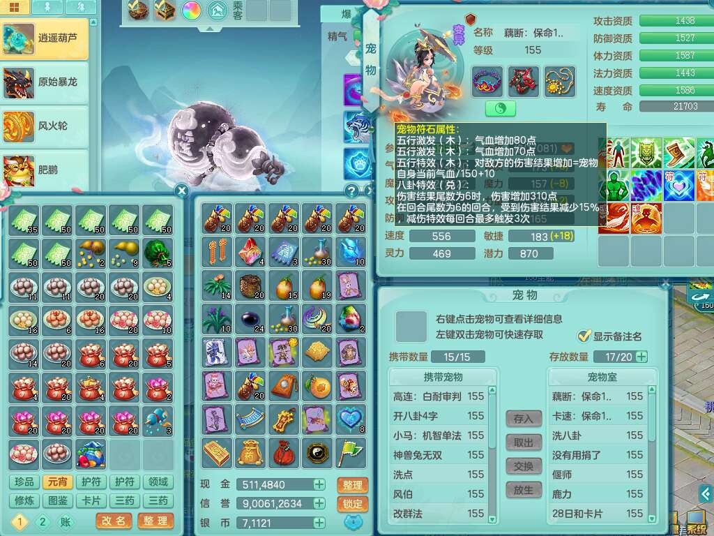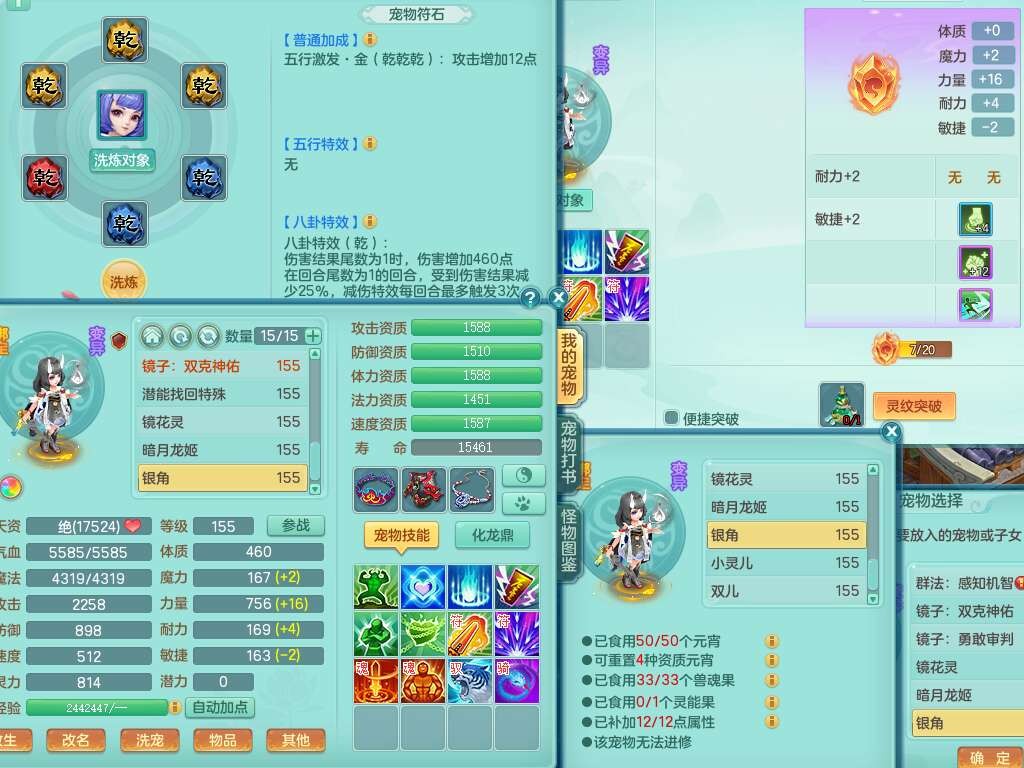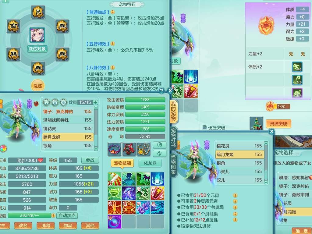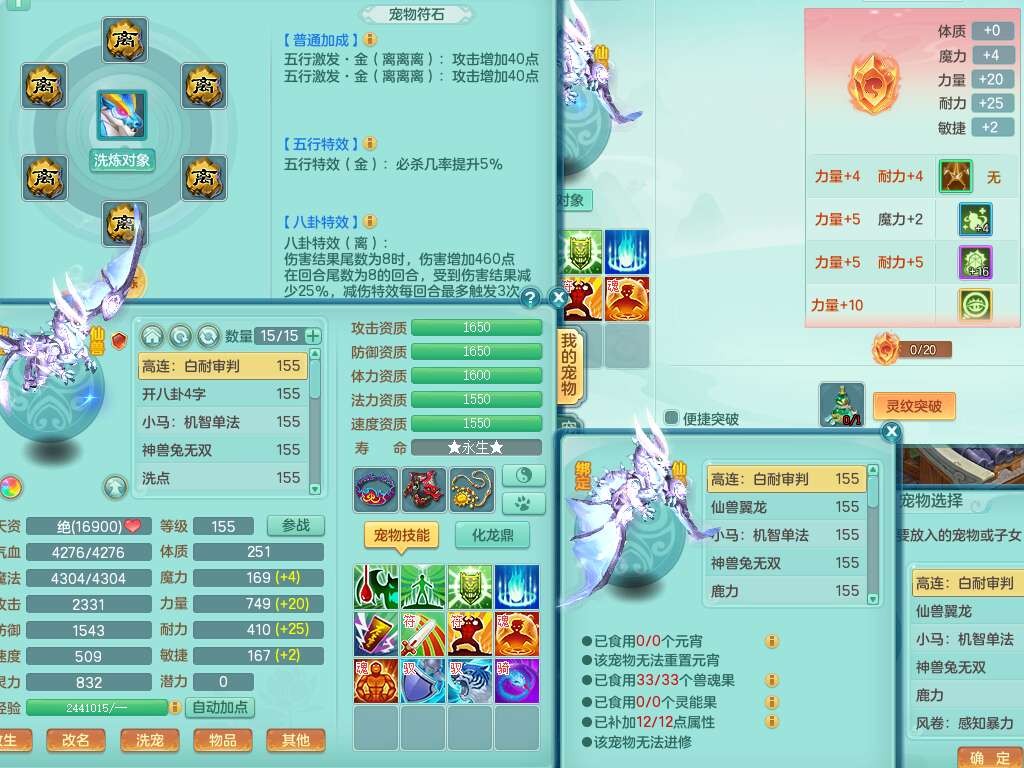 J22401今年勇159男龙宫,精灵歌+舞,2龙(1龙无内),准3内胆神(仓库47神兽内胆碎片),【8只觉醒,已潜龙】,4位靓号不含4,2宠皮+1幻灵果,2特殊(藕断,怒破),3只六技能镜花灵,1只六技能龙姬,五雷单加头,法爆单加57衣服,18段匠心易成长衣服,275易成长项链,四海单加52鞋子,有法缭鞋子,5.5基础鼎+70攻+280血,7个纯六字,1个五字,24只满果子,宠排在榜,4个孩子,4个坐骑,神驹马上发财+暴龙洪荒+西瓜冰武器,带86天月卡。