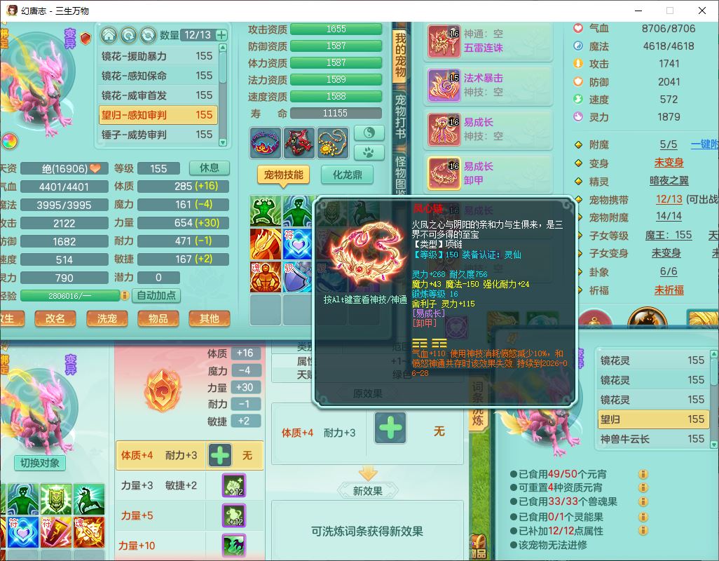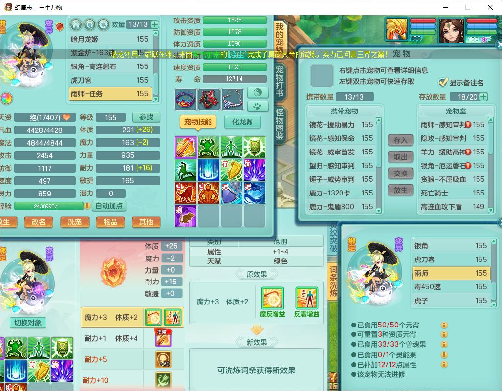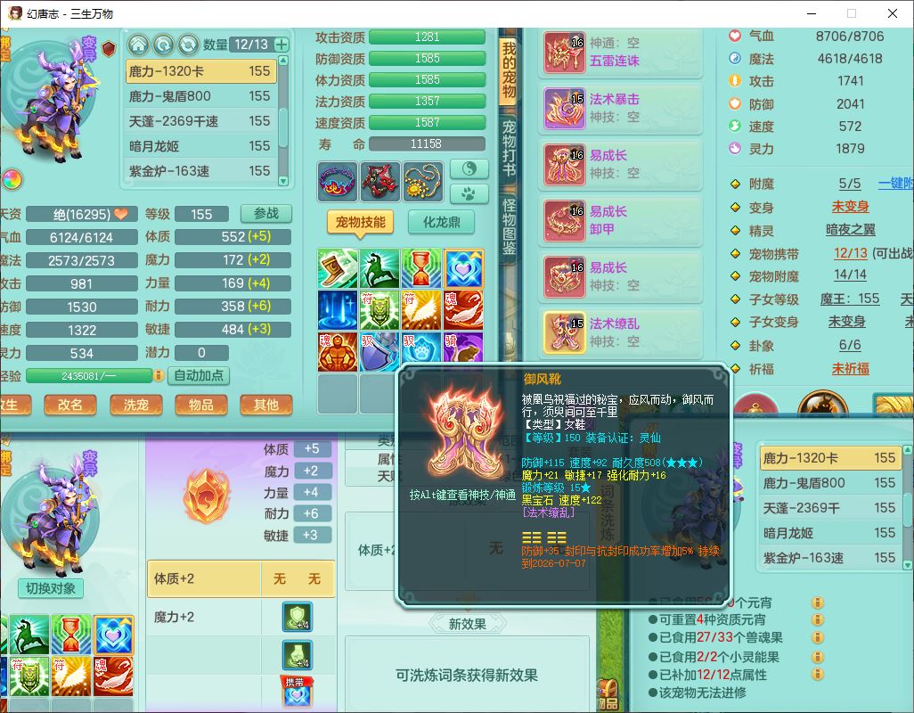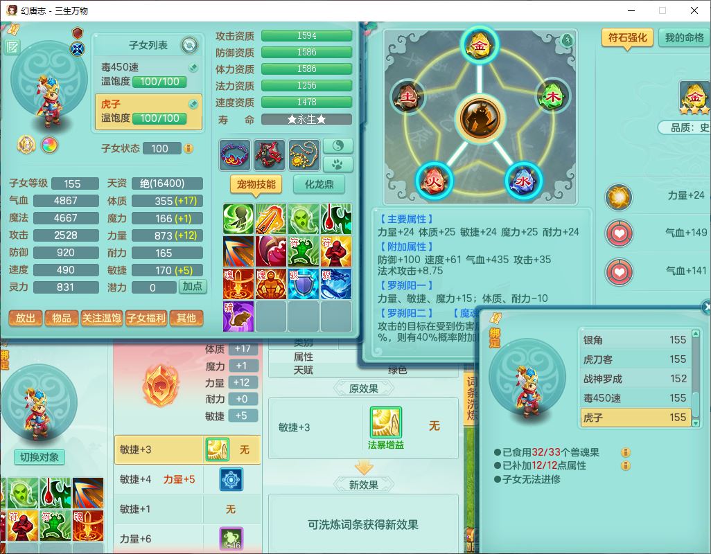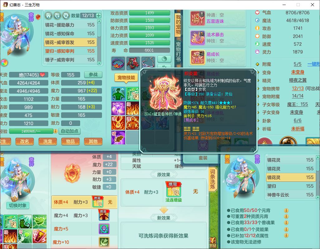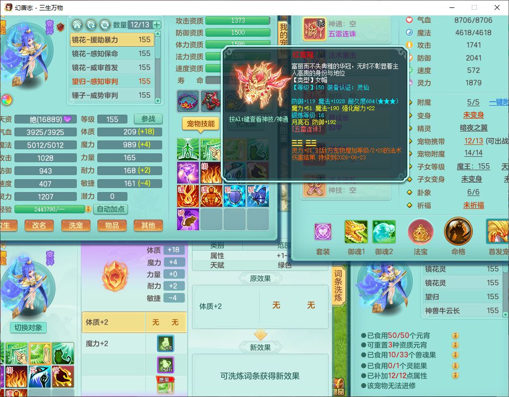 99806三生万物159女龙宫精灵舞,1内1望归3镜花1龙姬1金炉1虎刀客,3觉醒综合13只满果子,7红装备,五雷帽子,法爆武器,Y卸甲项链,法缭鞋子,仓库多装备,可搭星辰之拥物理装,狂暴罗汉武器,破甲激励鞋子,鼎5.5,15个仙兽灵,1月夜幽狐坐骑