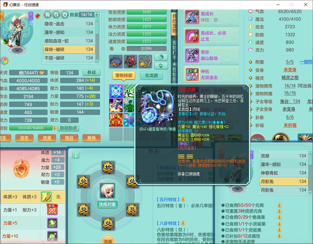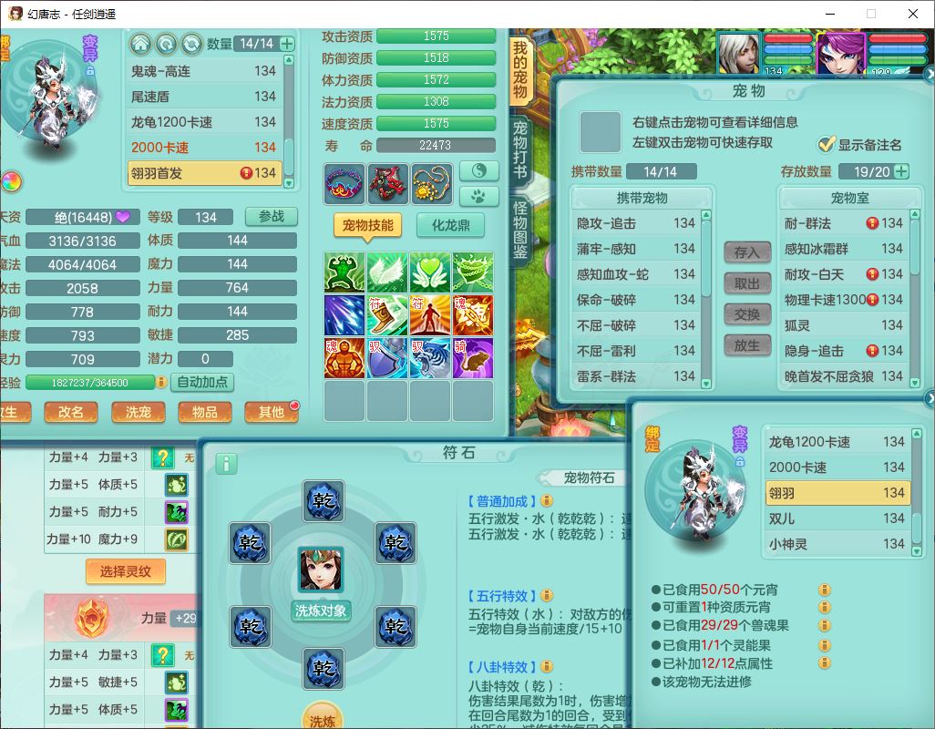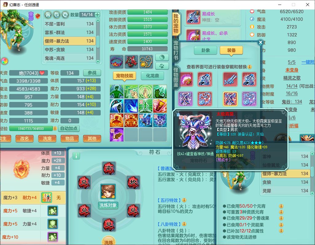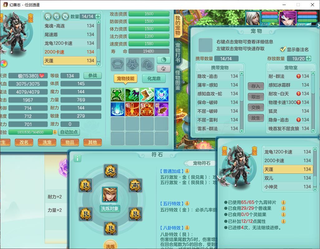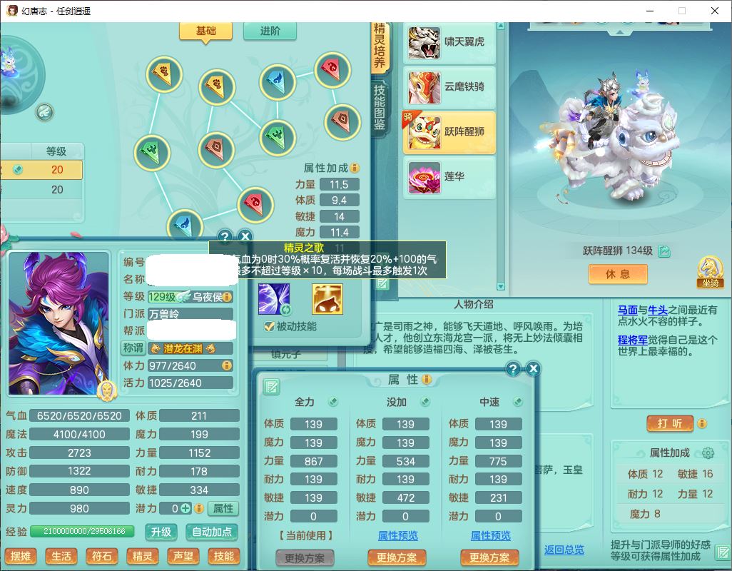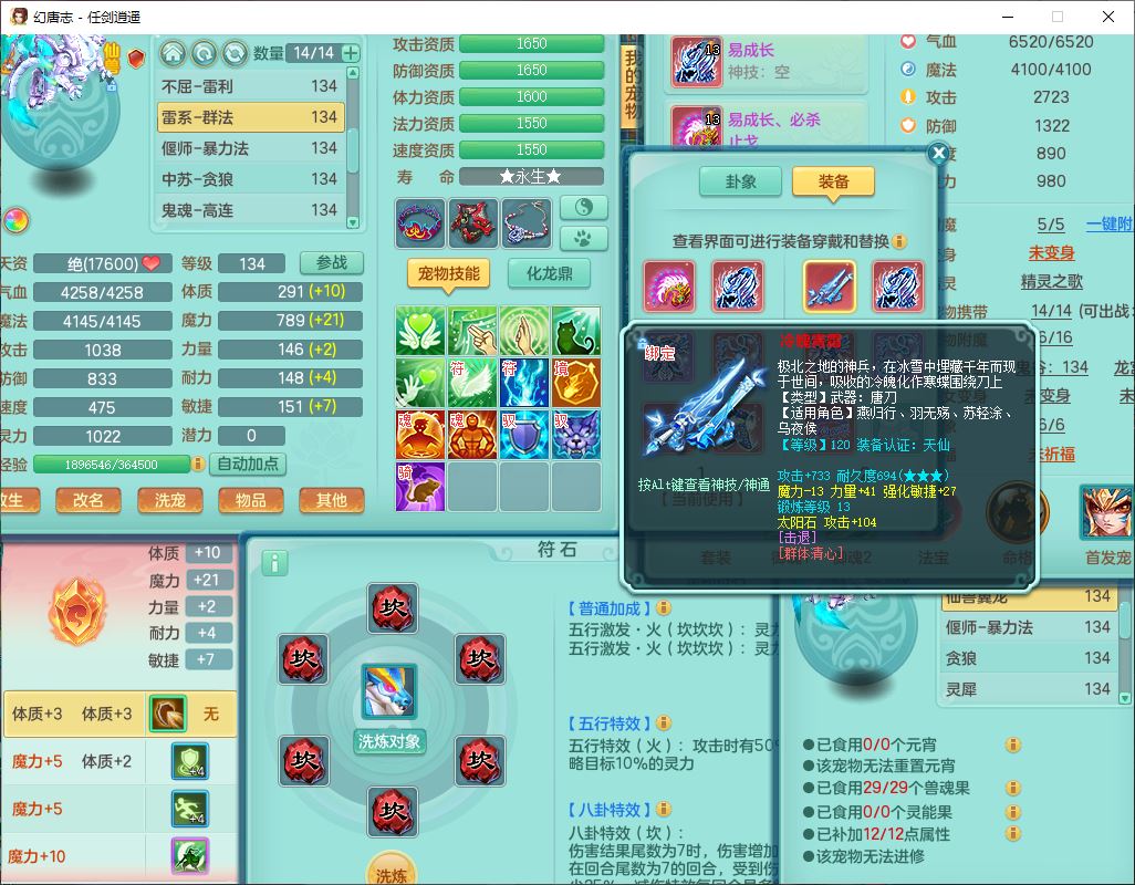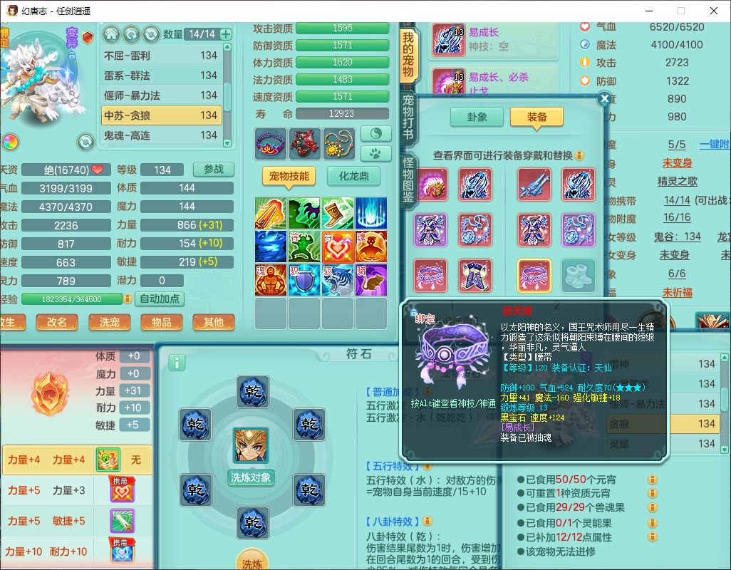 71490WH任剑逍遥129男万兽【潜龙号+火焰之力】精灵歌、舞,1龙(换、破境)1内丹青蛇(破境)3贪狼,15觉醒3宠皮(1幻灵果)10六字5五字12四字26只满果子,12红装备,Y必杀止戈武器,崩山衣服,神佑破血项链,愤怒Y腰带,迅捷Y鞋子,击退玉清武器,Y破魔帽子,鼎4.0+56+224,永久外观、精灵皮肤,100多w神武币,4坐骑(1双人飞行)