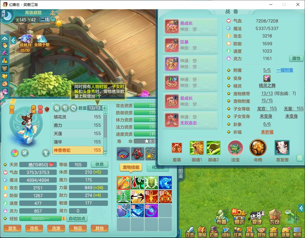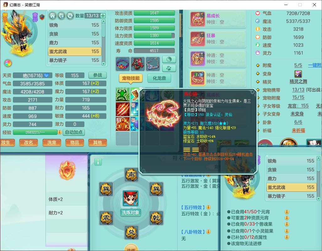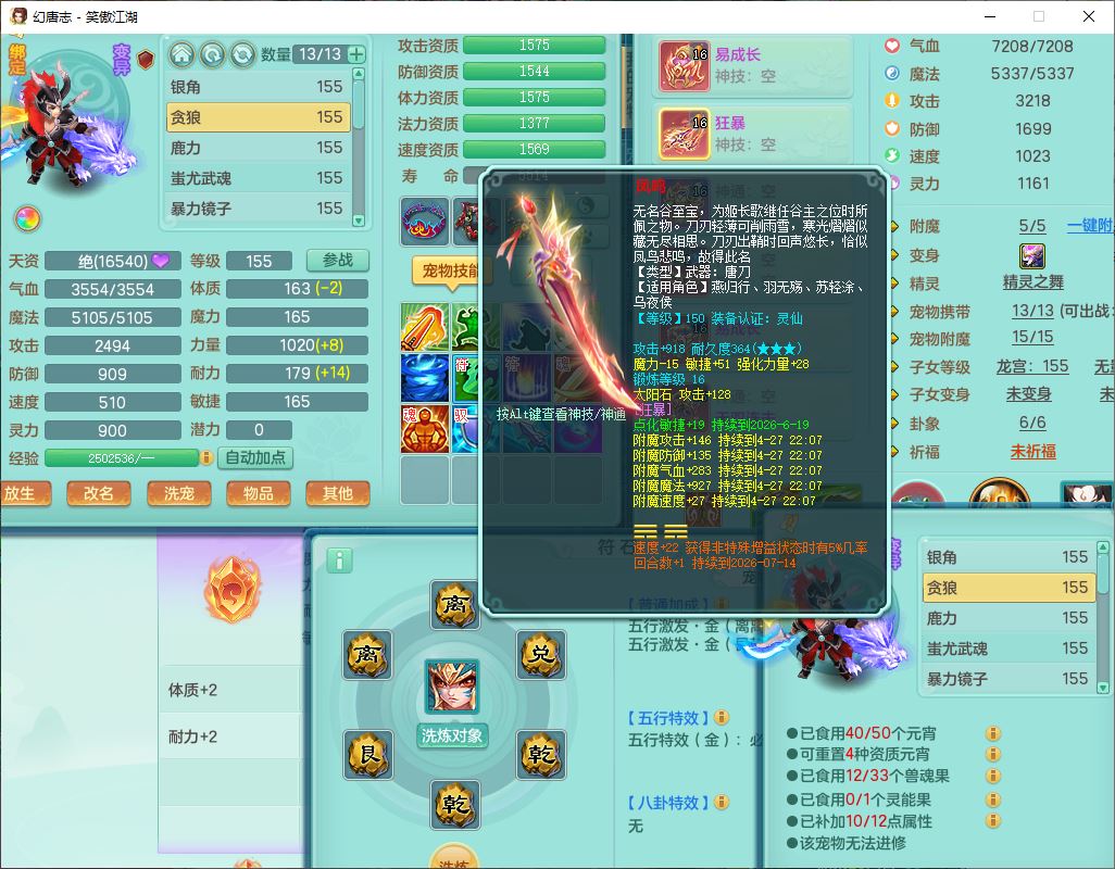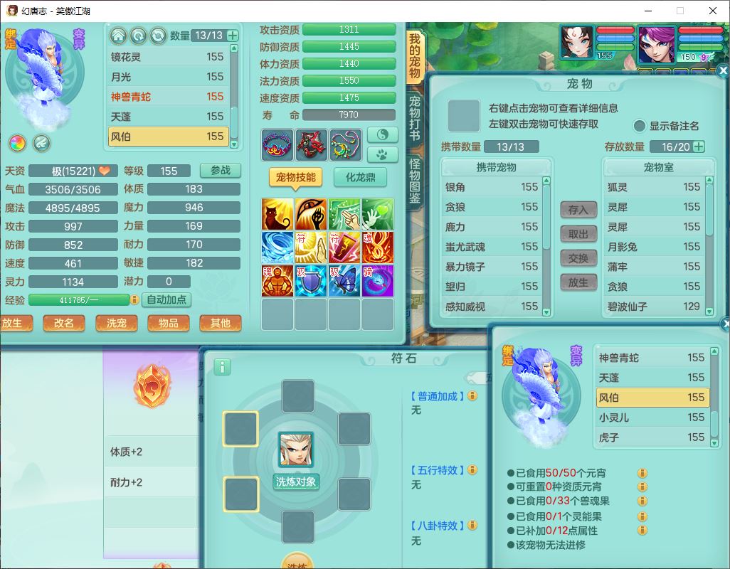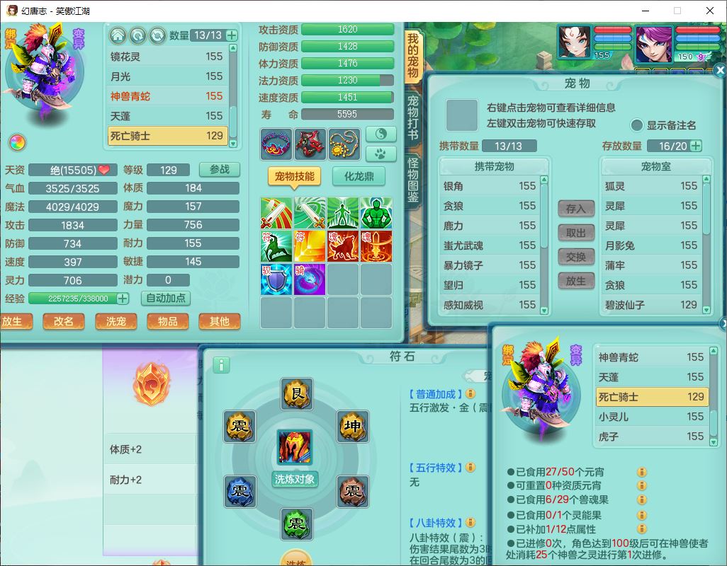 4384笑傲江湖159男万兽精灵歌,1青蛇(无内)1望归2镜花,宝宝种类齐全,装备齐全,狂暴武器,34个内丹碎片,1飞行坐骑,带成品159奶粉精灵舞,装备宝宝齐全