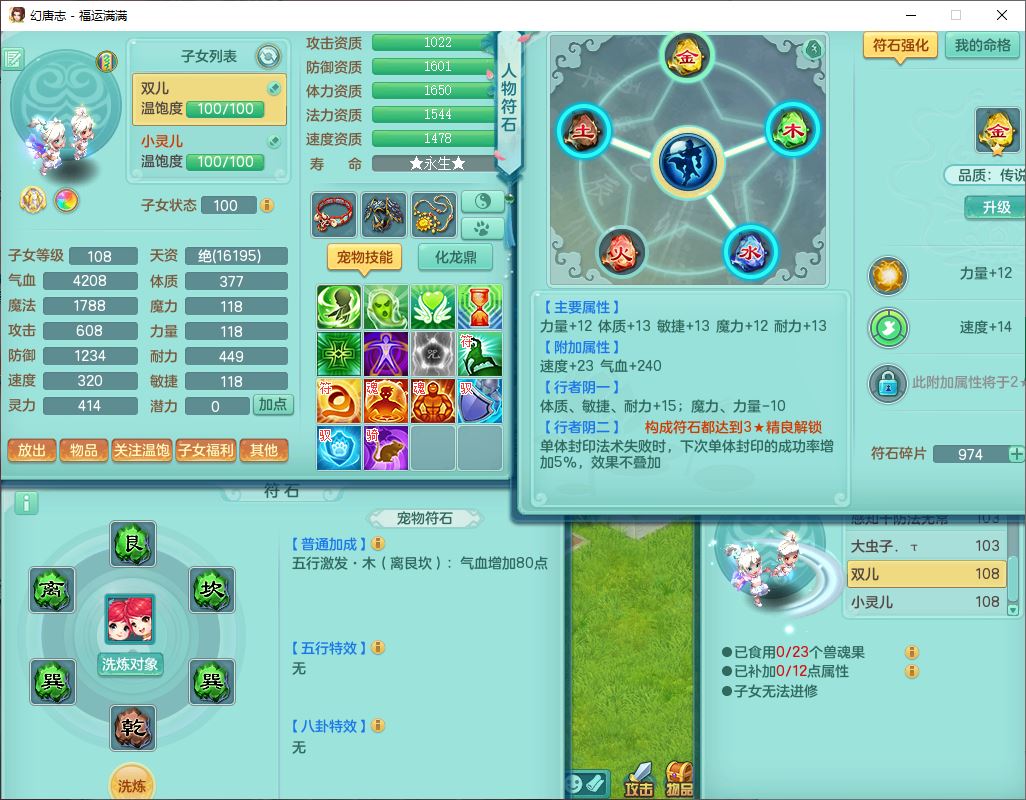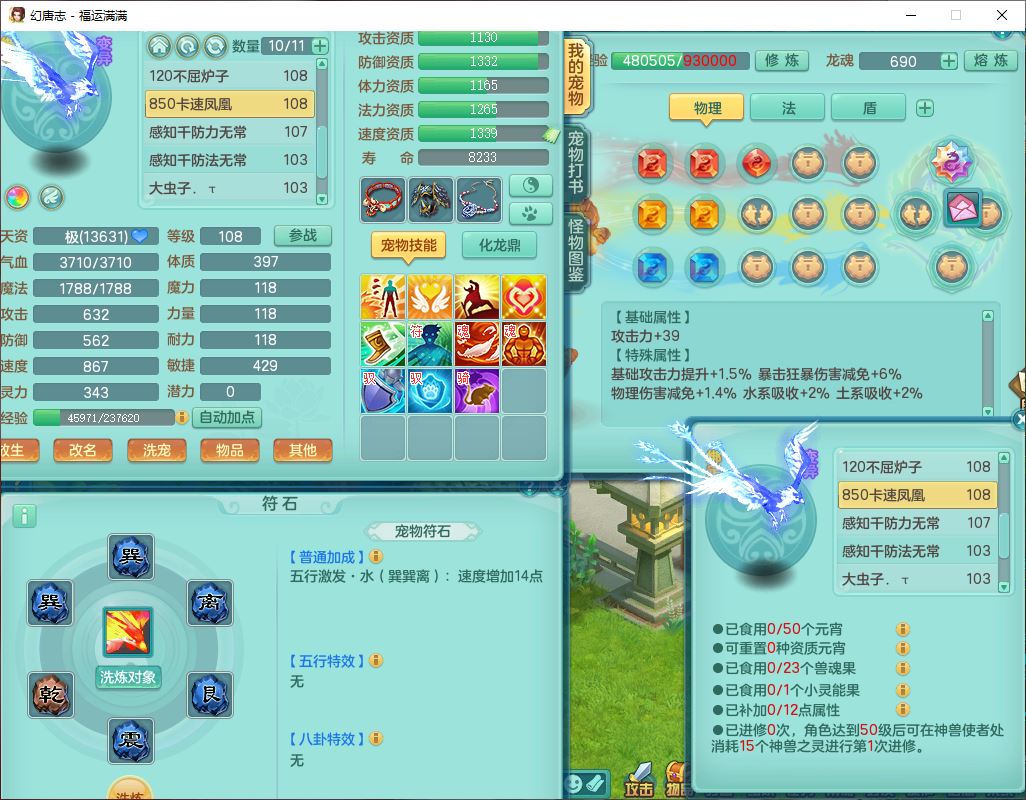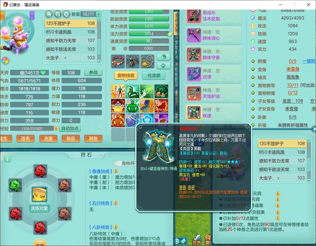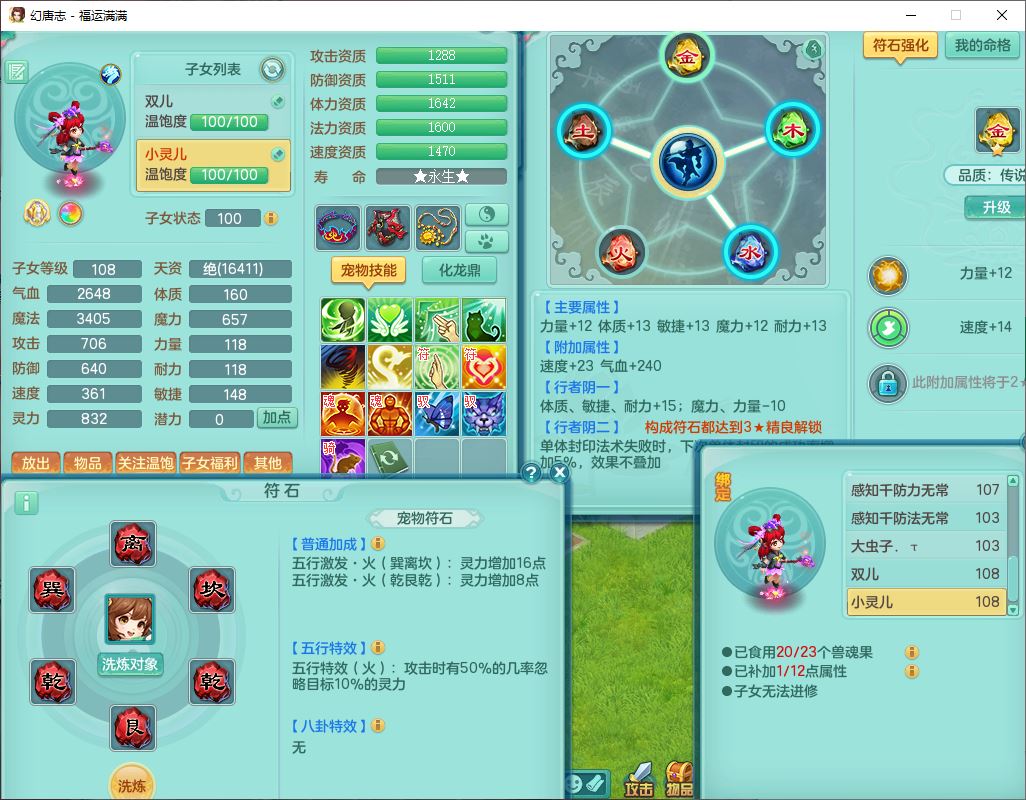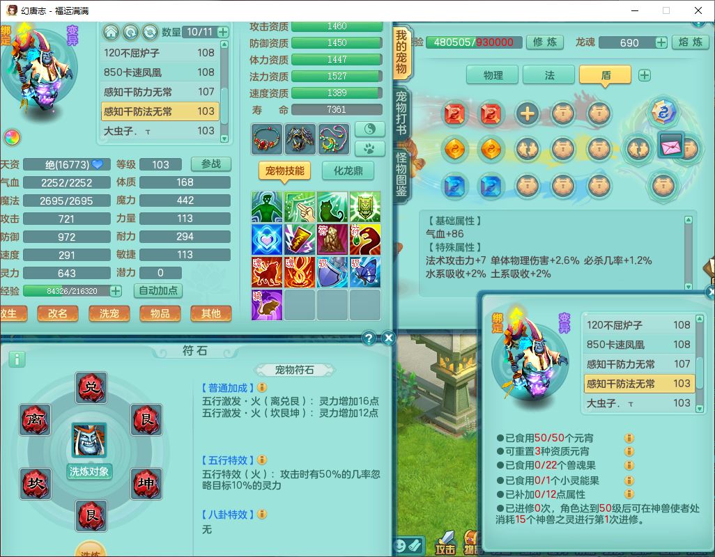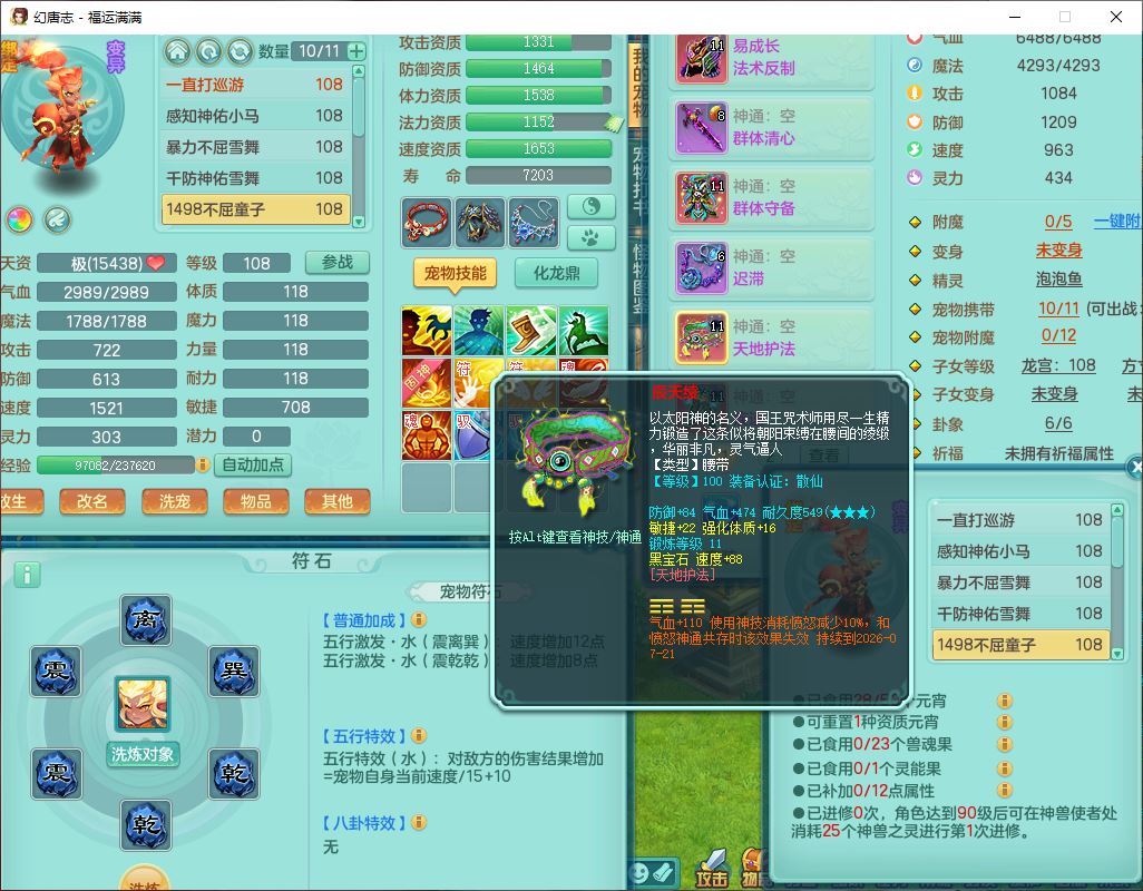 99803福运满满103男天魔【马上发财+火焰之力】10级精灵,2内(1青蛇1龙马)2翻江1童子1金炉,8只成品满高书宝宝,2孩子(龙宫+方寸),装备齐全,Y法术反制武器,119天月卡,满修炼,永久头饰、脸饰,24个内丹碎片,100多w神武币