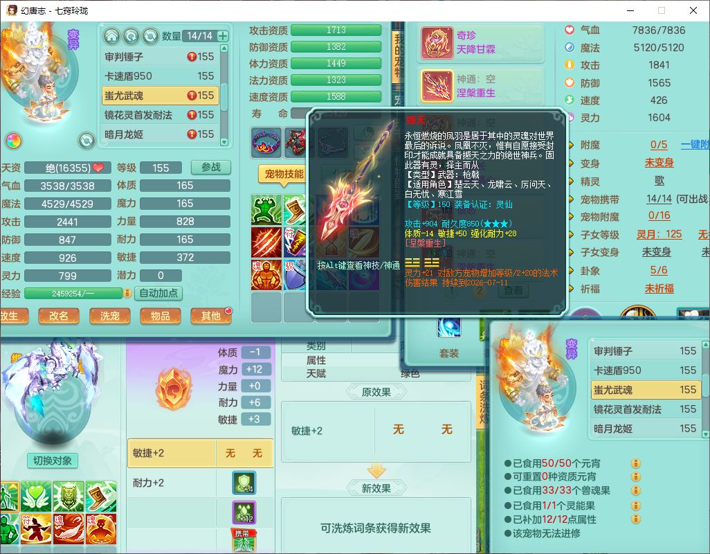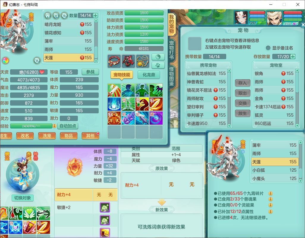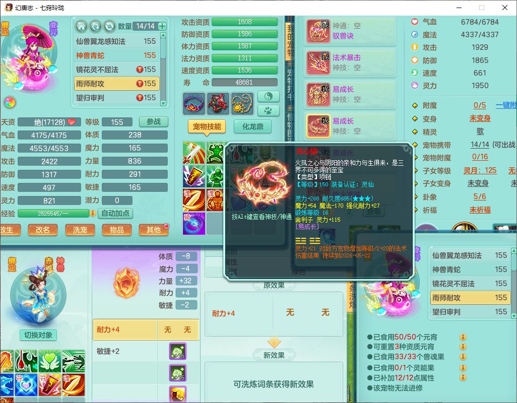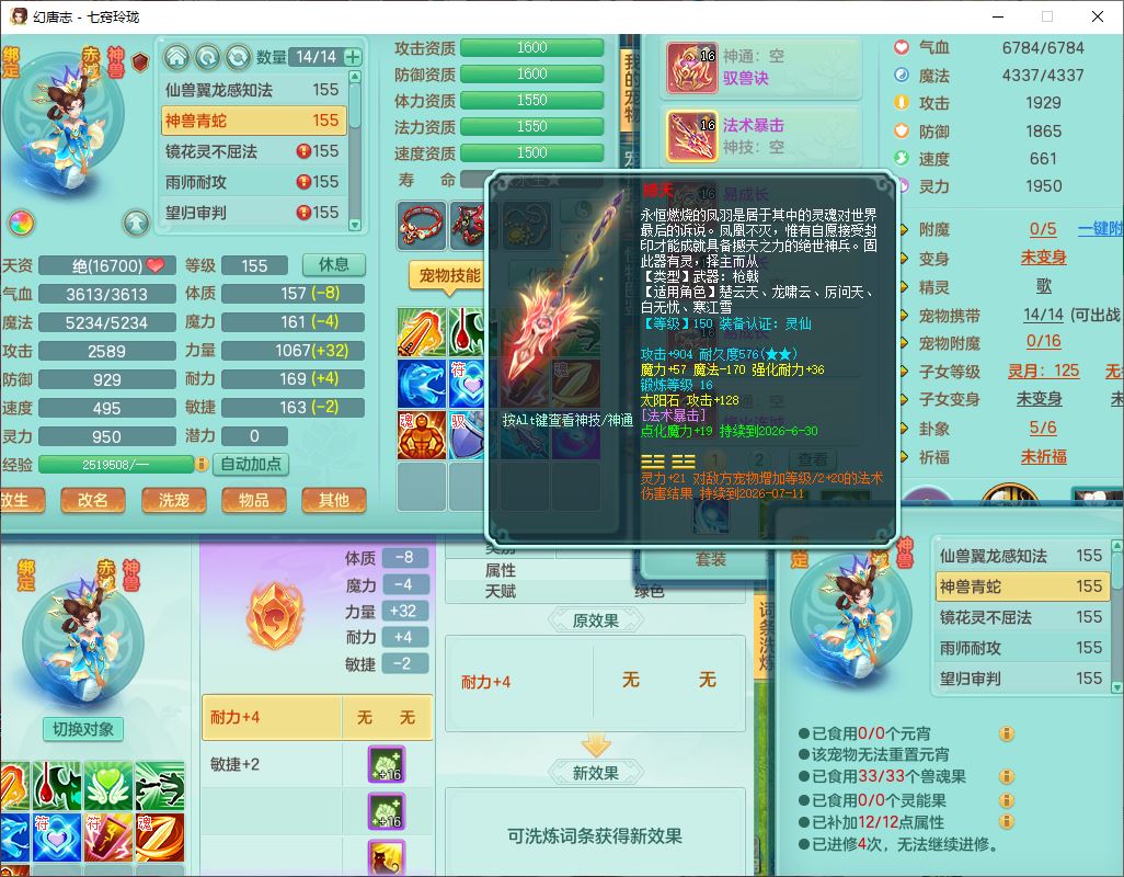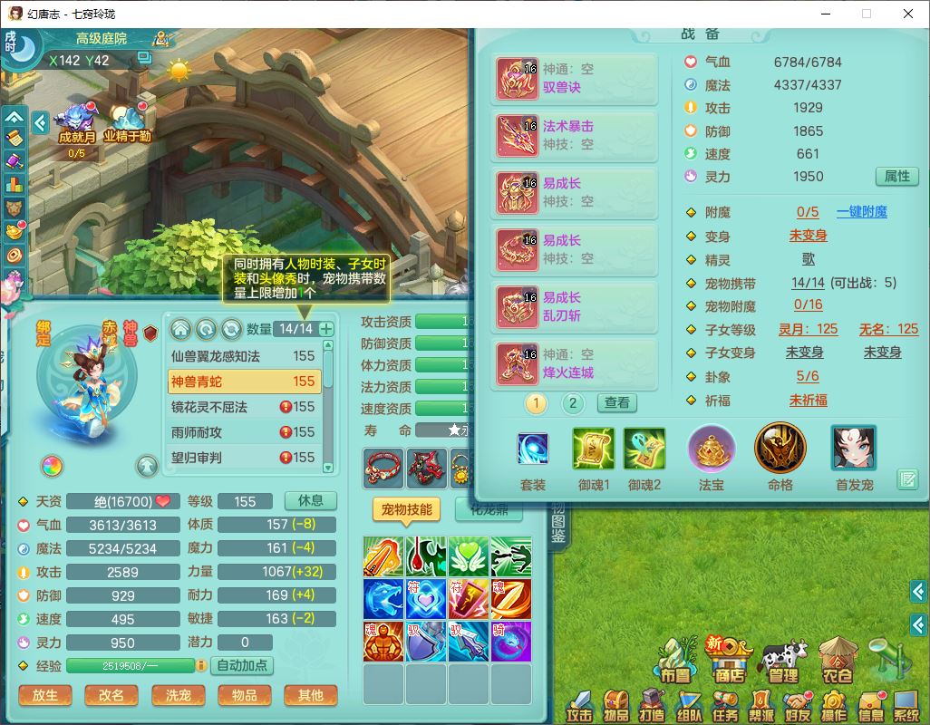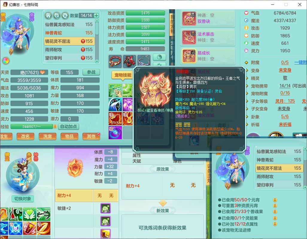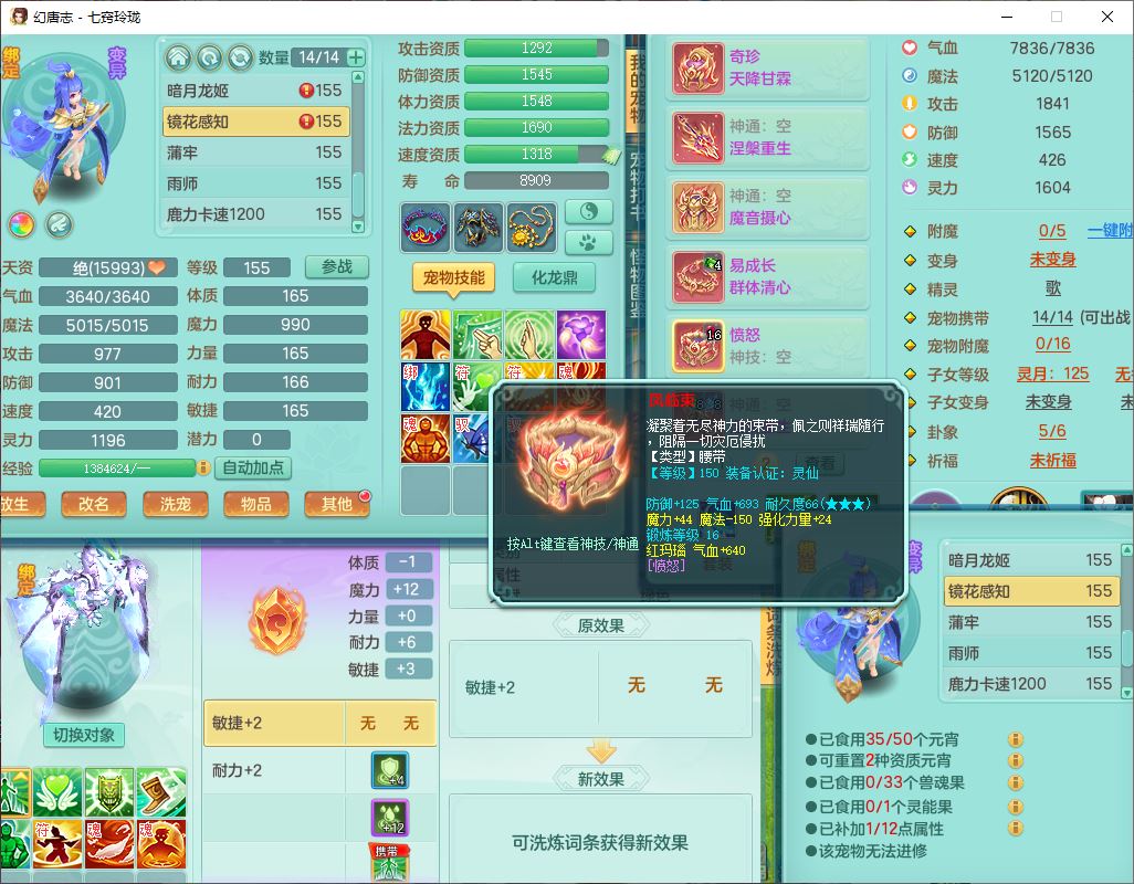 4383七窍玲珑159男天宫精灵舞,2龙(1换,无内)2内(1青蛇)23镜花灵1龙姬,2宠皮12只满果子,7红装备,1950灵力,法爆武器,268Y项链,Y双红腰带,一套辅助愤怒5特,鼎4.5+70+280,2套符石,永久外观,精灵皮肤,飞行双人坐骑