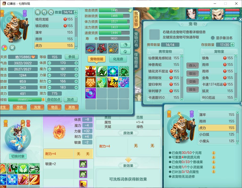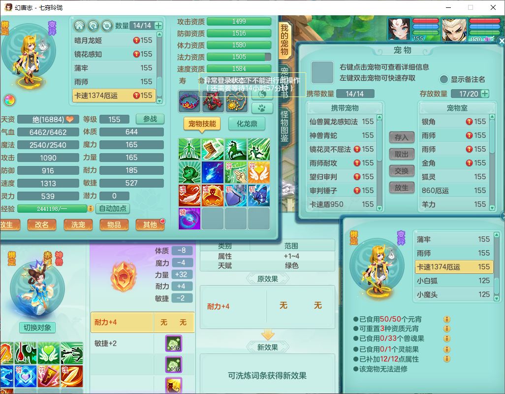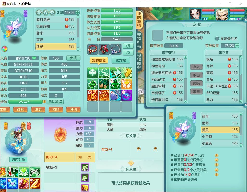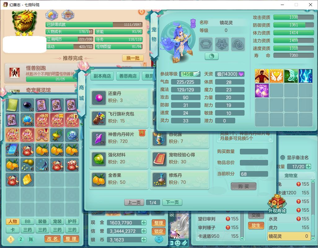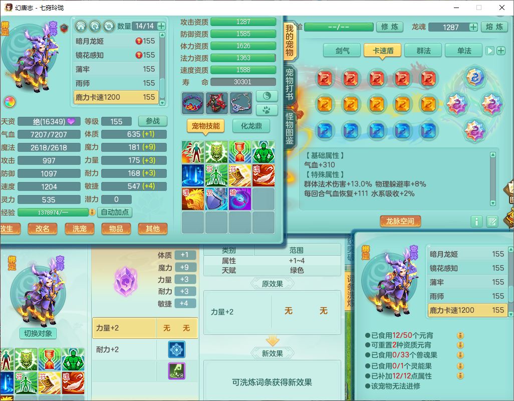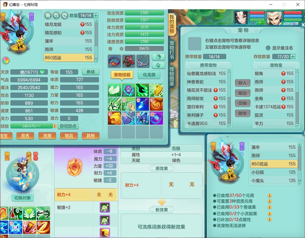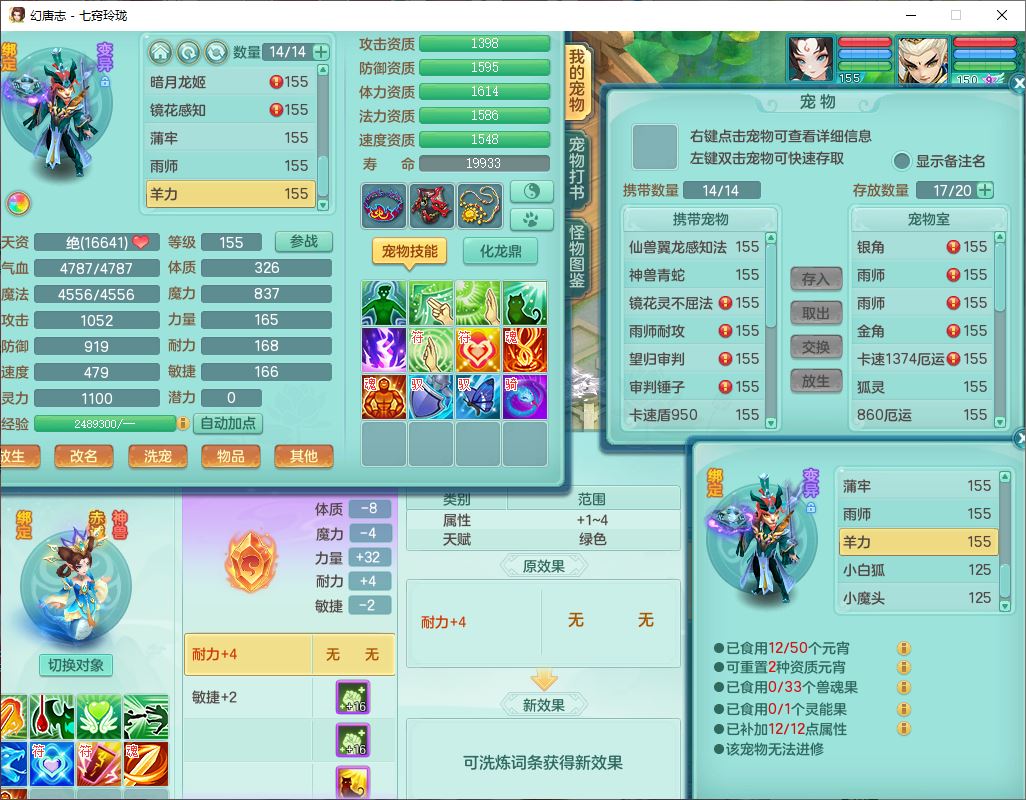 4383七窍玲珑159男天宫精灵舞,2龙(1换,无内)2内(1青蛇)23镜花灵1龙姬,2宠皮12只满果子,7红装备,1950灵力,法爆武器,268Y项链,Y双红腰带,一套辅助愤怒5特,鼎4.5+70+280,2套符石,永久外观,精灵皮肤,飞行双人坐骑
