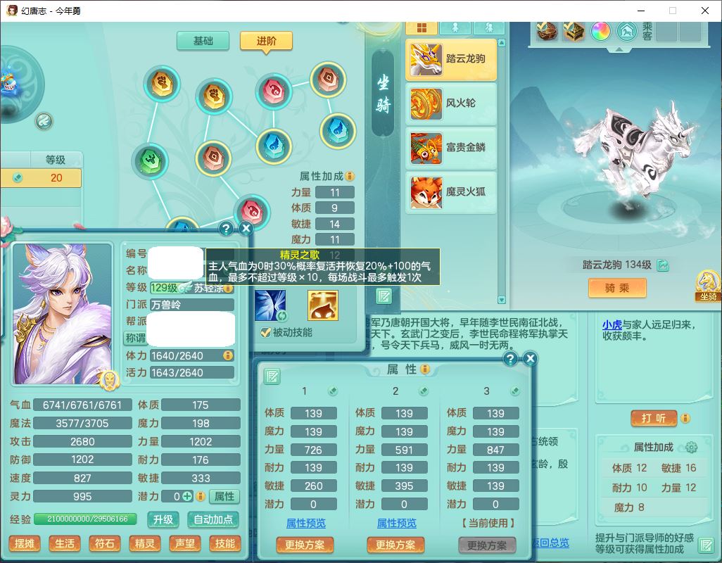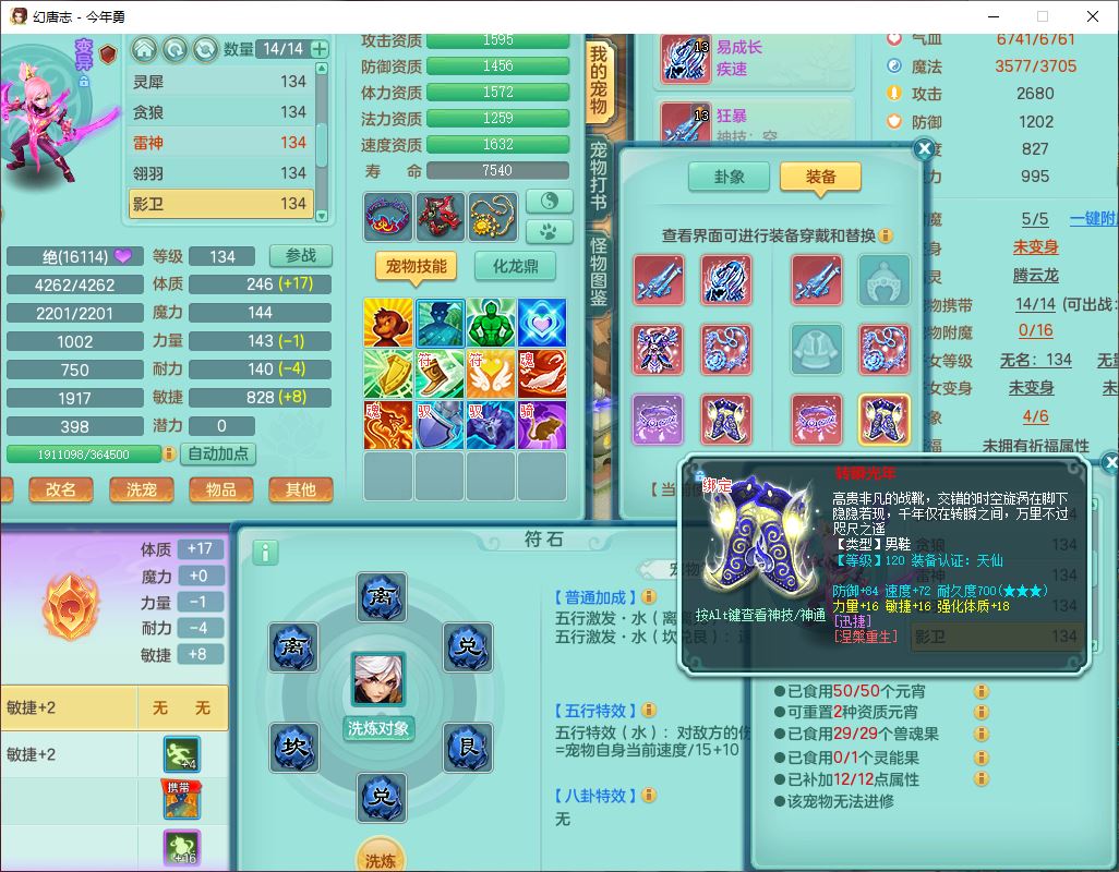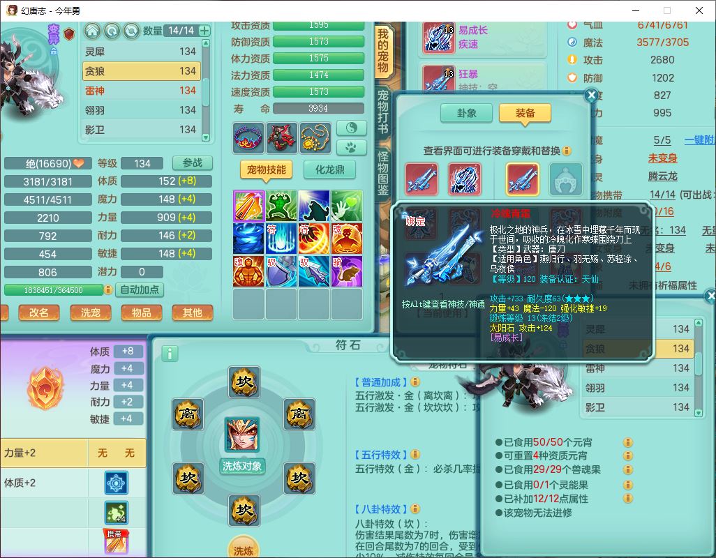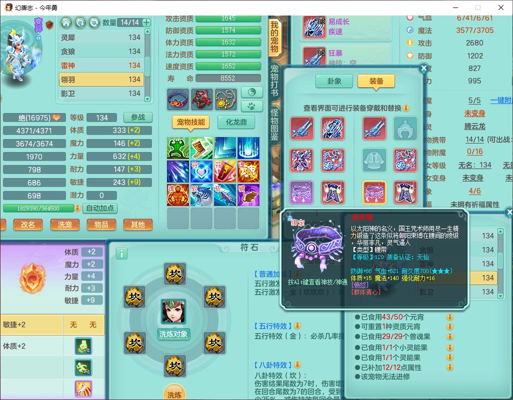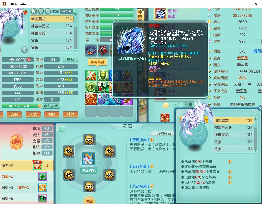 71489WH今年勇129男万兽【潜龙过半】精灵歌,1龙(换)2内(1青蛇),7觉醒9六字1五字7四字17只满果子,7红装备,Y疾速帽子,狂暴武器,崩山衣服,愤怒玉清腰带,Y笑里项链,迅捷慈航鞋子,鼎4.0+56+224,2套符石,庭院143,永久外观、精灵皮肤,1双人坐骑