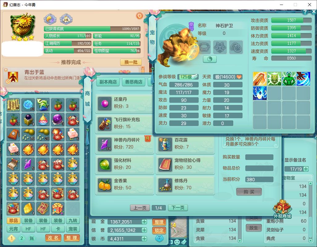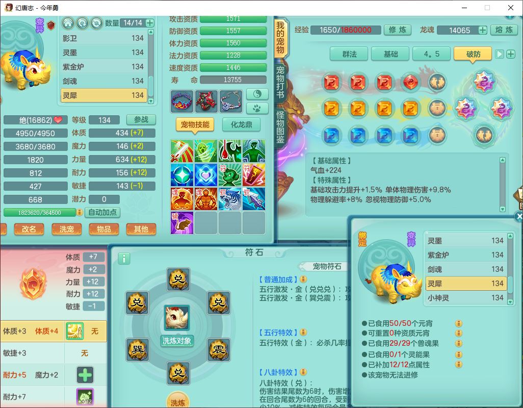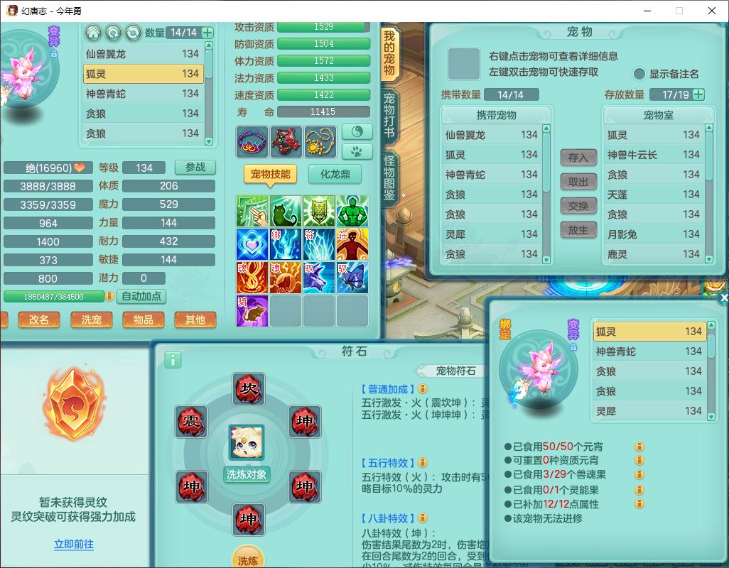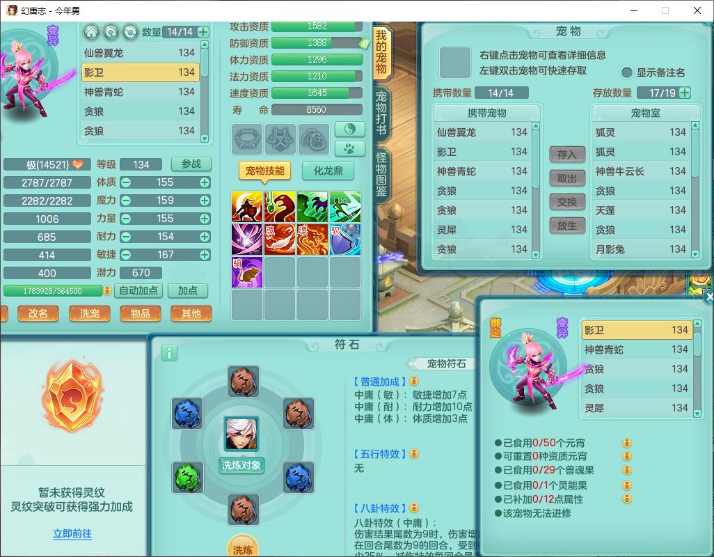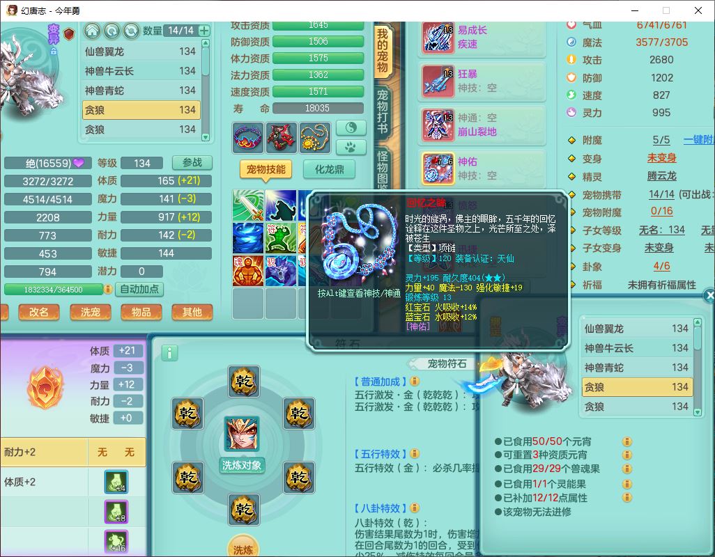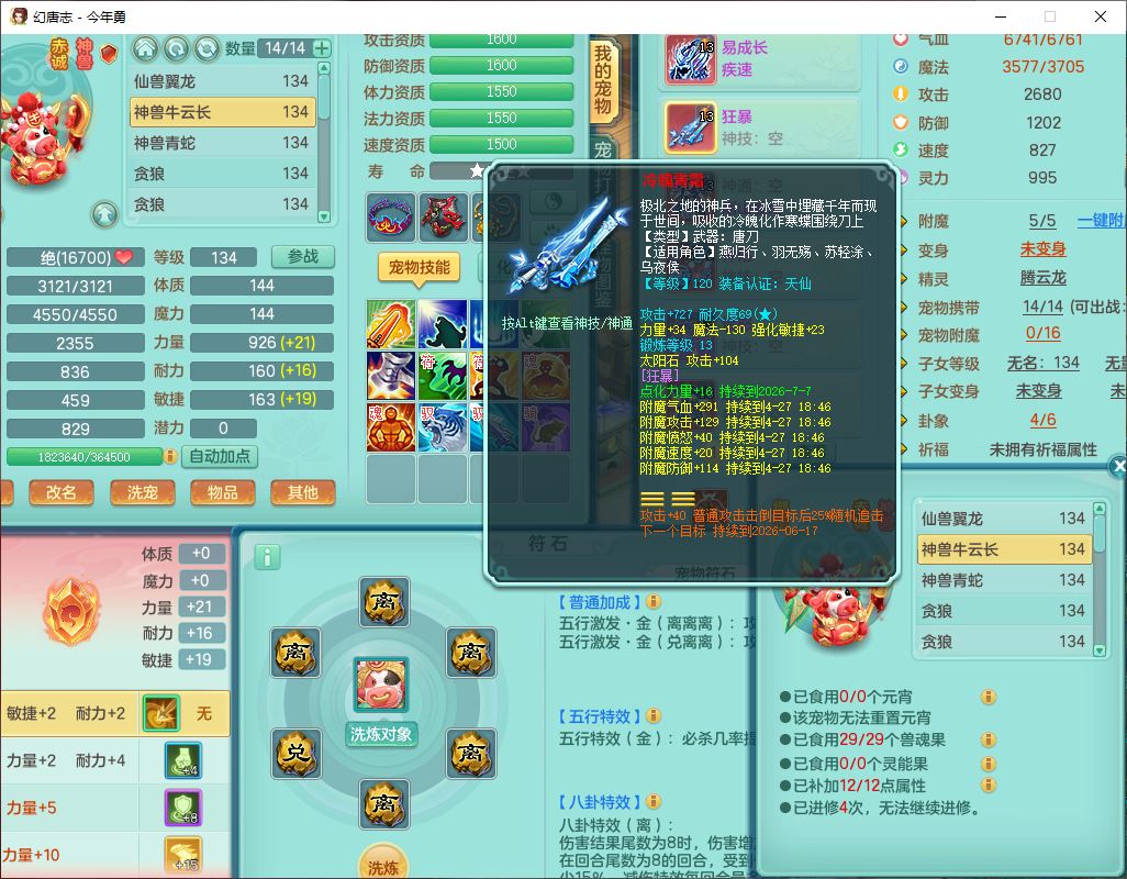 71489WH今年勇129男万兽【潜龙过半】精灵歌,1龙(换)2内(1青蛇),7觉醒9六字1五字7四字17只满果子,7红装备,Y疾速帽子,狂暴武器,崩山衣服,愤怒玉清腰带,Y笑里项链,迅捷慈航鞋子,鼎4.0+56+224,2套符石,庭院143,永久外观、精灵皮肤,1双人坐骑