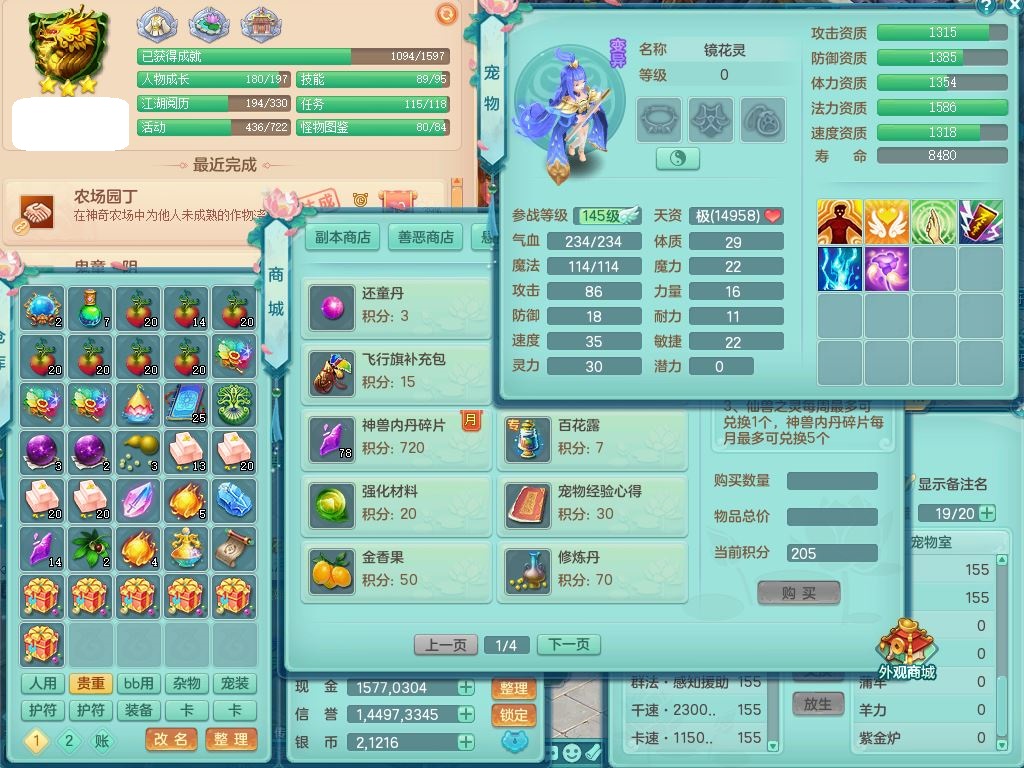 62447,2020区159男万兽【潜龙过半+暴龙泰坦+西瓜冰】精灵歌,4字靓号,8龙(1破境)3内(1青蛇)3镜花1龙姬1五技能虎刀客3宠皮,4觉醒7六字1五字7四字16只满果子,8红装备,Y必杀武器,Y崩山衣服,Y驭兽腰带,鼎5.5+280,51天月卡,庭院154,永久外观饰物、精灵皮肤,14内丹碎片,12437金币,带156女无名,1镜花,155男地府,1镜花3觉醒,8红装备,愤怒驭兽腰带,Y群体守护鞋子,1160金币,155男佛门,1镜花2觉醒