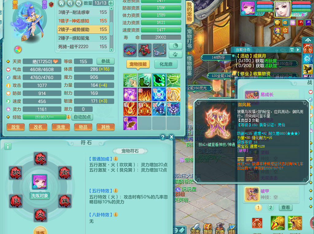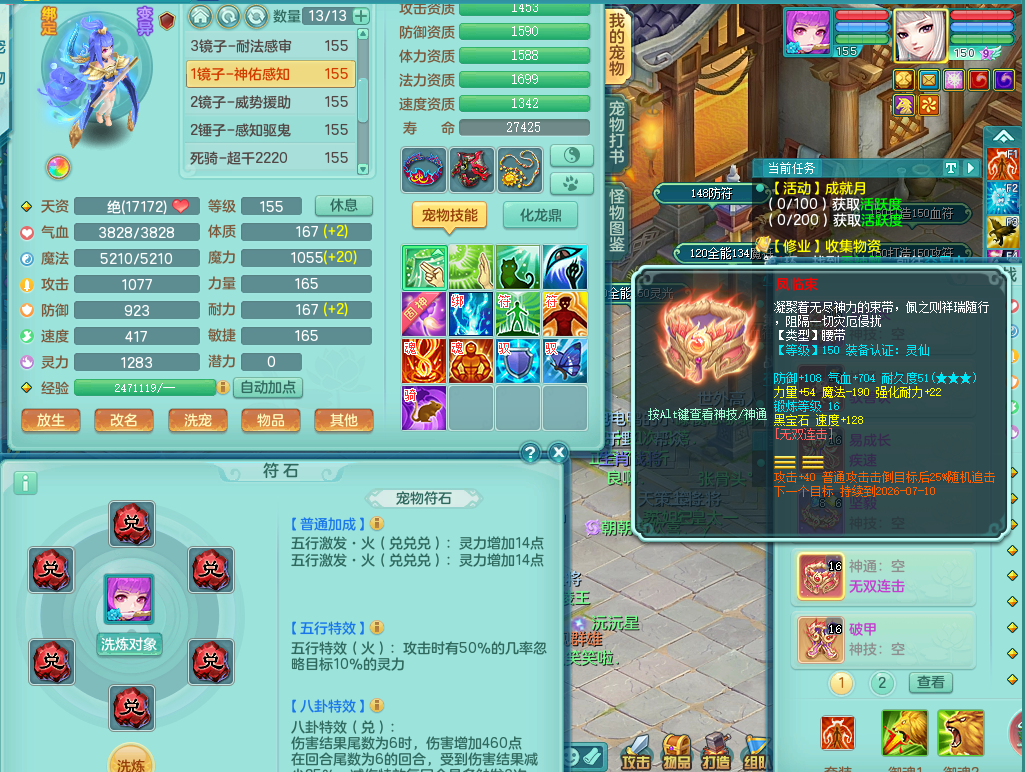 63145,2024区159万兽,1内丹神(存)1金角皮肤,1觉醒1只6字,多四五字,双人舞狮坐骑,基础5.0,法爆7.5,精灵舞,满修满共鸣,易成长头,923攻单加52武器,单加54破血腰带,破甲鞋子,永久头饰背饰,武器皮肤火焰之力,双重认证开启,可换绑