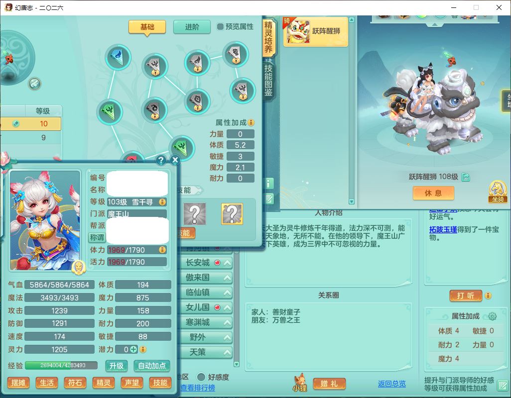 24358,2026区103女魔王体敏魔精灵,1青蛇(无内)1金炉10只成品宝宝,1孩子(天魔),装备齐全,五雷武器,Y疾速衣服,烽火项链,58天月卡,满修炼,有时装头像,仓库多存货,47个内丹碎片,1时装兑换券,1双人坐骑,带双重,战盟可以换绑