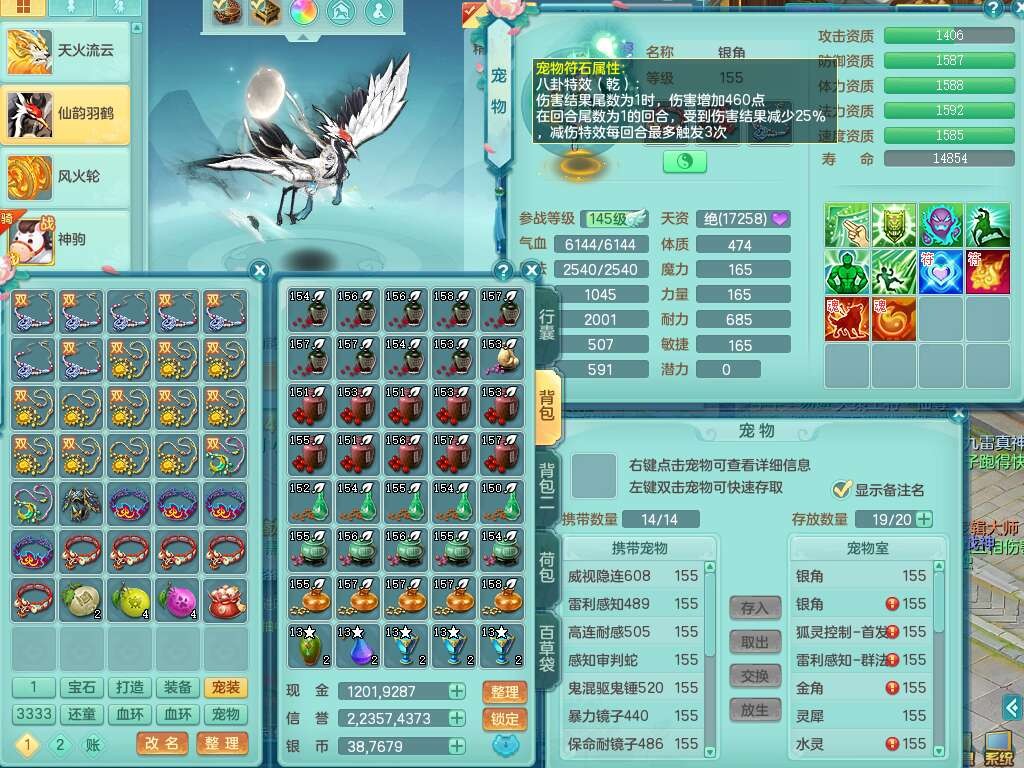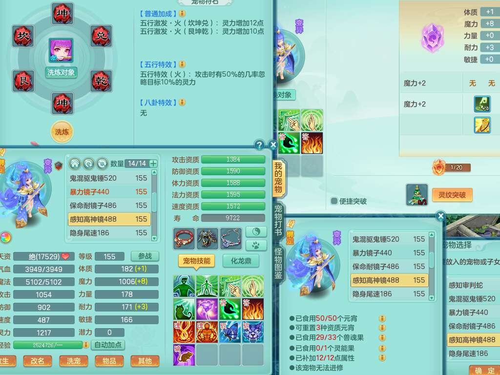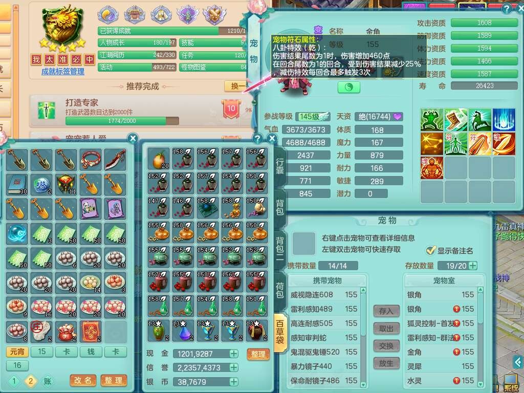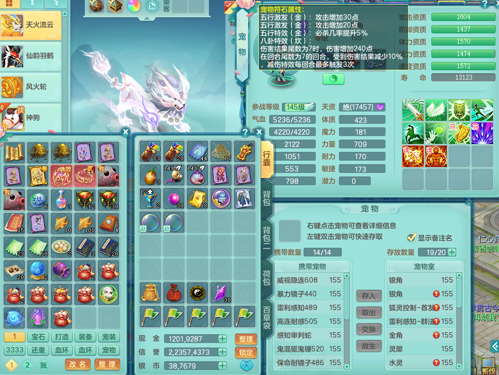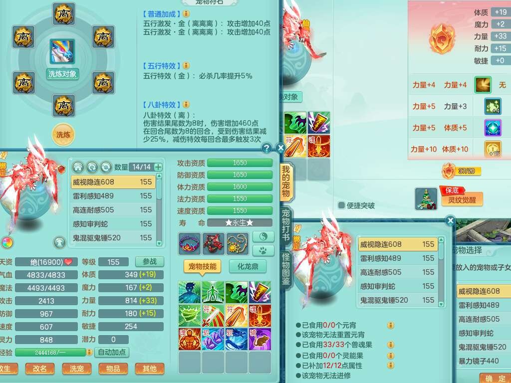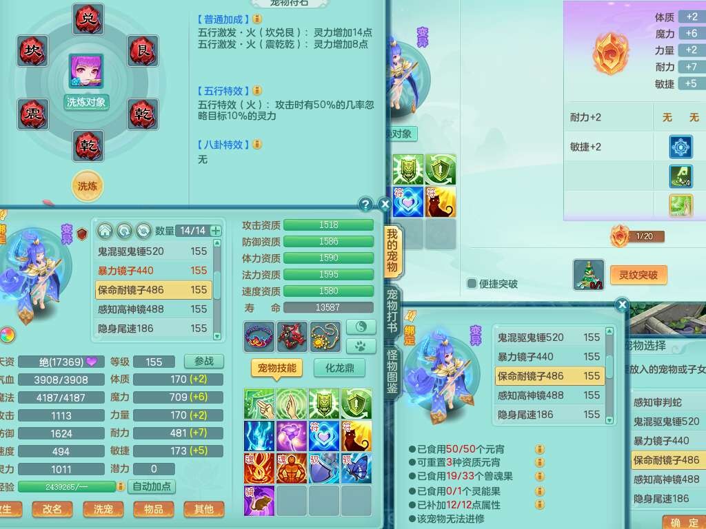 K22428七窍玲珑159男五庄,精灵舞,3龙2内胆神(1马),1神兽蛇+30个神兽内丹碎片,6觉醒(潜龙过半,宝宝6只满足,符石差2个主要,差3个附加属性,化龙鼎差3个厚土龙纹),3只六技能镜花灵,三红匠心封锁移魂大法武器,匠心疾速单加衣服,愤怒易成长单加54腰带,易成长笑里鞋子,六特,6.0基础鼎+70攻,6个纯六字,12只满果子,仓库还有44个果子,成就在榜,双人坐骑,神驹马到成功+火焰之力武器,有129天月卡。