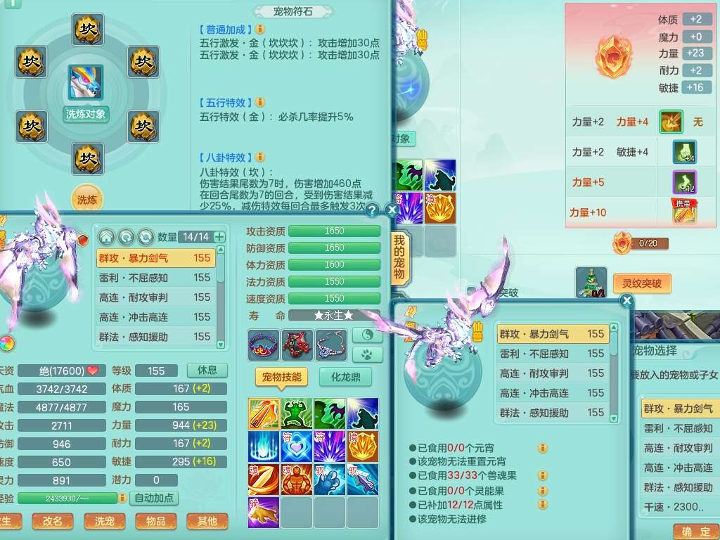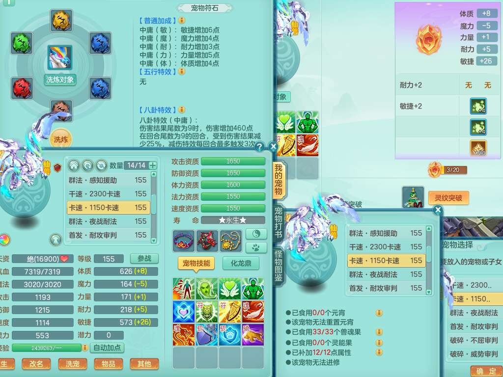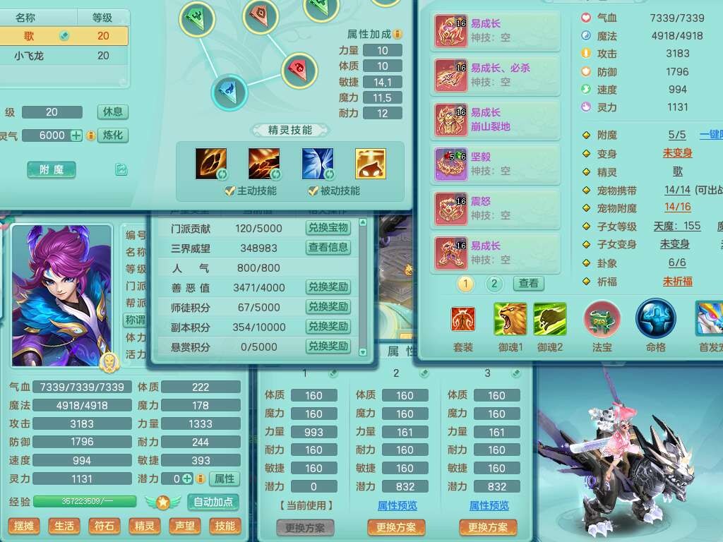 p22421,2020区159男万兽,精灵歌,8龙3内丹神,1破镜,4只觉醒(3只潜龙BB,宠装完全够数,符石差3个主要2个附加,化龙鼎差3个赤炎龙纹),4位靓号,3宠皮,2只六技能镜花灵,易成长崩山衣服,易成长必杀武器,易成长单加56鞋子,5.5基础鼎,7.4法爆,7个纯六字,1个五字,16只满果子,仓库还有141个果子,4个坐骑,暴龙泰坦+西瓜冰武器皮肤。带3个155+奶粉。