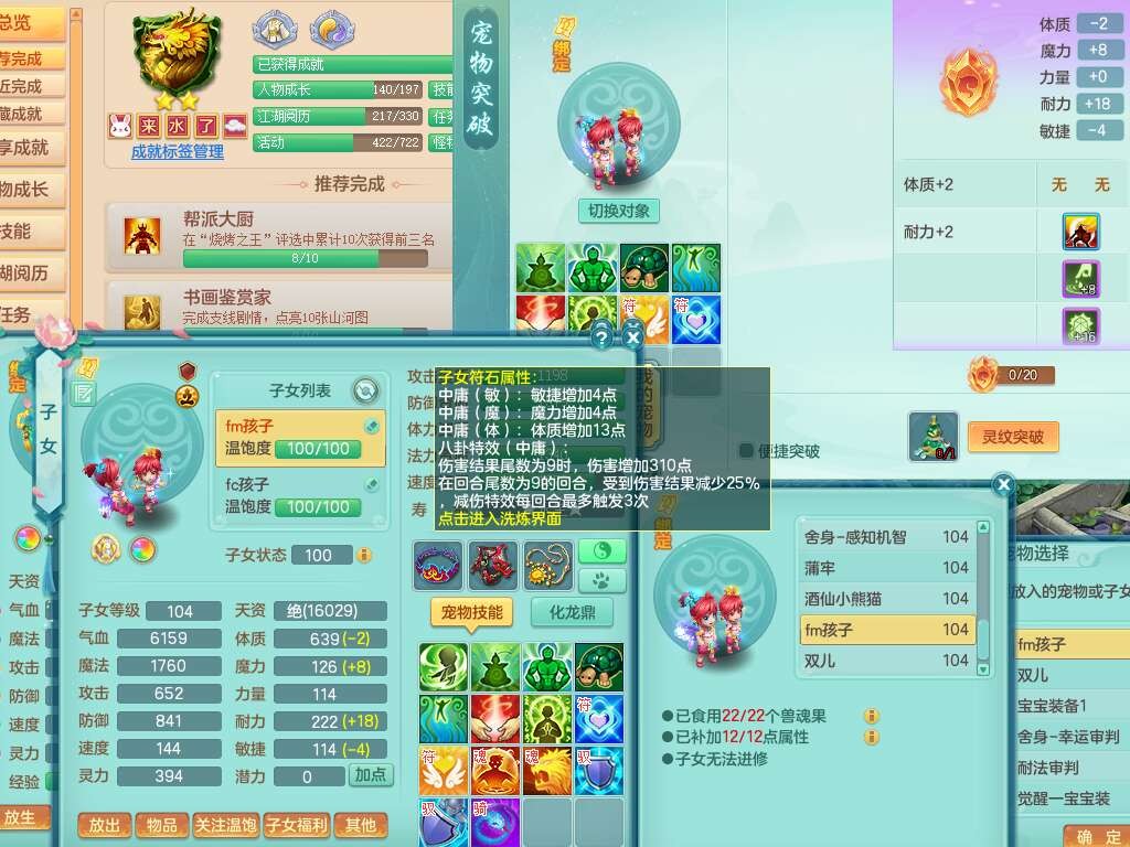 s22422,2023区99男方寸,1内胆神,9觉醒,2宠皮,易成长群体守备单加33武器,愤怒明镜非台腰带,易成长慈航单加32鞋子,五特,物理装备有,551易成长单加30武器,崩山单加衣服,神佑单加链子,法系装备有,法爆单加31武器,161易成长单加链子,匠心五雷衣服,2.5基础鼎+42攻,7个纯六字,1个五字,15只满果子,双人坐骑,有21个仙兽蛋,46个神兽内丹碎片,120天月卡。带1个99奶粉。
