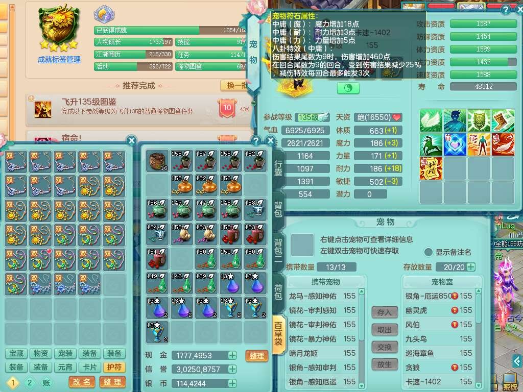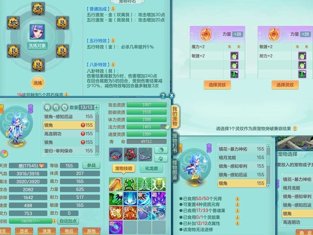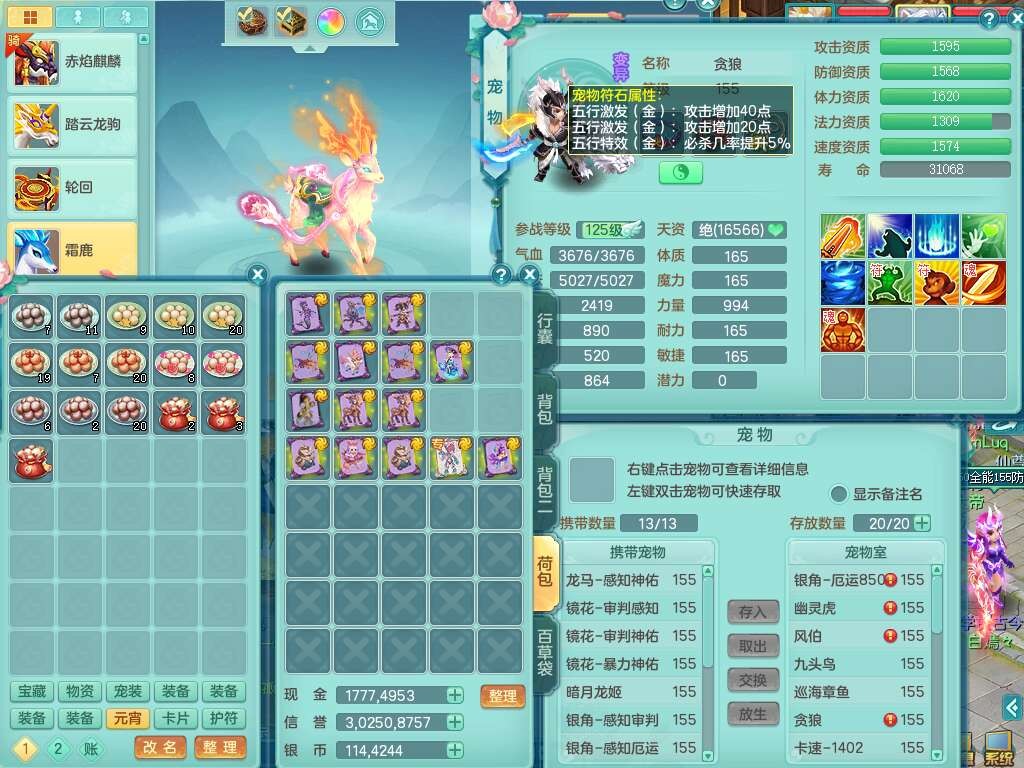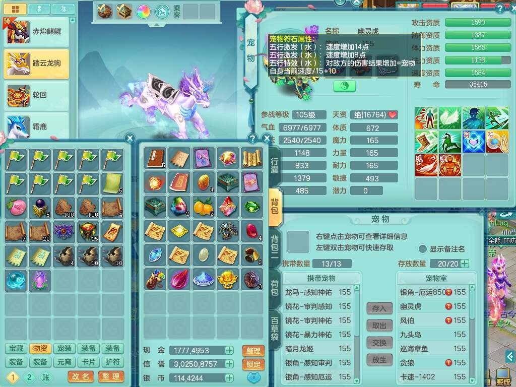 K22417阳春白雪159男魔王,精灵歌,1内胆神,1特殊(虎虎),3只六技能镜花灵,易成长单加51头,五雷单加武器,易成长群体卸甲衣服,262易成长单加50链子,易成长野兽51腰带,有法缭鞋子,274易成长链子,5.0基础鼎,2个五字,5只满果子,2只双人坐骑,有35个神兽内丹碎片,30天月卡。