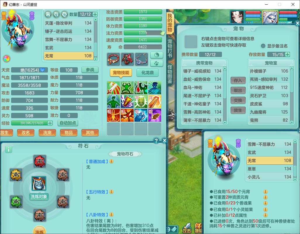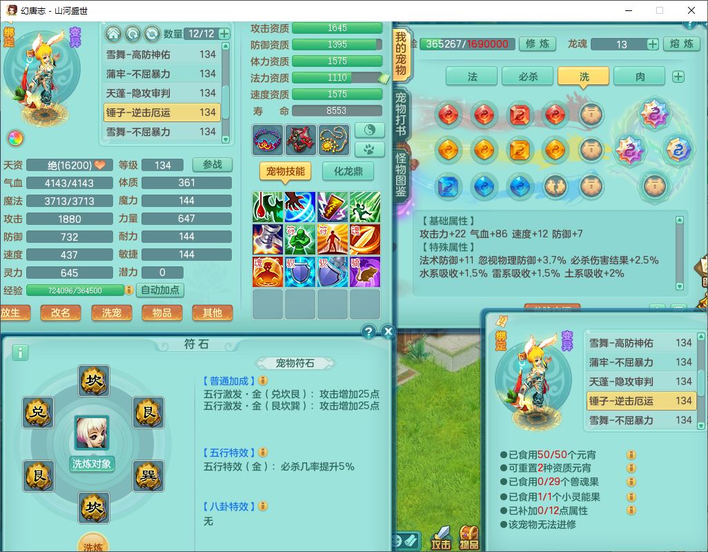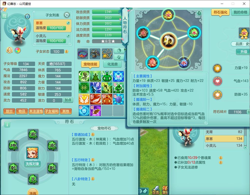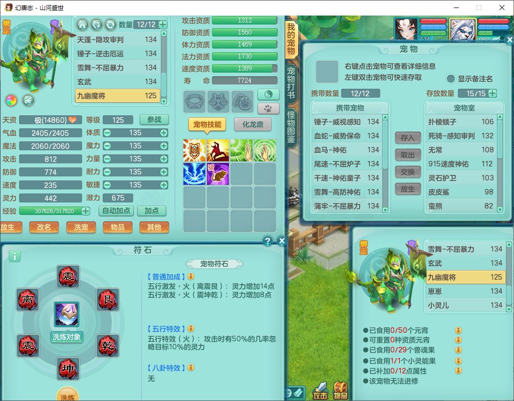 62451山河盛世129男魔王【马上发财+暴龙逍客+火焰之力+西瓜冰】18j小精灵,2内(1青蛇)1龙马(无内)1金炉1童子1九幽,16只成品满高书宝宝,2宠皮2孩子(地府+龙宫),装备齐全,法爆武器,愤怒腰带,Y项链,五雷鞋子,鼎2.5,聚灵五件套,147天月卡,永久背饰、精灵皮肤,仓库多染色、礼包存货,4000多金币,65个内丹碎片