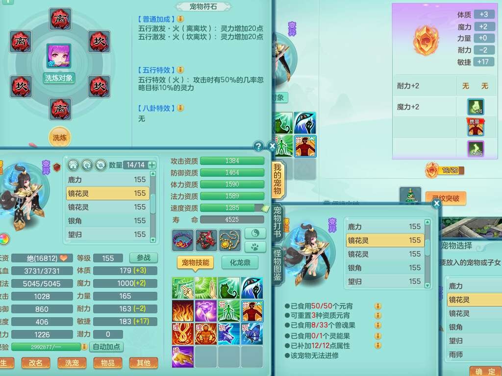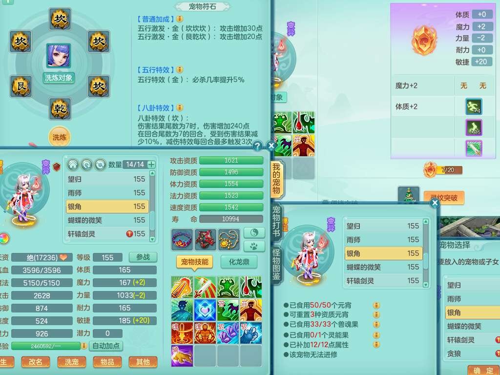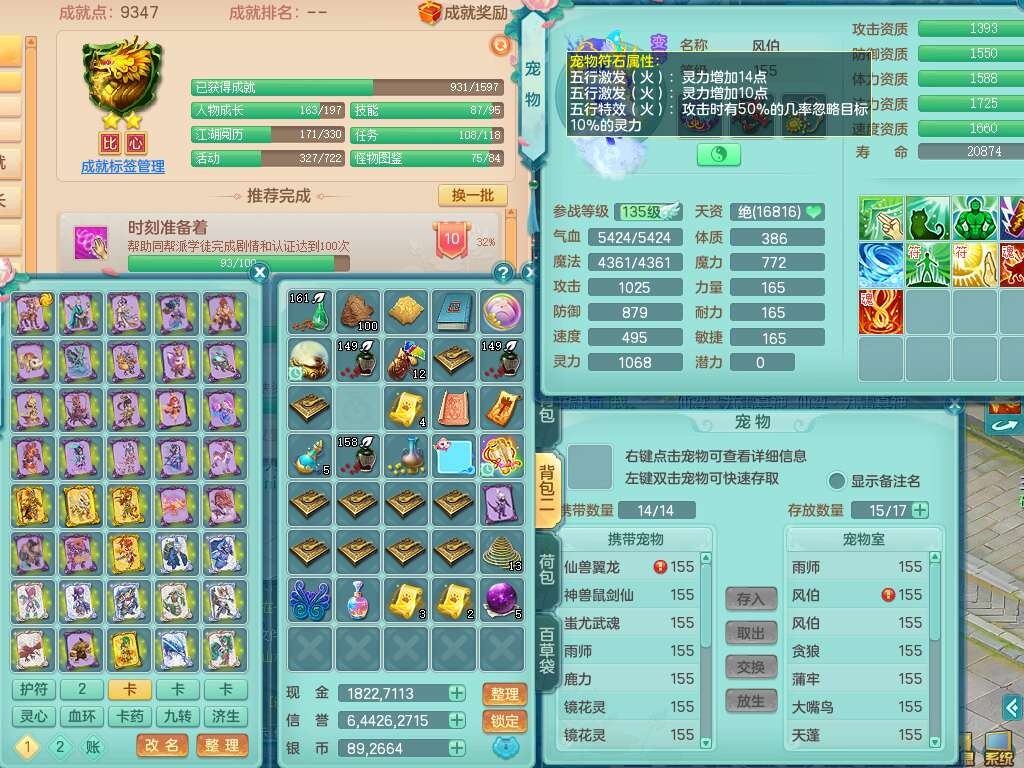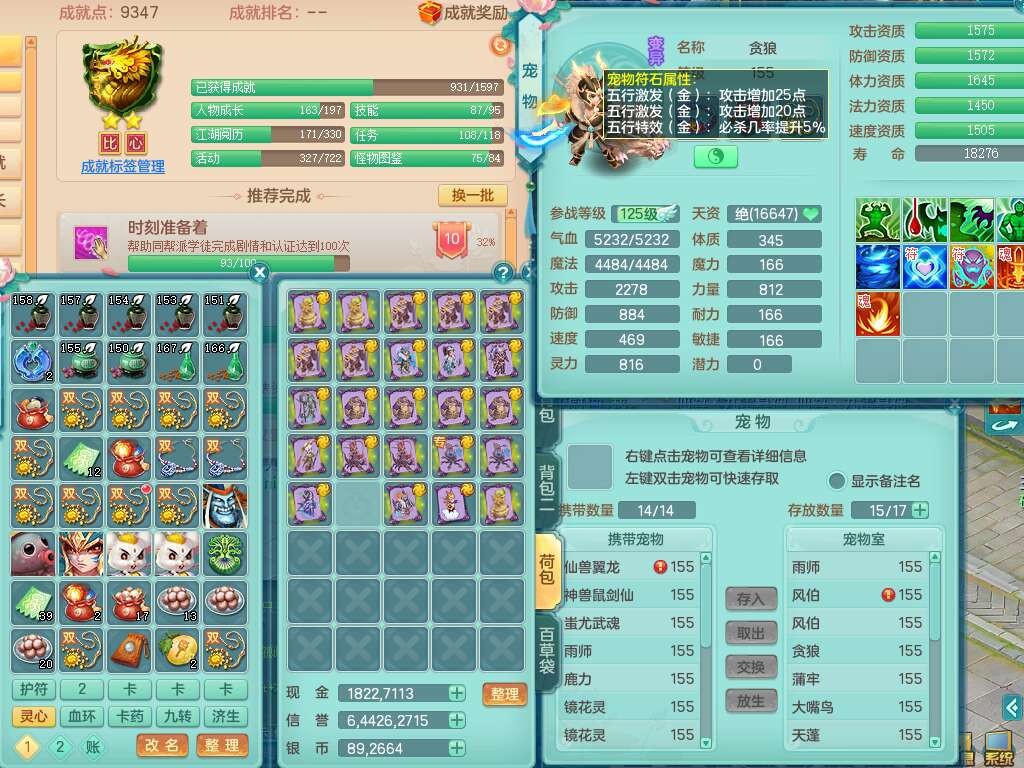 K22435任剑逍遥159男万兽,精灵歌,1龙没内,1内胆神,1只觉醒,2只六技能镜花灵,1只六技能龙姬,923狂暴单加55武器,崩山单加51衣服,愤怒单加56腰带,4.5基础鼎,综合6只满果子,仓库31神兽内胆碎片,山海烛龙坐骑。