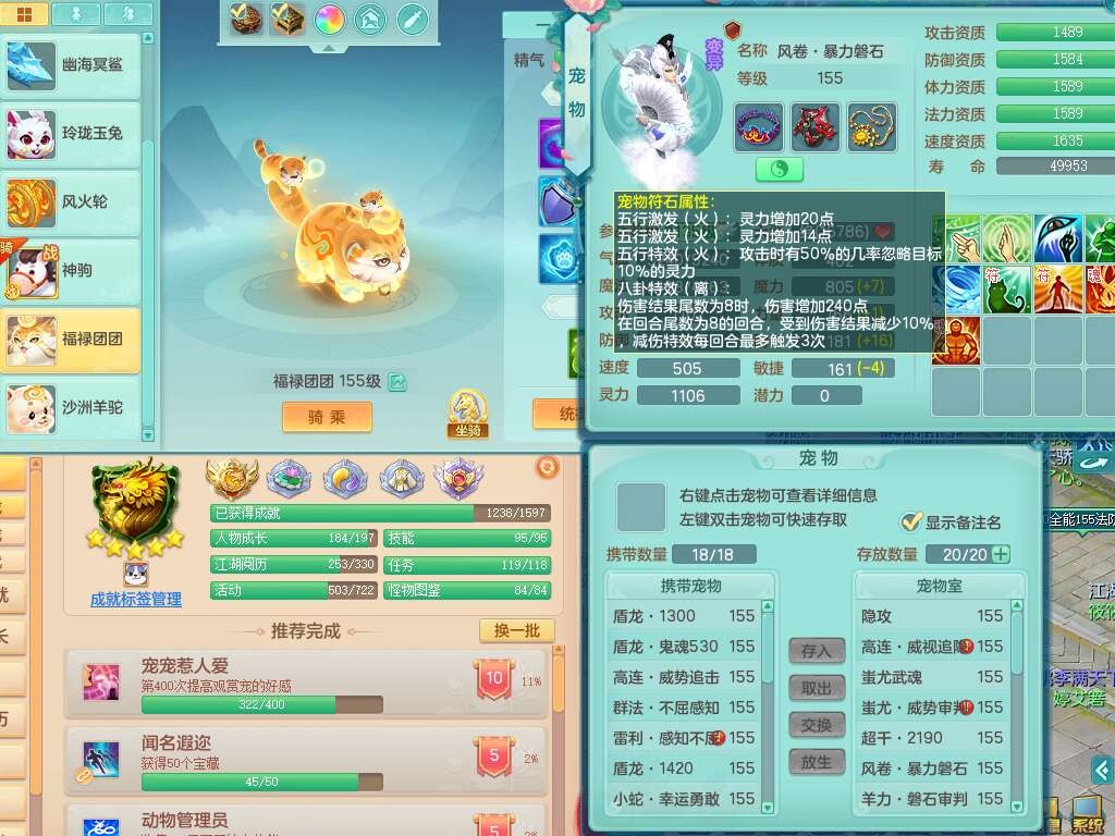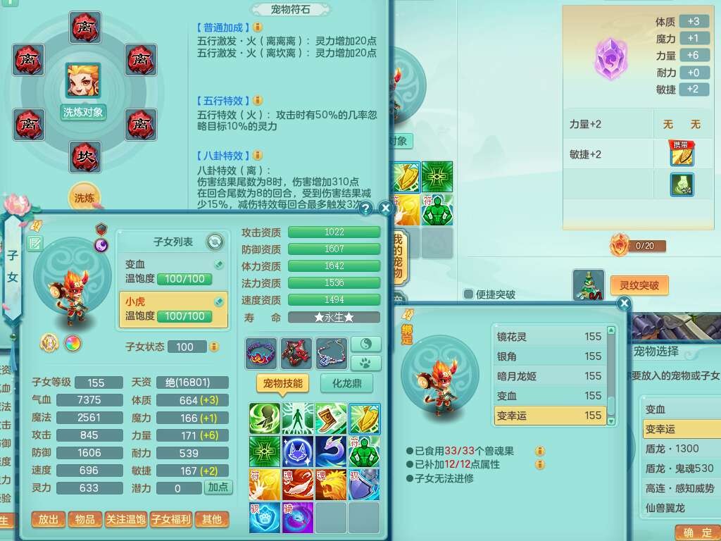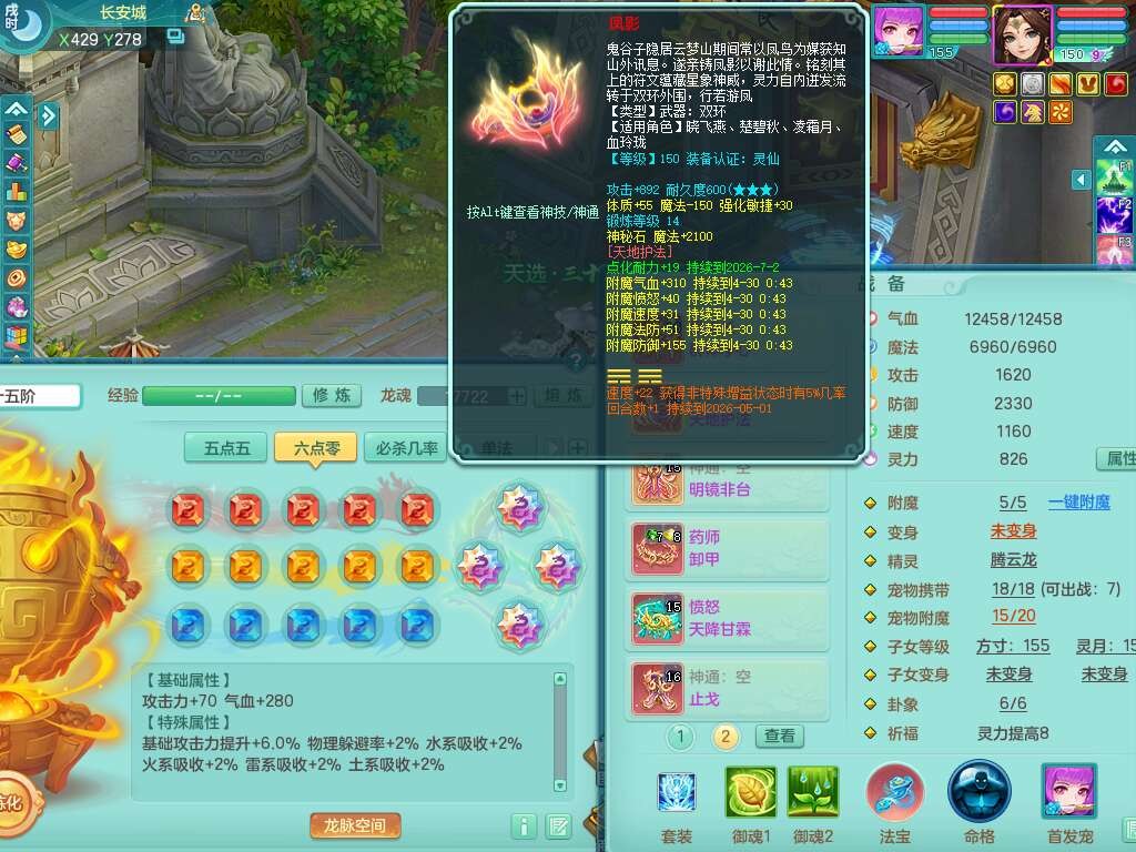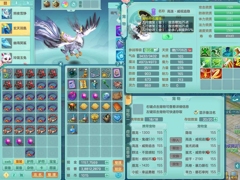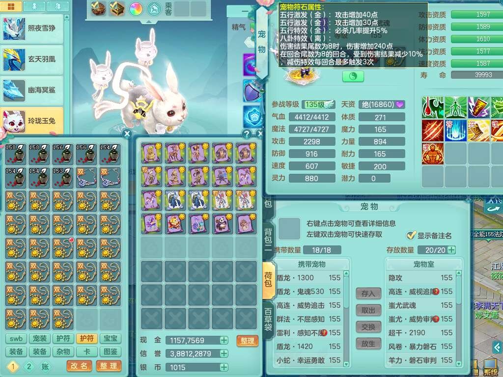 J22436今年勇159女普陀,精灵舞,6内胆龙,准4内胆神(1蛇2马,1神兽龙马+48神兽内胆碎片),3破镜,【9只觉醒,3系潜龙】,1宠皮,2特殊(怒破,灵傀),4只六技能镜花灵,2只六技能龙姬,3只多技能炼妖,愤怒四海腰带,六特,有回春群体守备武器,格挡单加51衣服,物理双破甲,破甲头,破甲五雷单加55鞋子,919易成长野兽单加53武器,崩山衣服、神佑项链全单加,6.0基础鼎+70攻+280血,15个永久格子,10个纯六字,4个五字,25只满果子,仓库还有33个果子,经验修炼成就在榜,永久称谓,4个孩子,7只坐骑,神驹马上发财+火焰之力,带112天月卡。