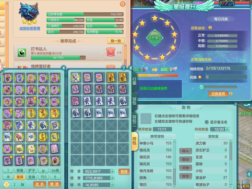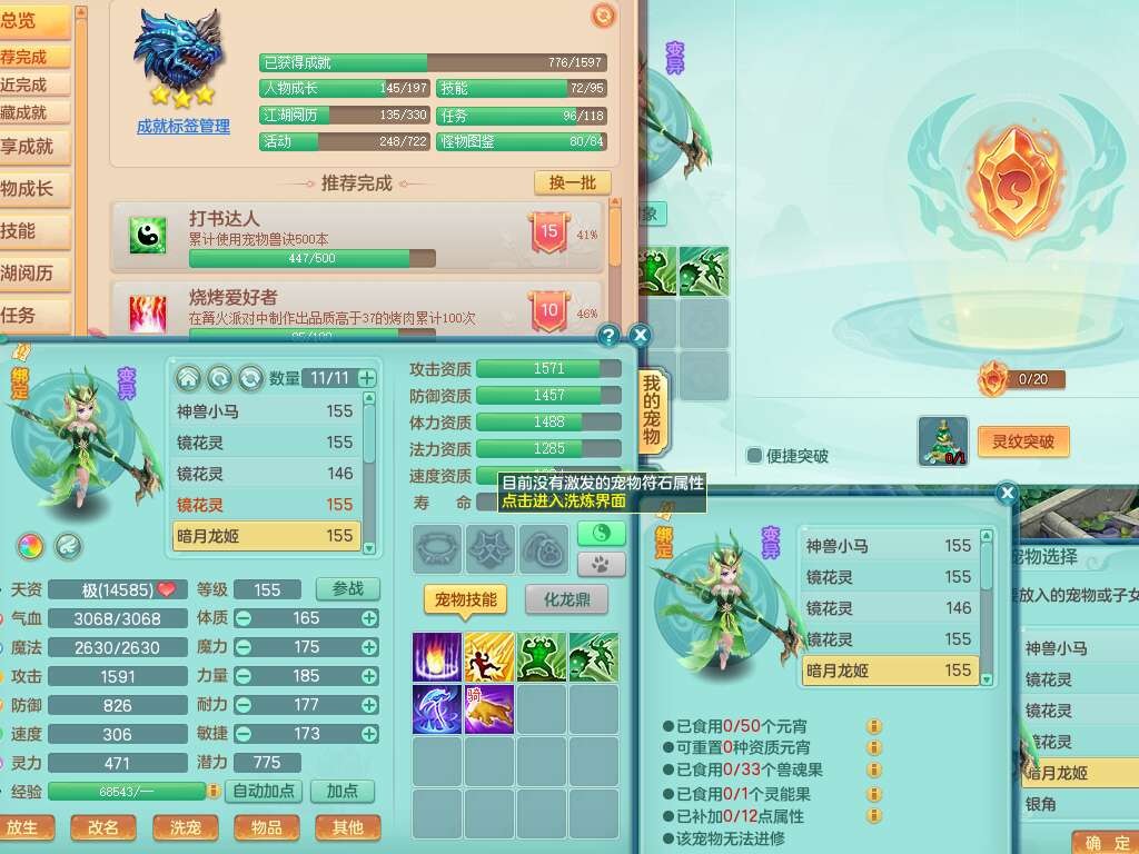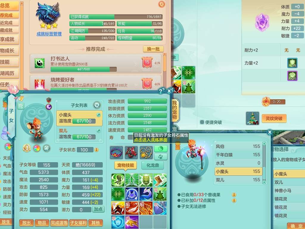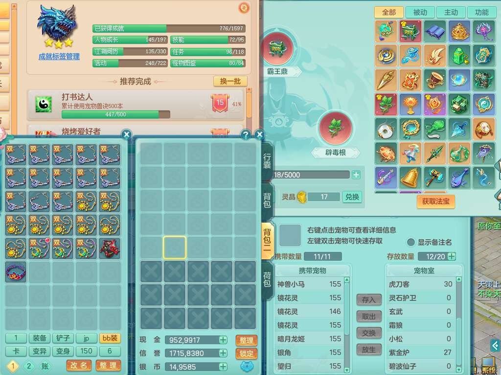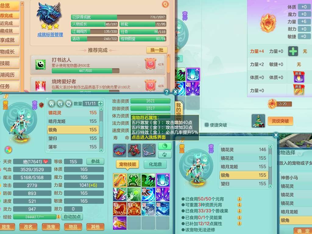 K22434锦绣河山159男万兽,精灵舞,1神兽,1破镜,1觉醒,2只六技能镜花灵,易成长崩山单加57头,893狂暴易成长单加武器,易成长慈航单加头,易成长单加55链子,易成长单加51腰带,易成长单加51鞋子,有917必杀武器,4.5基础鼎,1个五字,1只满果子,有31个神兽内丹碎片。➕159男无量,1神兽,1觉醒,1只六技能镜花灵,回春四海武器,坚毅净心术单加50链子,愤怒五特,带1280金币。➕155男龙宫,1只六技能镜花灵。➕157男方寸,4.5基础鼎。