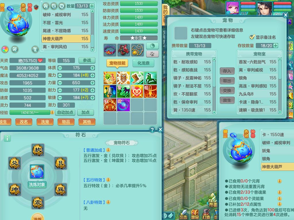 jt10486九天揽月159男普陀精灵歌,满级共鸣,1内丹神,4特殊(翻江/羽袭/号角/堕天兽决)3镜花,10只满果子6觉醒7个纯6字,愤怒5特,鼎5.0+70,32天月卡,庭院153房屋151,28仙兽灵,25内丹碎片,双人坐骑
