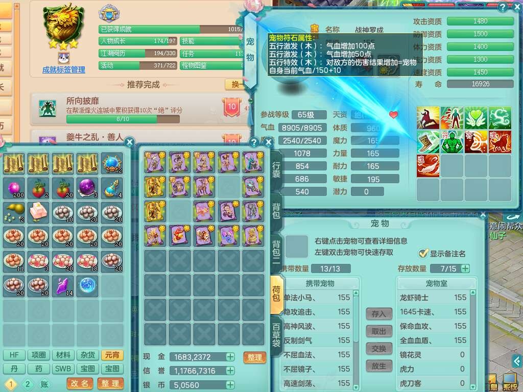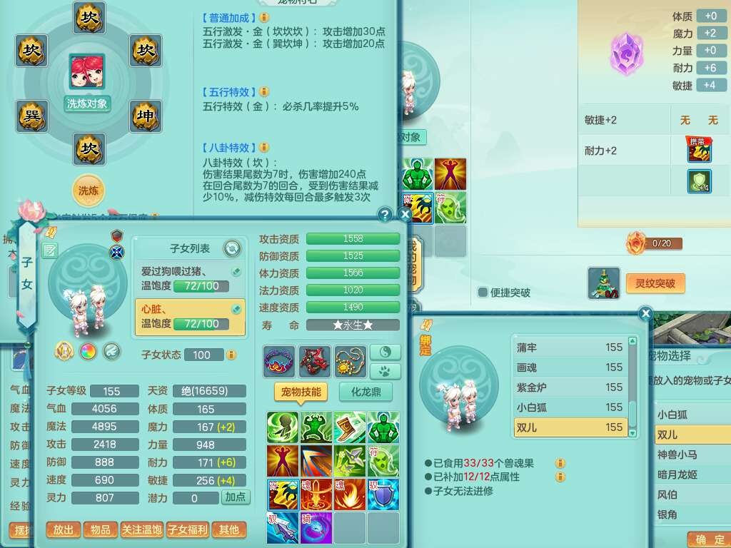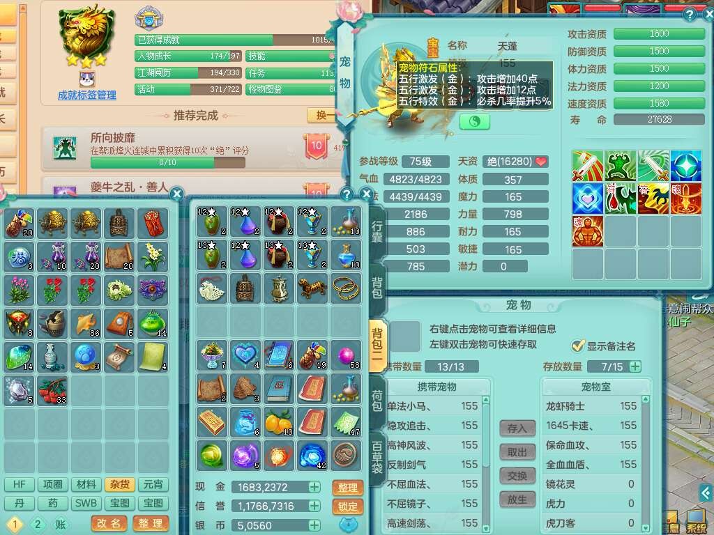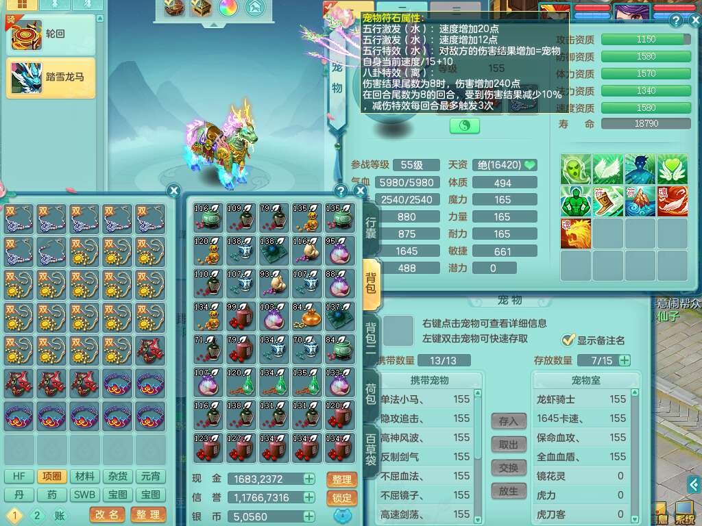 K22445花好月圆159女地府,1神兽马,2觉醒,1特殊(流星),1只六技能龙姬,易成长卸甲单加50头,易成长笑里单加衣服,易成长四海单加链子,愤怒易成长腰带,易成长明镜非台,五特,1个纯六字,3只满果子。