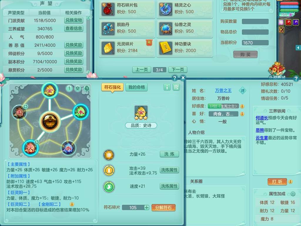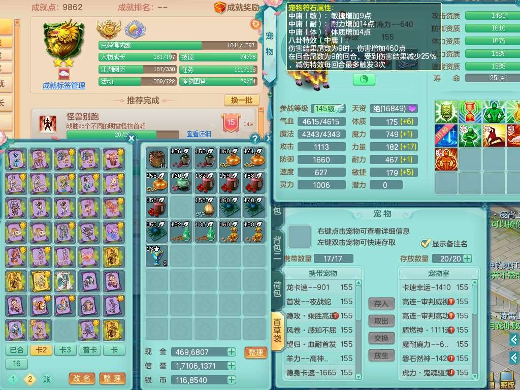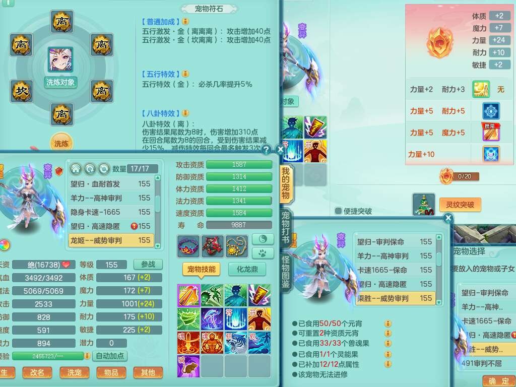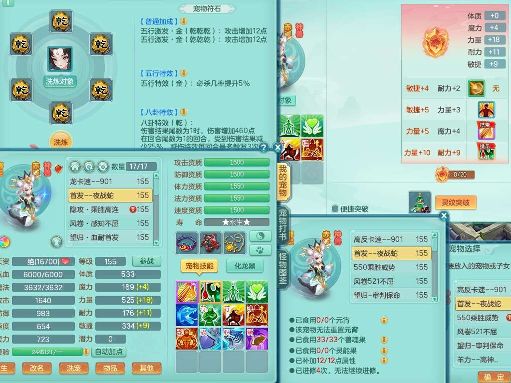 A22447今年勇159男天宫,精灵歌,1龙2内胆神,1破镜,【15只觉醒,已潜龙】,5宠皮,2特殊(善恶,雷厉),6只六技能镜子,2只六技能龙姬,爆炸物理装备,双破甲,破甲头,破甲单加55鞋子,三红神器18段928匠心易成长必杀单加武器,崩山单加51衣服,神佑单加56项链,有易成长野兽单加56鞋子,格挡玉清衣服,迅捷四海鞋子,法缭仙衣云裳单加鞋子,5.5基础鼎,15个永久格子,9个纯六字,3个五字,综合27只满果子,宠排在榜,3个双人,暴龙逍客+西瓜冰,有安全证书,介意勿扰。