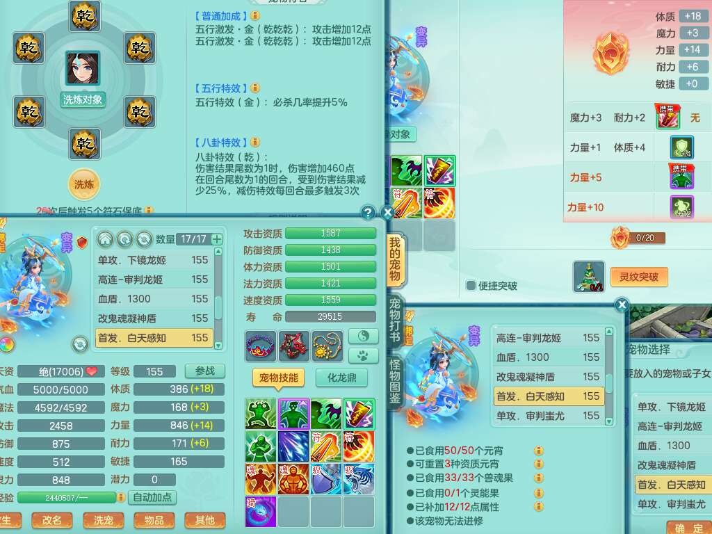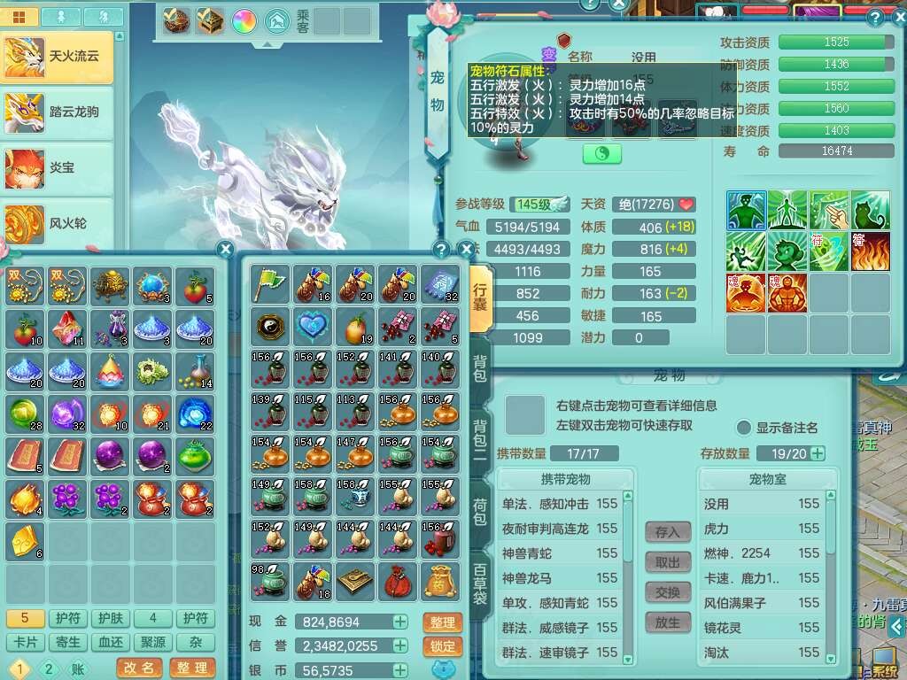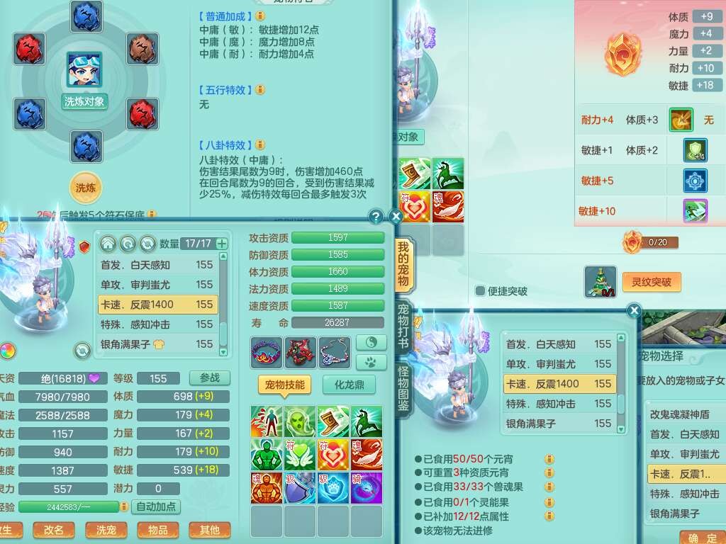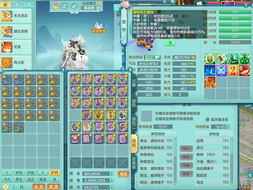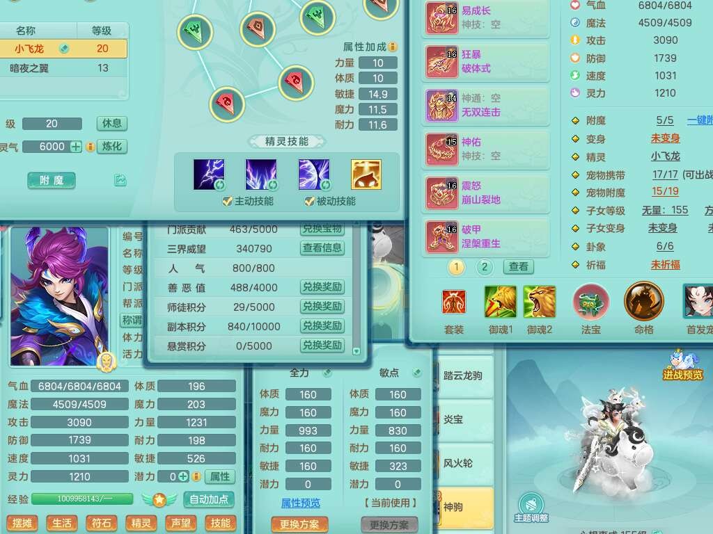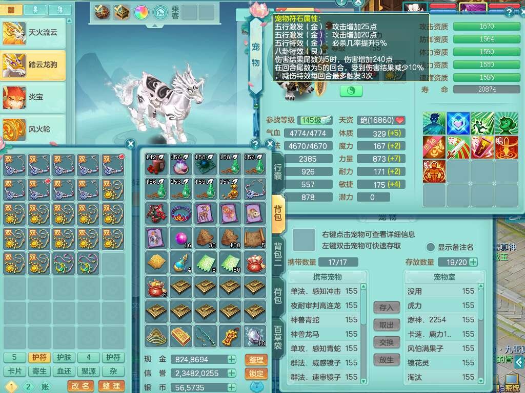 a22444九天揽月159男万兽,精灵歌,2龙2内胆神蛇,1神兽马+53个神兽内丹碎片,8觉醒(准潜龙,符石差5个主要,1个附加属性),4位靓号,4宠皮,5特殊(灵傀,逆龙,号角,流星,虎虎),3只六技能镜花灵,1只六技能龙姬,易成长单加53头,904狂暴破体式单加武器,神佑单加链子,震怒崩山单加腰带,破甲慈航单加56鞋子,5.5基础鼎+70攻+280血,差171换15个永久格子,7个纯六字,2个五字,23只满果子,宠排在榜,永久称谓,2只双人坐骑,神驹心想事成+火焰之力武器,带133天月卡。带2个150奶粉。