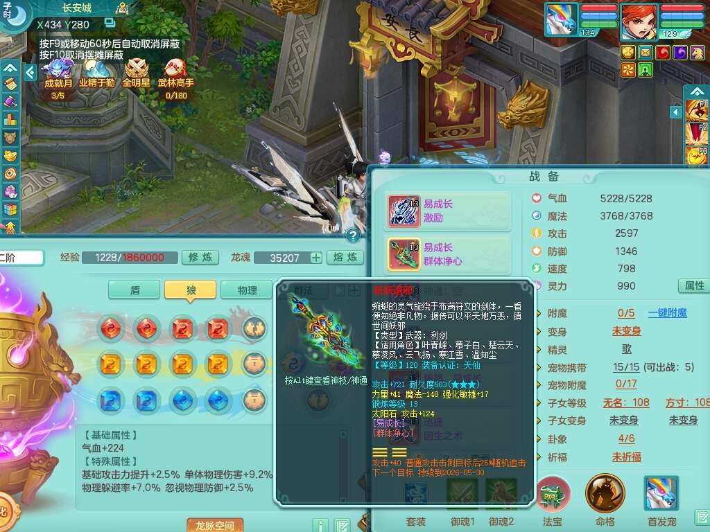 K22433七窍玲珑129男天策,精灵歌 +舞,6龙3内胆神(2蛇),【10觉醒,已潜龙】,4位靓号,6宠皮,易成长野兽单加44头,721易成长晶清单加41武器,崩山单加衣服,神佑破血单加46链子,愤怒易成长腰带,迅捷回生之术单加46鞋子,有212易成长单加43链子,4.0基础鼎+56攻+224血,13个永久格子,17个纯六字,1个五字,28只满果子,仓库还有64个果子,宠排在榜,3只双人坐骑,暴龙泰坦+西瓜冰武器,带14514金币,640w神武币。➕129女盘丝,1神兽马。