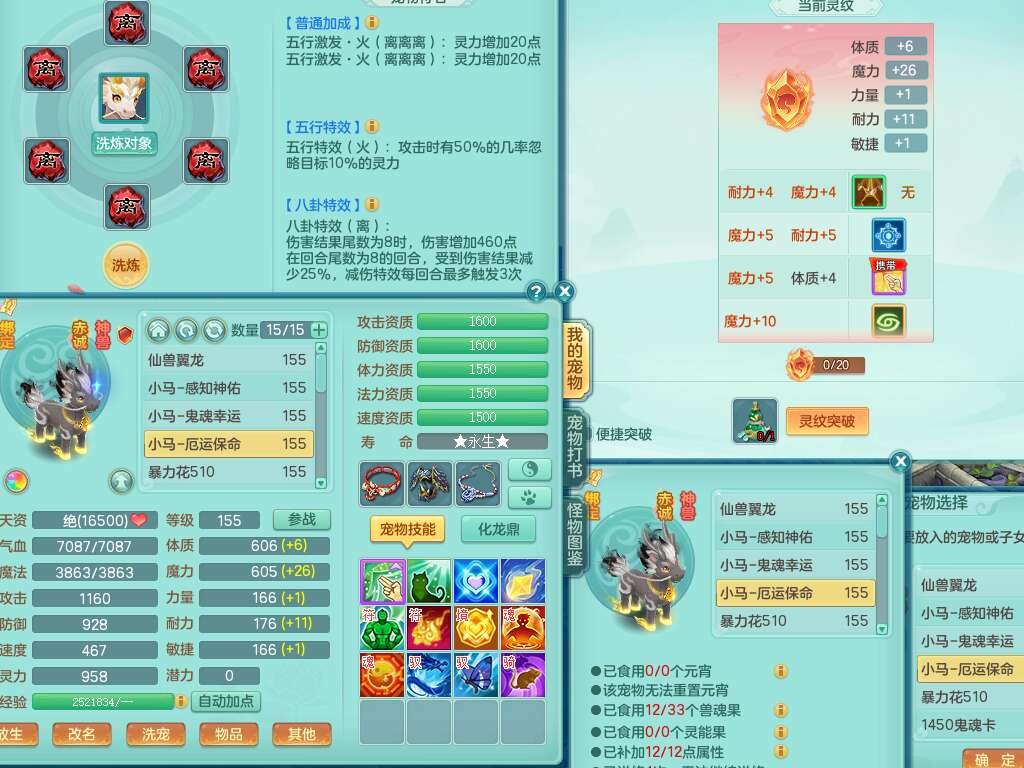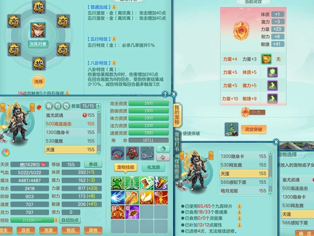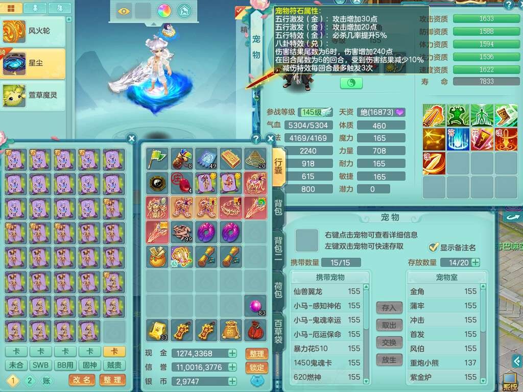p22430浪淘沙159男普陀,精灵歌,1龙没内,1内胆神马,3破镜,2神兽马+33个神兽内丹碎片,6觉醒,1特殊(善恶),1只六技能镜花灵,愤怒玉清腰带,易成长魔音摄心单加鞋子,六特,12红,5.5基础鼎,4个纯六字,7只满果子,带160天月卡。