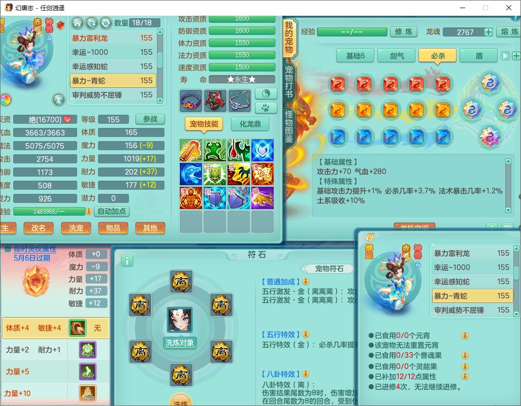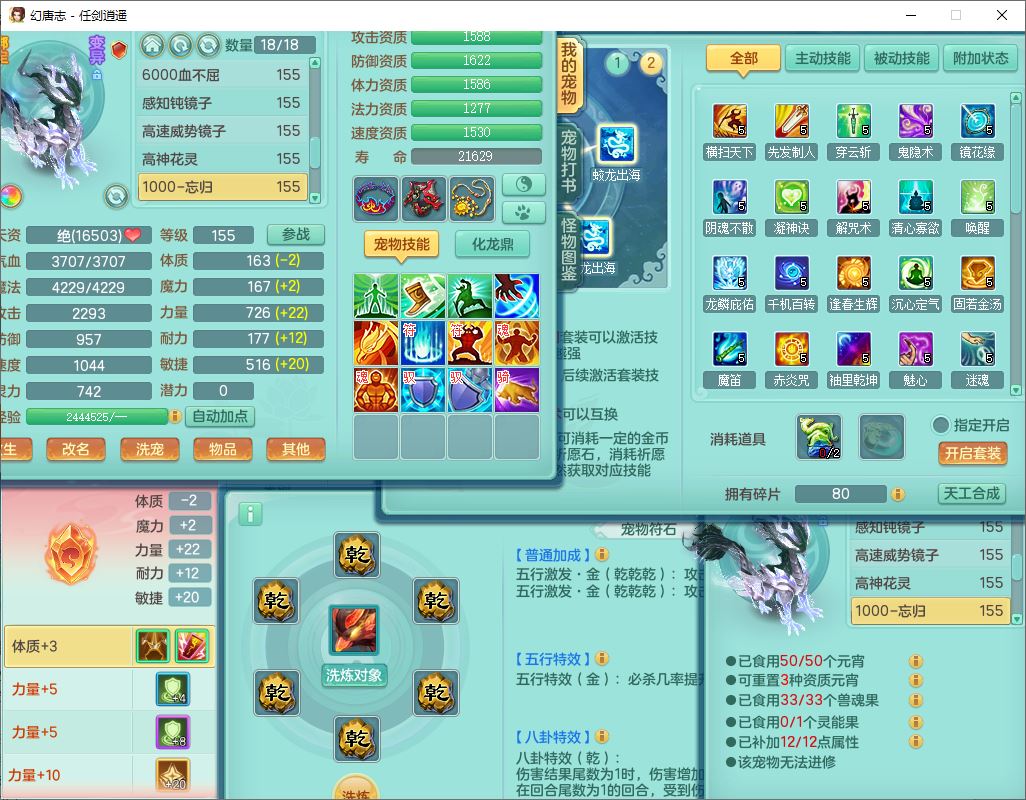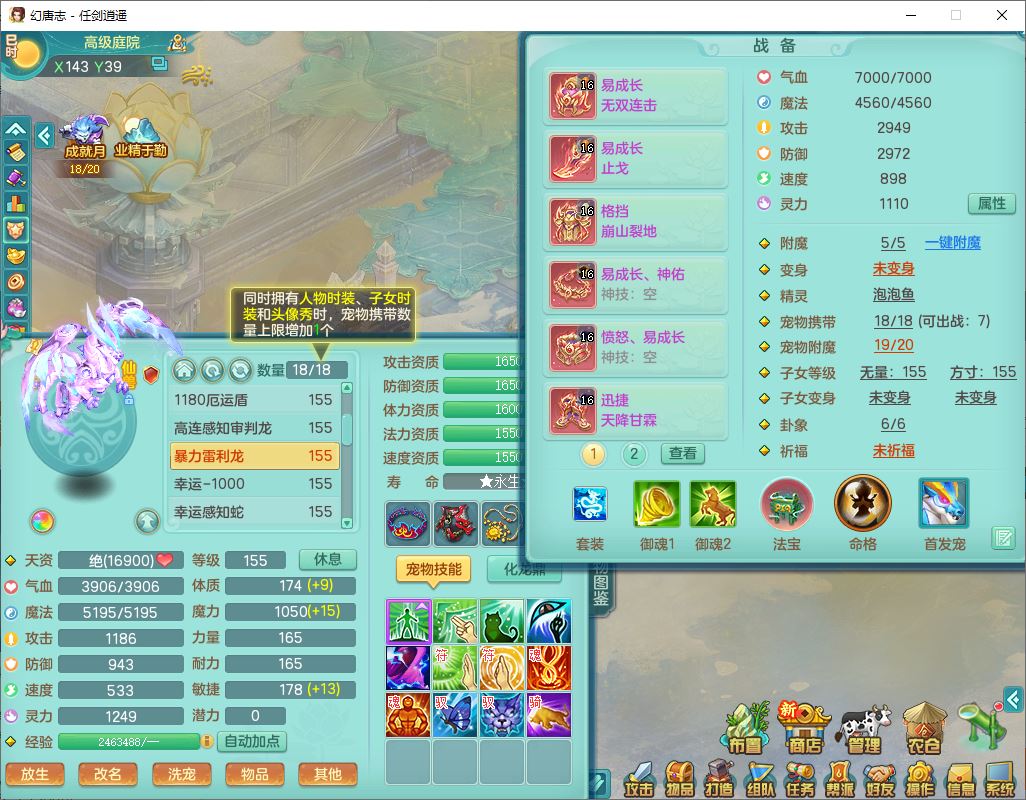 52703任剑逍遥159男天策【潜龙号】精灵歌,2套星穹,8龙(1换,1破境)3内(2青蛇)3镜花2望归2龙姬3.特殊(影袭/兽决风卷/双星),25觉醒7宠皮20六字(1洗练珠)1五字1四字26只满果子,18格子,12红装备,Y破血头,Y止戈武器,格挡崩山衣服,Y神佑项链,愤怒Y腰带,迅捷四海鞋,单加法爆四灵武器,鼎6.0+70+280,冰晶庭院190房屋194,永久外观精灵皮肤,宠排在榜,1时装兑换券,1飞行双人坐骑