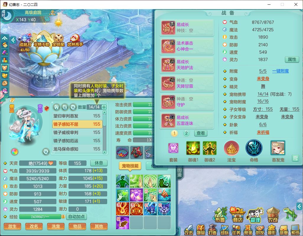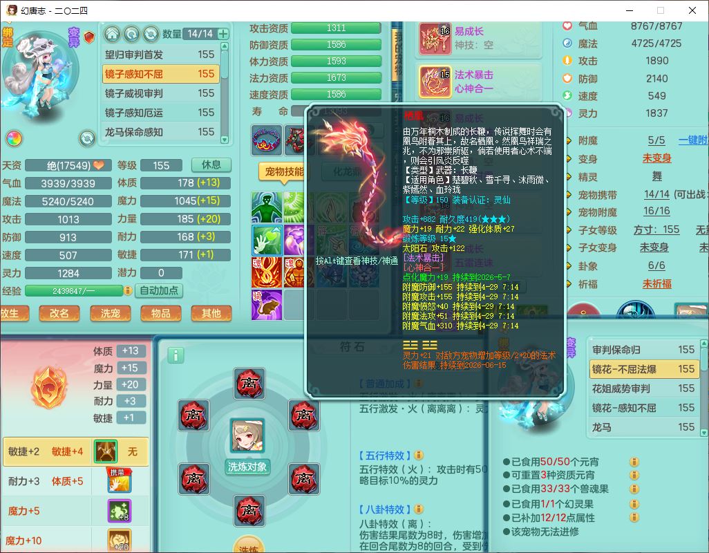 62454,2024区159女魔王【潜龙+心想事成+火焰之力+西瓜冰】精灵舞,5位靓号,3龙(2破境)3内(1青蛇1龙马,3破境)1望归3镜花1金炉1龙姬,11觉醒11宠皮(2幻灵果)8六字25字14四字17只满果子,9红装备,法爆心神武器,Y罗汉衣服,Y五雷鞋子,可出星辰之拥物理装,破甲明镜鞋子,狂暴群体迟滞武器,鼎5.5+70+280,163天月卡,,冰晶庭院156,永久外观精灵皮肤,47个仙兽灵,1仙兽内丹,3坐骑(1双人飞行)