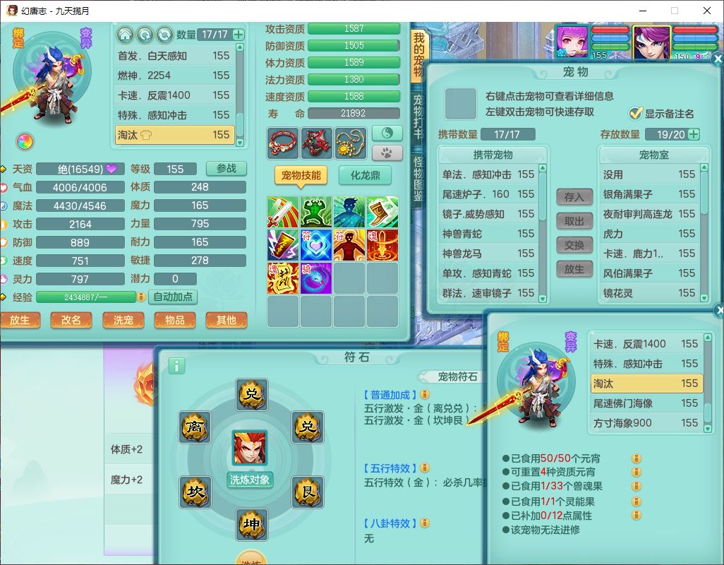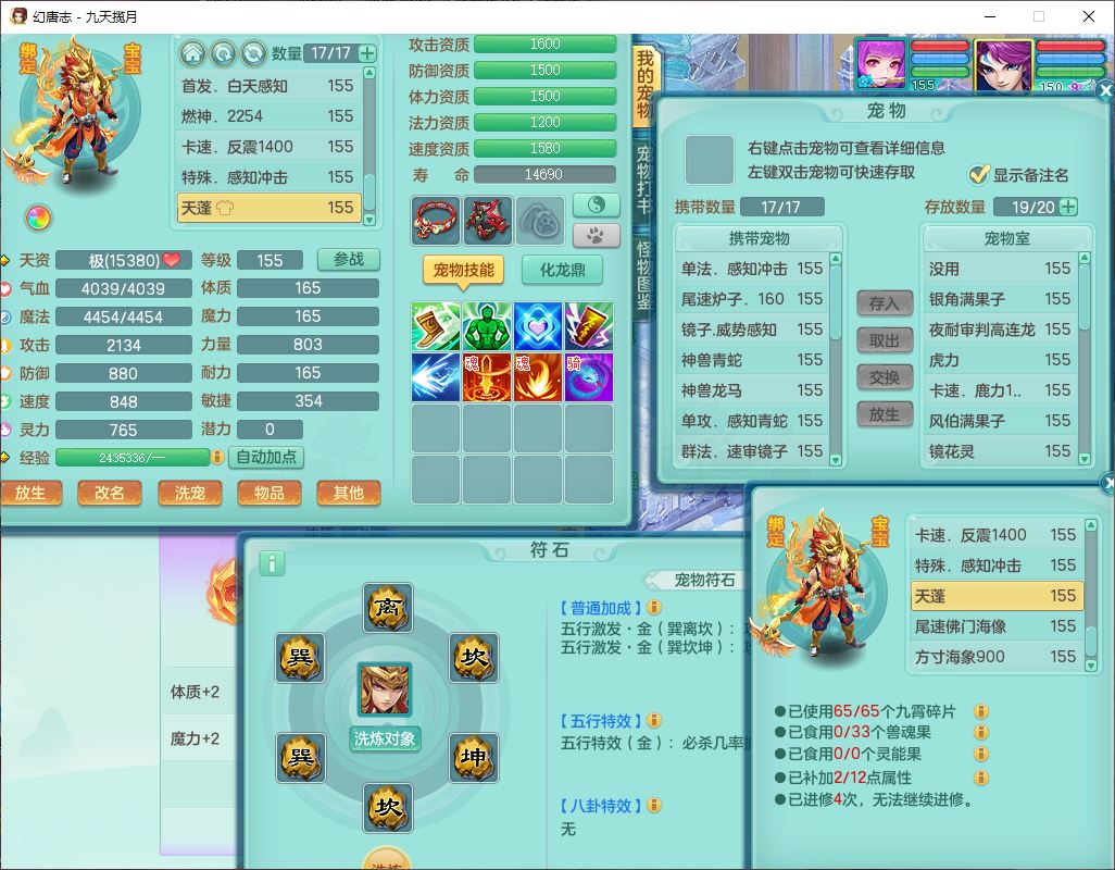 24368九天揽月159男万兽【心想事成+火焰之力+准潜龙号,差5条主符石1条附加】精灵歌,4位靓号,2龙(1换)2内丹青蛇1龙马(无内)2龙姬4镜花5特殊(战争、流星、虎虎,兽决灵傀、逆龙)1金炉,8觉醒4宠皮7六字1五字5四字23只满果子,9红全单加星辰之拥装备,狂暴破体武器,震怒崩山腰带,破甲慈航鞋子,有辅助装,愤怒腰带,Y激励帽子,鼎5.5+70+280,2套符石,133天月卡,冰晶庭院165房屋152,永久外观、精灵皮肤,53个内丹碎片,5坐骑(2双人),带2个150奶粉