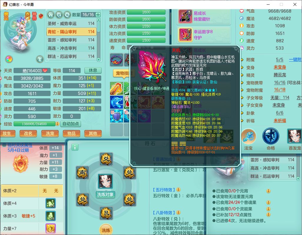24366今年勇109男灵月【准潜龙号,差1只宝宝1条附加】精灵舞,4位靓号,4龙(换)3内(1青蛇)1建木1羽袭1金炉,10觉醒1宠皮7六字1五字9四字22只满果子,11红装备,Y笑里帽子,幸运守护武器,Y四海衣服,愤怒慈航腰带,迅捷晶清鞋子,Y卸甲鞋子,鼎3.0+42+168,39天月卡,永久外观、精灵皮肤,1仙兽内丹,59个内丹碎片,7坐骑(2双人飞行)