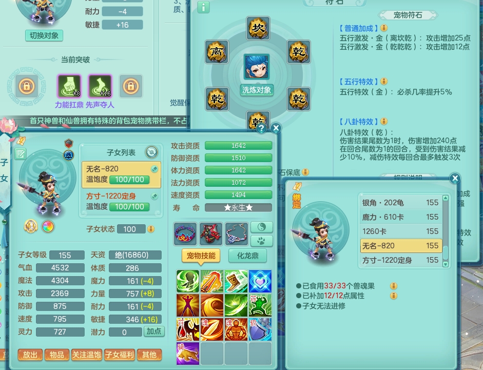 sn9107 少年游 159 男 万兽 8位靓号 神佑激励项链 愤怒崩山腰带 暴龙坐骑 精灵歌 5.0化龙鼎 17宠物格子 4龙3内 1内神+40神兽碎片 7皮肤+2幻灵果 4镜子 11觉醒 11个真6字 23+满果子 满星穹 2980邮箱