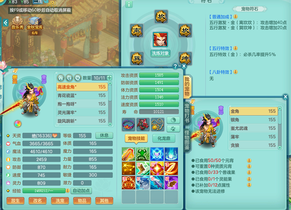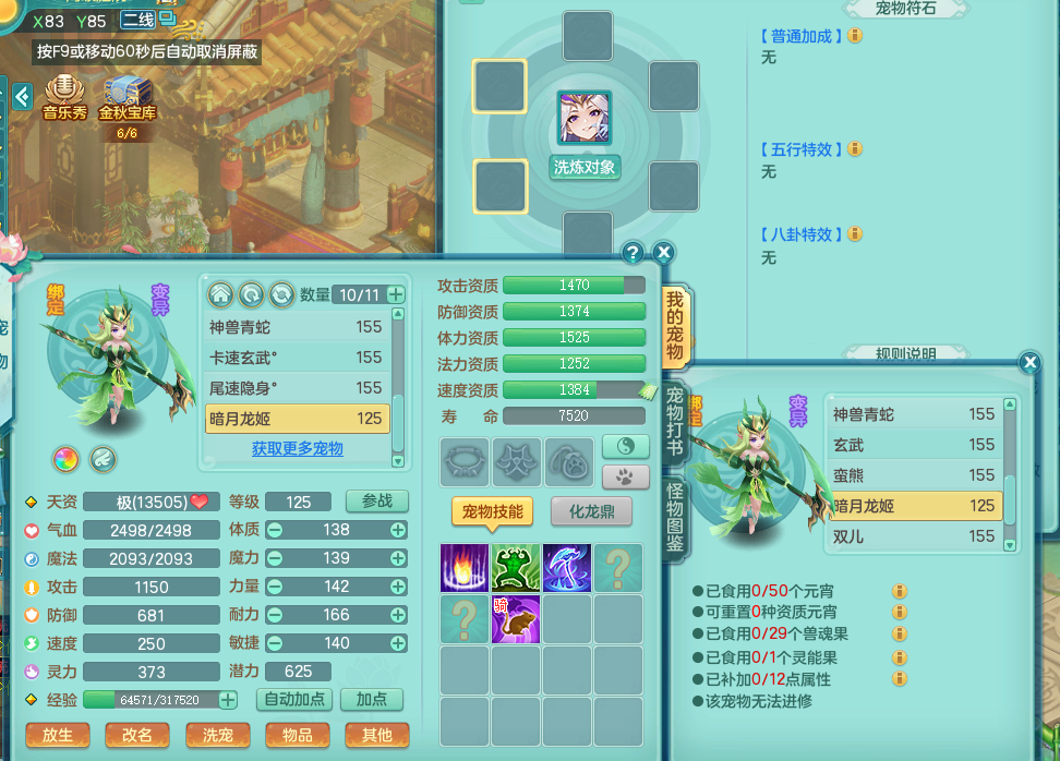 tx8083 天下无双 159 天宫转万兽了 +159 无量 +159 万兽 三开号 单人坐骑 精灵歌 满星穹 4.5化龙鼎 装备都很好 BB还不错 QQ邮箱 天宫无量 都有60+仙兽灵