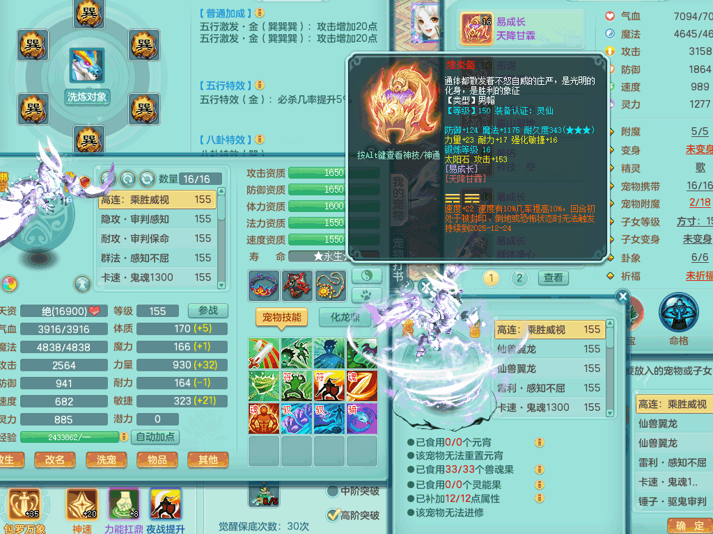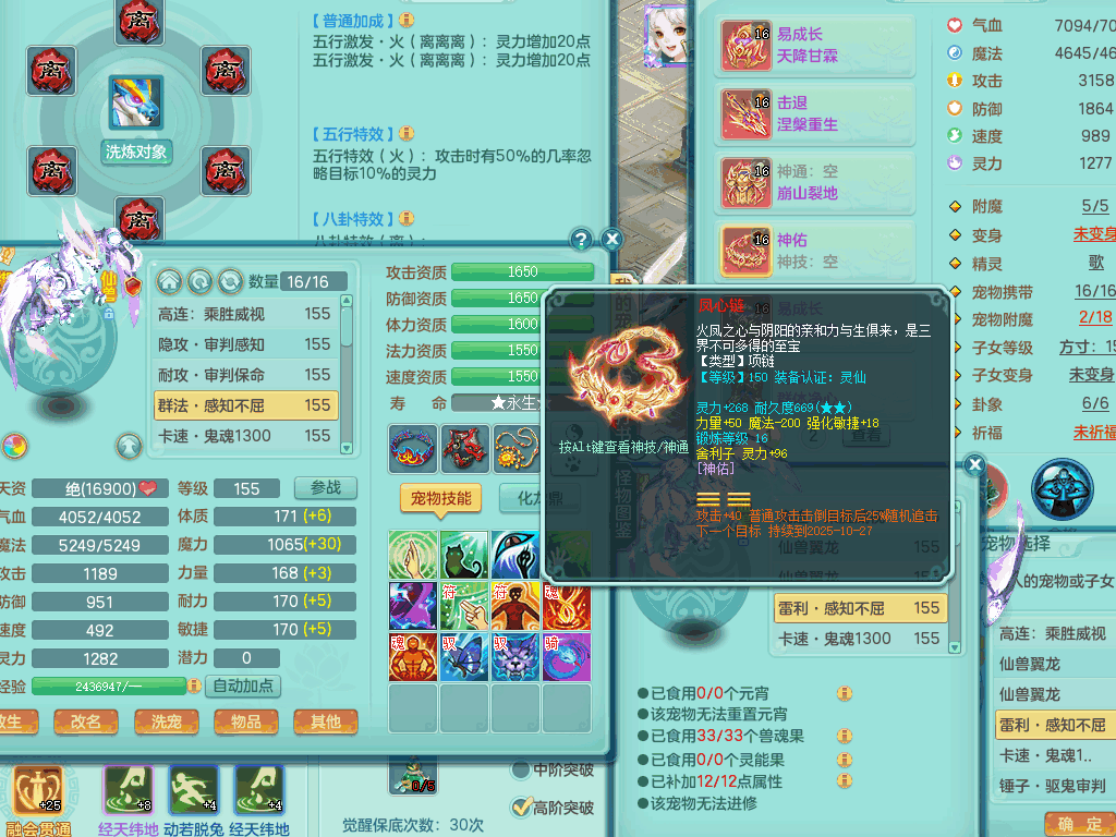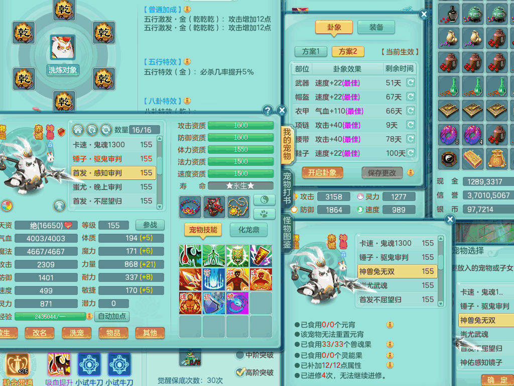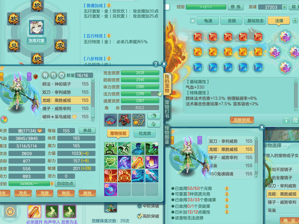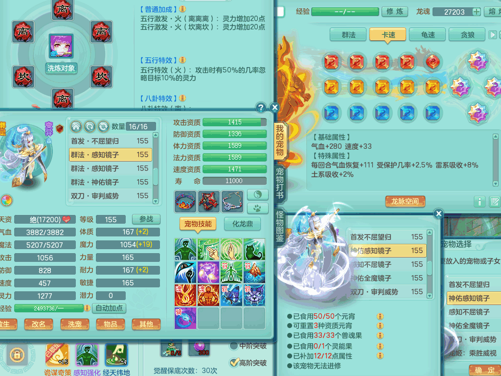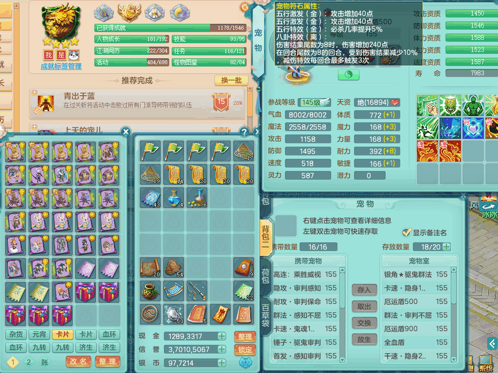 lt8105 【潜龙在渊】浪淘沙159男五庄,精灵歌,5内胆龙,2内胆神+1神兽内胆,【10只觉醒,已潜龙】,8位靓号,6宠皮,3只六技能镜花灵,1只六技能龙姬,2特殊(双星,青霜),神佑单加50项链,易成长晶清单加53鞋子,2套装备,封印慈航单加55头,5.5基础鼎+70攻+280血,15个格子,8个纯六字,5个五字,22只满果子,宠排在榜,经验修炼成就在榜,原始暴龙泰坦+洪荒+西瓜冰武器,带161天月卡。2980邮箱