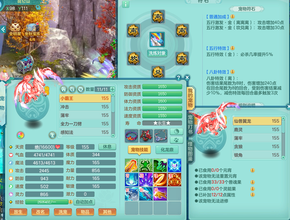 jx8112 锦绣河山 156 万兽 8位靓号 双飞坐骑 4.5化龙鼎 1龙无内(拍) 综合2+满果子 2980邮箱