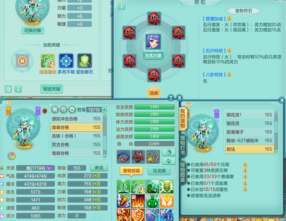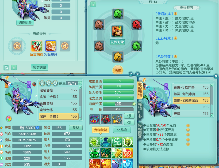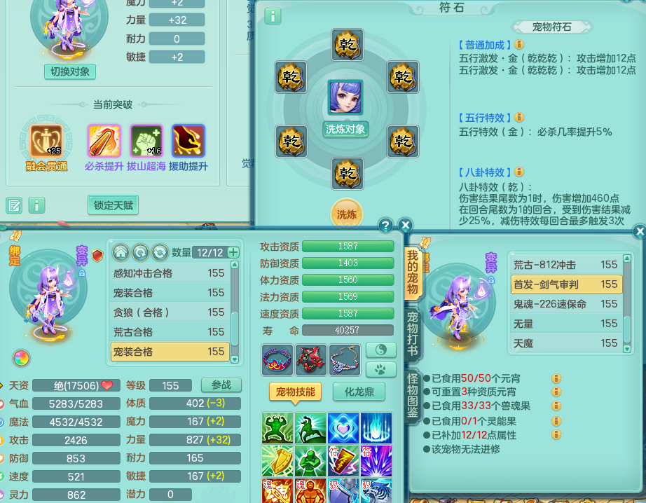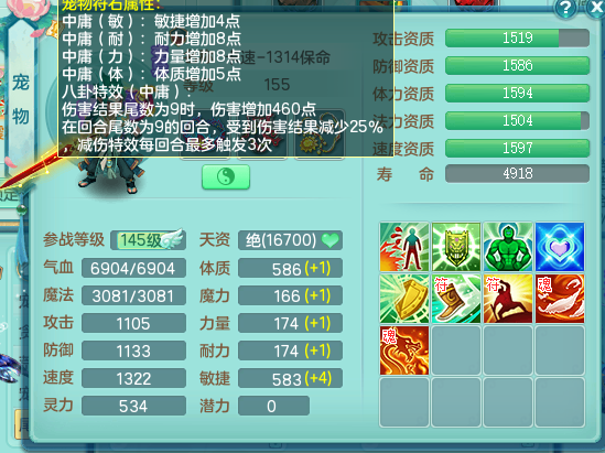 tx8240 天下无双 159 天宫 双飞坐骑 精灵舞 满星穹 5.5化龙鼎 月卡165天 47神兽碎片 1宠物皮肤 4觉醒 1个真6字 5+满果子 2980邮箱