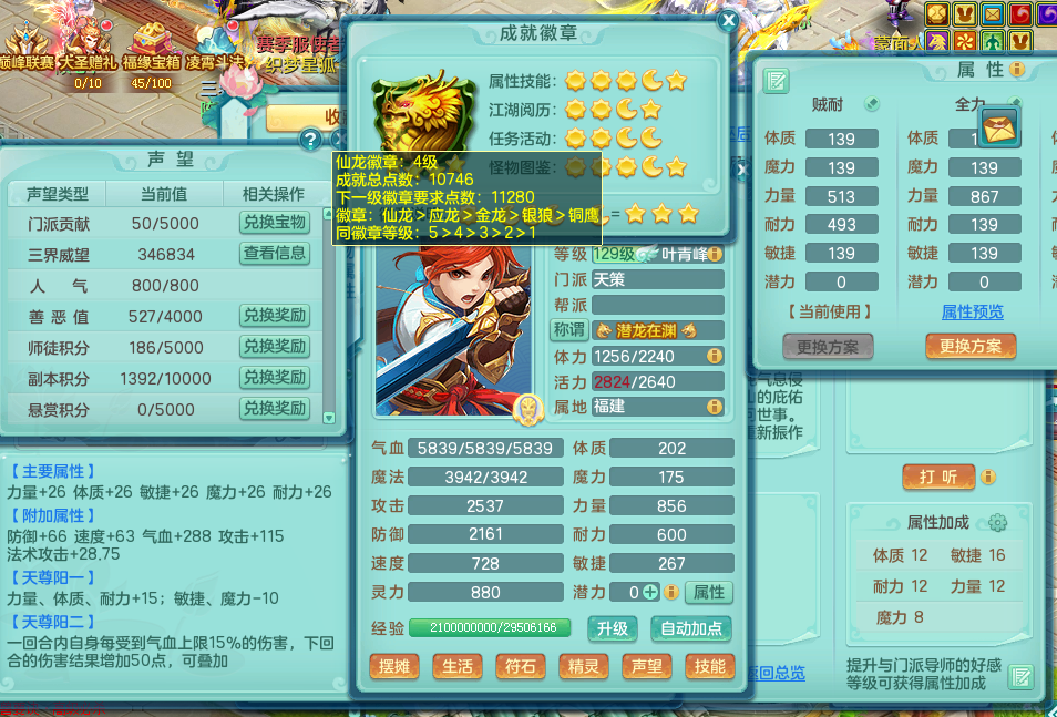 cy8434 【潜龙在渊】 彩云追月 129 天策 双人坐骑 精灵歌 满星穹 4.0化龙鼎毕业 月卡122天 1内龙 3内神 4宠物皮肤 8觉醒 7个真6字 13+满果子 QQ邮箱 有双重