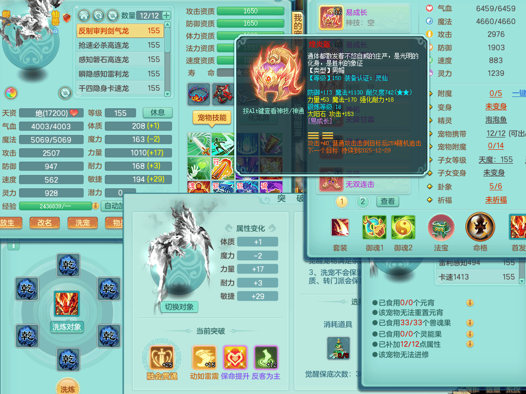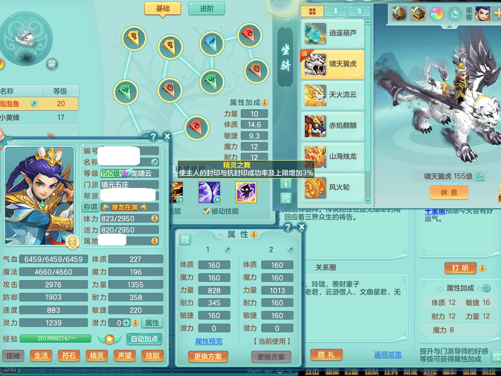 tx8465 【潜龙在渊】天下无双159男五庄【潜龙号+龙皮】精灵舞,4字靓号,5龙(换)1龙皮3内(1青蛇)6皮3特殊(羽袭/堕天/风卷)2镜花灵,18只满果子8觉醒11个纯6字,顶尖物理装备10红,单加Y崩山武器,单加53Y头,单加53Y格挡衣服,神佑四海项链,单加53Y腰带,迅捷破血鞋,18天月卡,冰晶庭院176房屋158,永久外观,精灵皮肤,70果子,677W神武币,4324金币,宠排在榜,6坐骑(4只双人)带152万兽,923匠心Y武器,单加50Y头,单加崩山衣服,单加52Y腰带,Y鞋 163邮箱