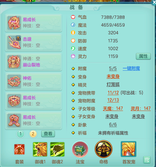tx8472 天下无双 159万兽 崩山衣服 神佑链子 易成长 头盔 腰带 鞋子 综合5+满果子 1镜子 1觉醒 精灵歌 5.5基础+7.5法爆鼎 背包全开 2980邮箱