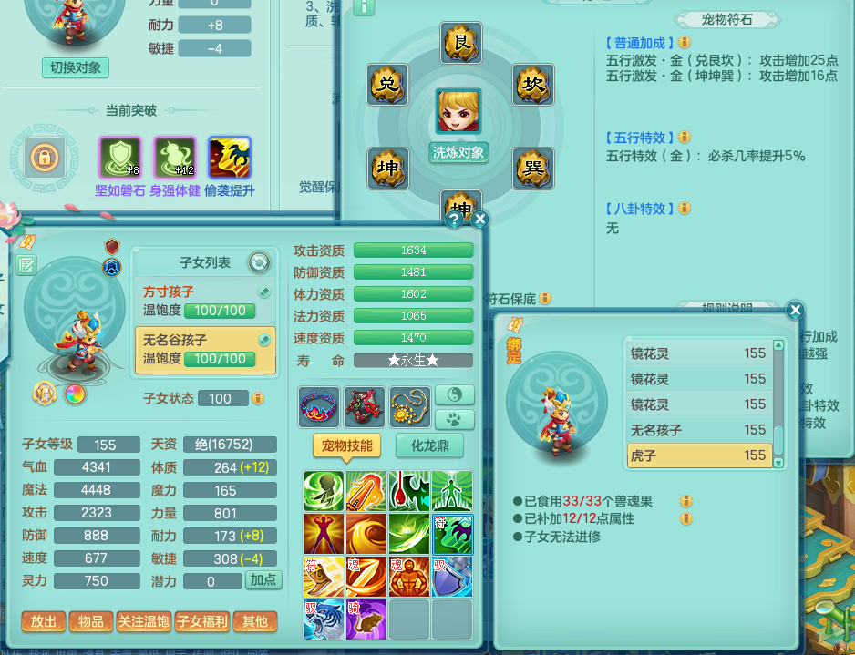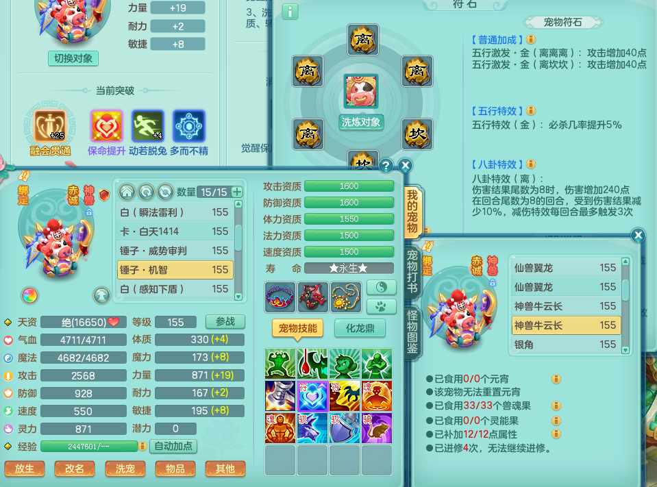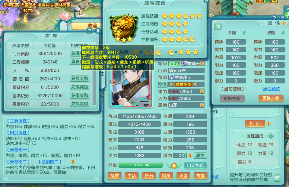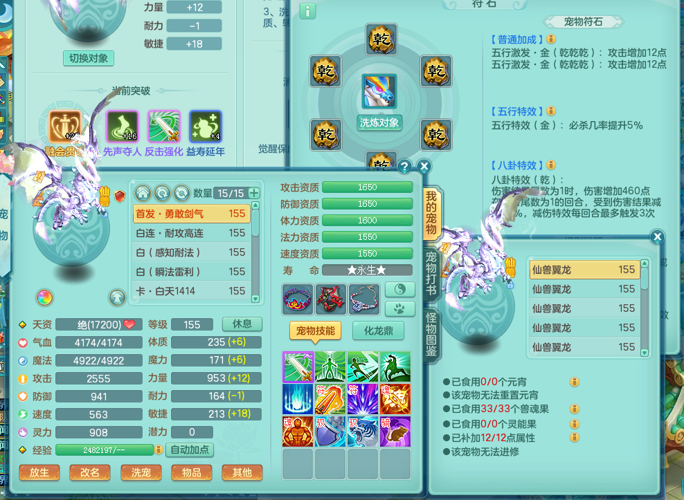 jx8479 【潜龙在渊】 锦绣河山 159 五庄 双飞坐骑 精灵歌 满星穹 6.0化龙鼎毕业 带11000金币 15格子 5内龙 2内神 2宠物皮肤 8觉醒 7个真6字 17+满果子 2980邮箱