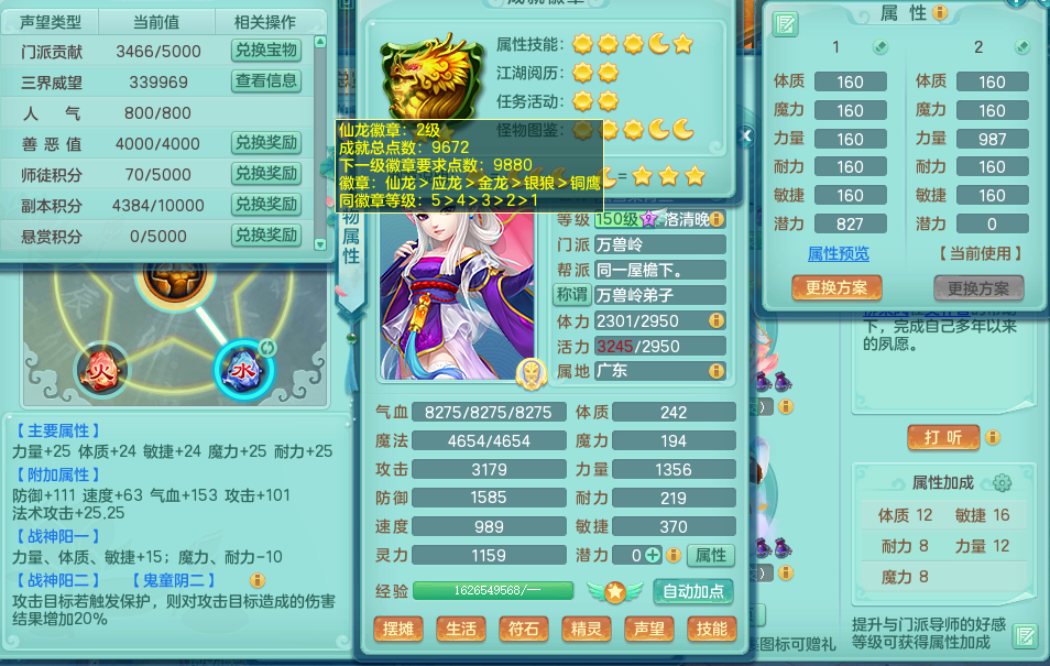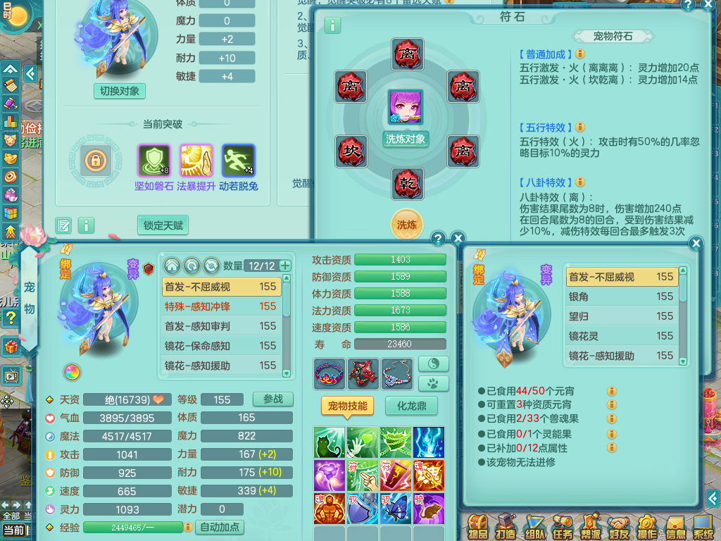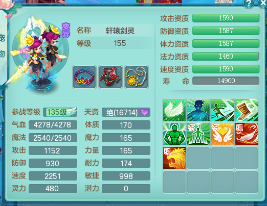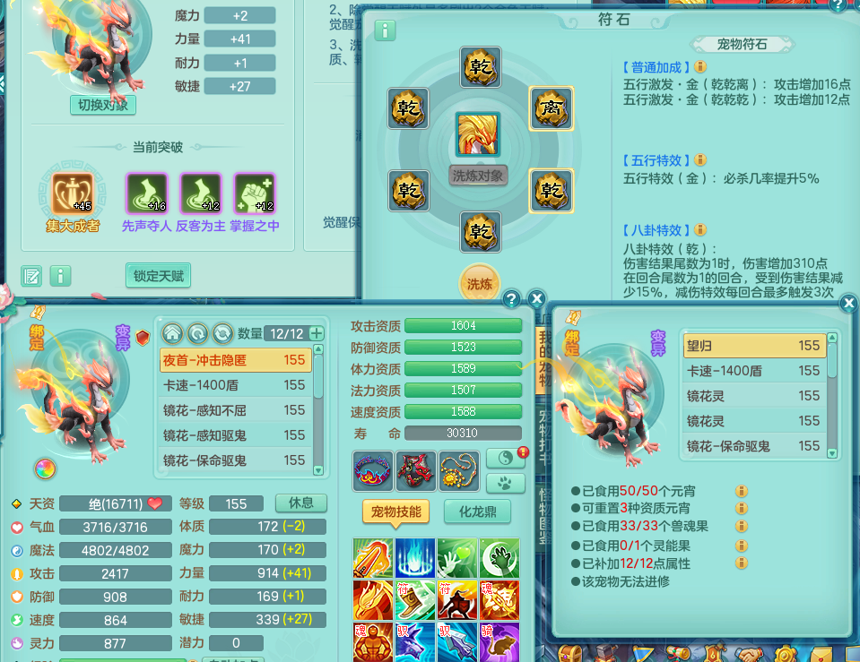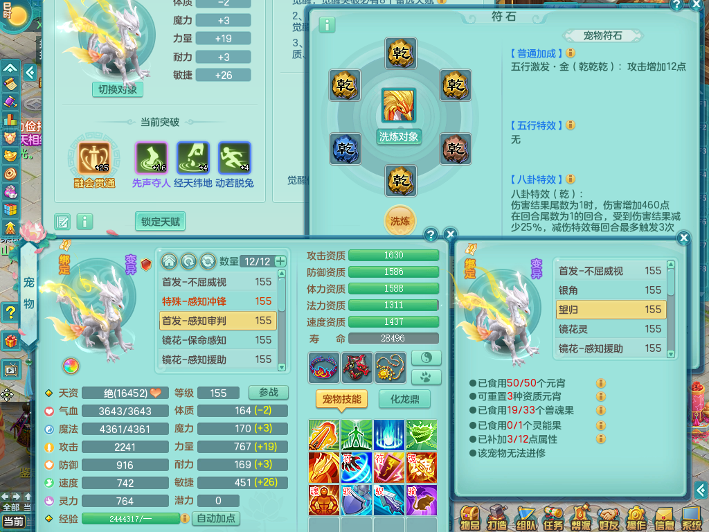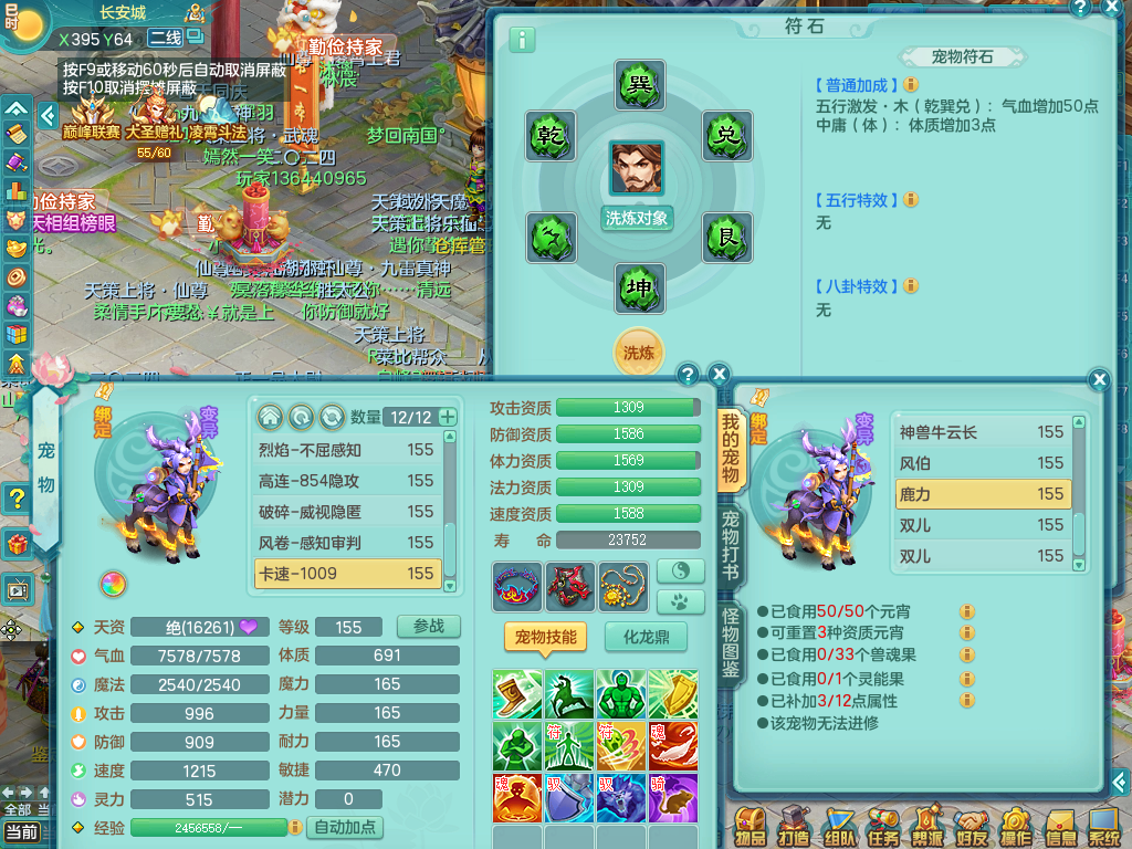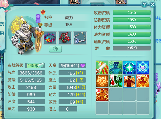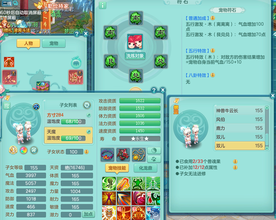 tx8512 天下无双夫妻号,159方寸,万兽 ,多只1621高成长银角。精灵歌力天魔,5特殊,(战争号角,堕天,流星,虎虎生威,羽袭)。双红926攻必杀激励武器,双红鞋子,。双人黑白老虎,万兽 精灵舞,1特殊烈炎 焚心,5.0 5.5鼎带双人坐骑物理装备基本成型,都是高属性单加易成长,套装齐。庭院双150。 2980邮箱