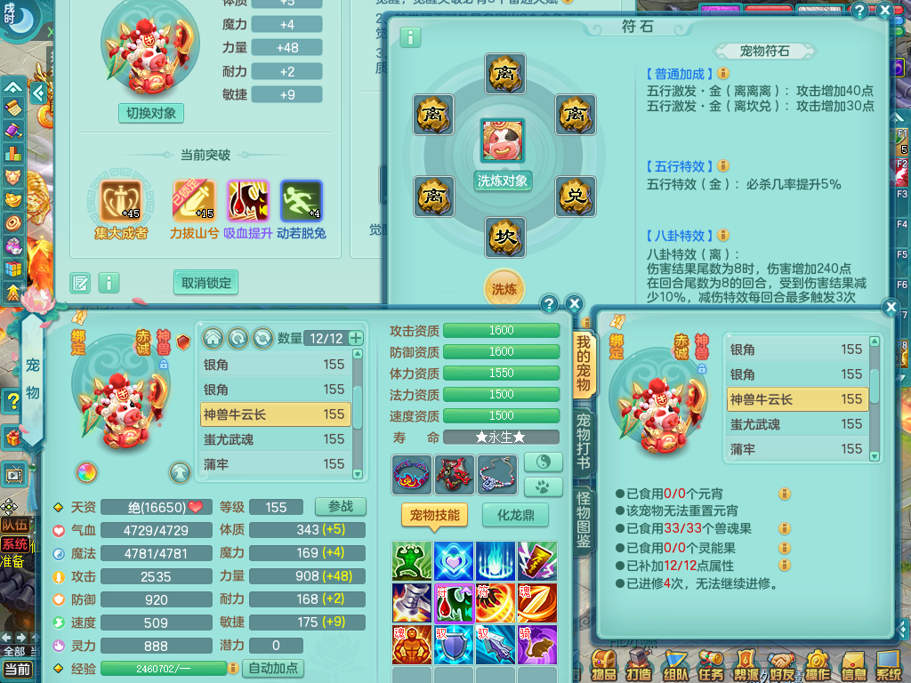 jt8522 九天揽月 159 万兽 龙坐骑 精灵歌 满星穹 化龙鼎 1内龙(破镜) 1内神 特殊破碎 4觉醒 1个真6字 7+满果子 2980邮箱 带3个159奶粉